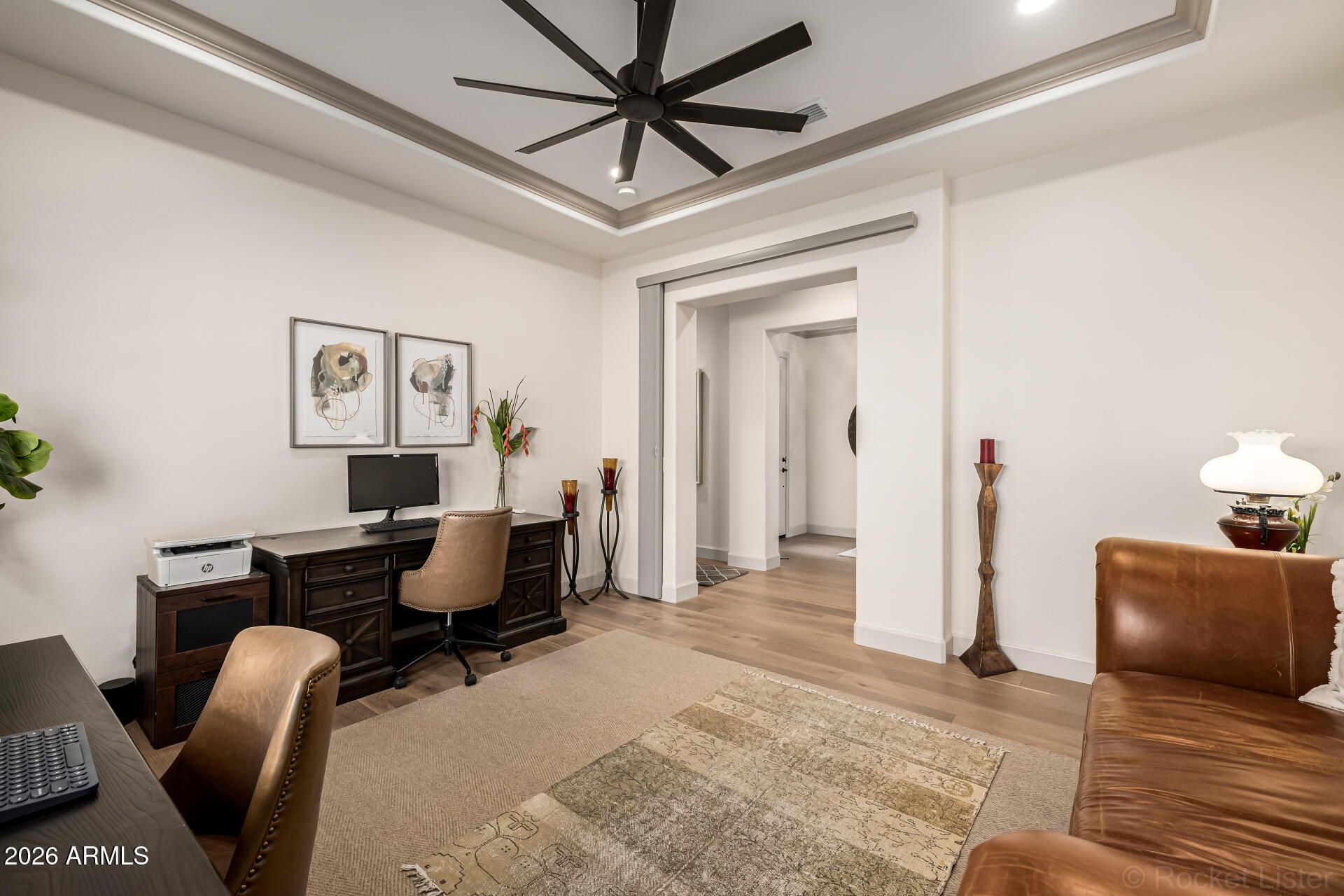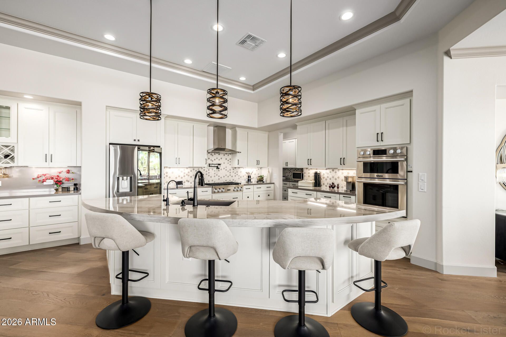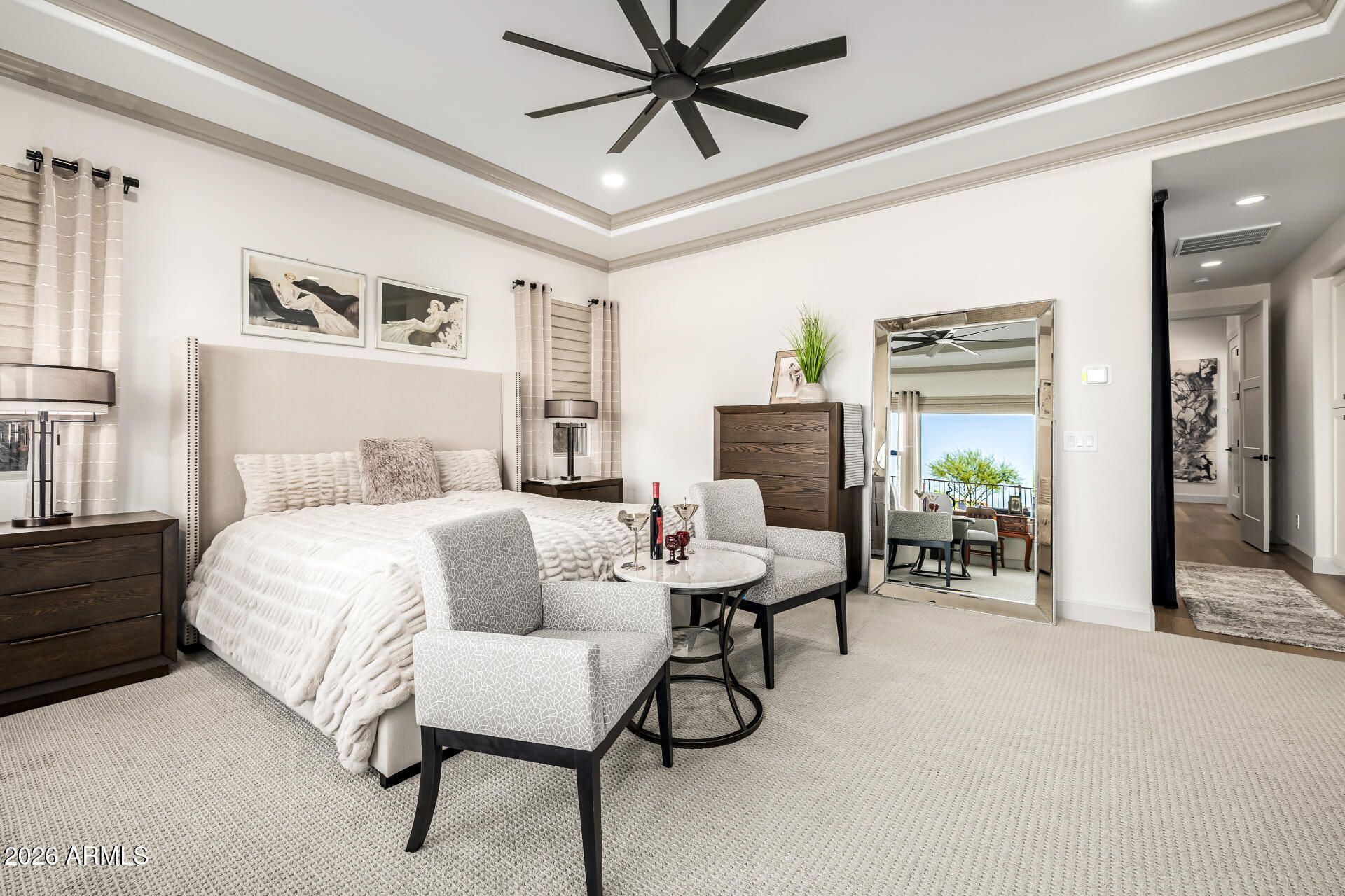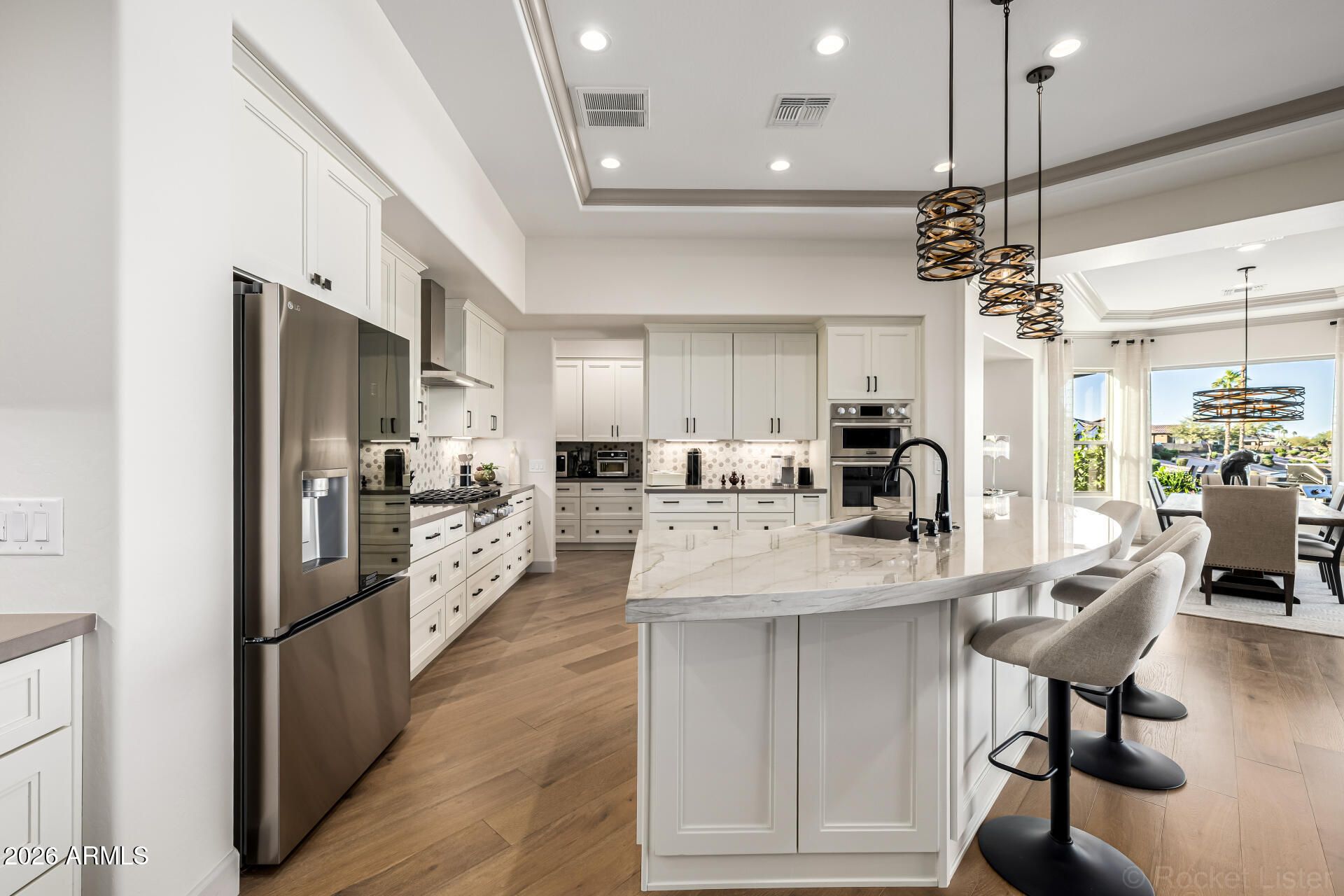 This masterpiece is the epitome of sophistication, elegance, and intentional design. No detail has been overlooked and no expense spared in this stunning Solstice model, completed in 2024. Perfectly positioned to capture serene water and golf course views, the setting is as breathtaking as the home itself. From the moment you enter, the flawless design and refined finishes make an unforgettable impression. A dramatic motorized glass wall seamlessly merges indoor and outdoor living, creating the ultimate Arizona lifestyle experience and ideal for effortless entertaining. The private guest suite features its own sitting area, offering luxurious accommodations for visitors or serving perfectly as a mother-in-law suite. The replacement cost to replicate this exceptional property would far exceed its value today. Impeccably maintained and thoughtfully designed, this extraordinary residence is move-in ready and prepared to deliver the elevated lifestyle you've been dreaming of! Upgrades & Enhancements $293K in Builder Upgrades $365K Lot Premium $101K Professionally Designed Landscaping Air Conditioned Garage with Epoxy-Coated Concrete Floor Motorized Rear Patio Screens Designer Dimmers to Light Switches Under-Cabinet Lighting in Kitchen & Sitting Room Motorized Window Coverings Exterior Privacy Screens Custom Media Wall Featuring 84" Linear Fireplace Upgraded Ceiling Fans & Designer Light Fixtures Crown Molding Throughout Upgraded Water Softener System & Reverse Osmosis Jetted Tub with Fireplace in Main Suite
