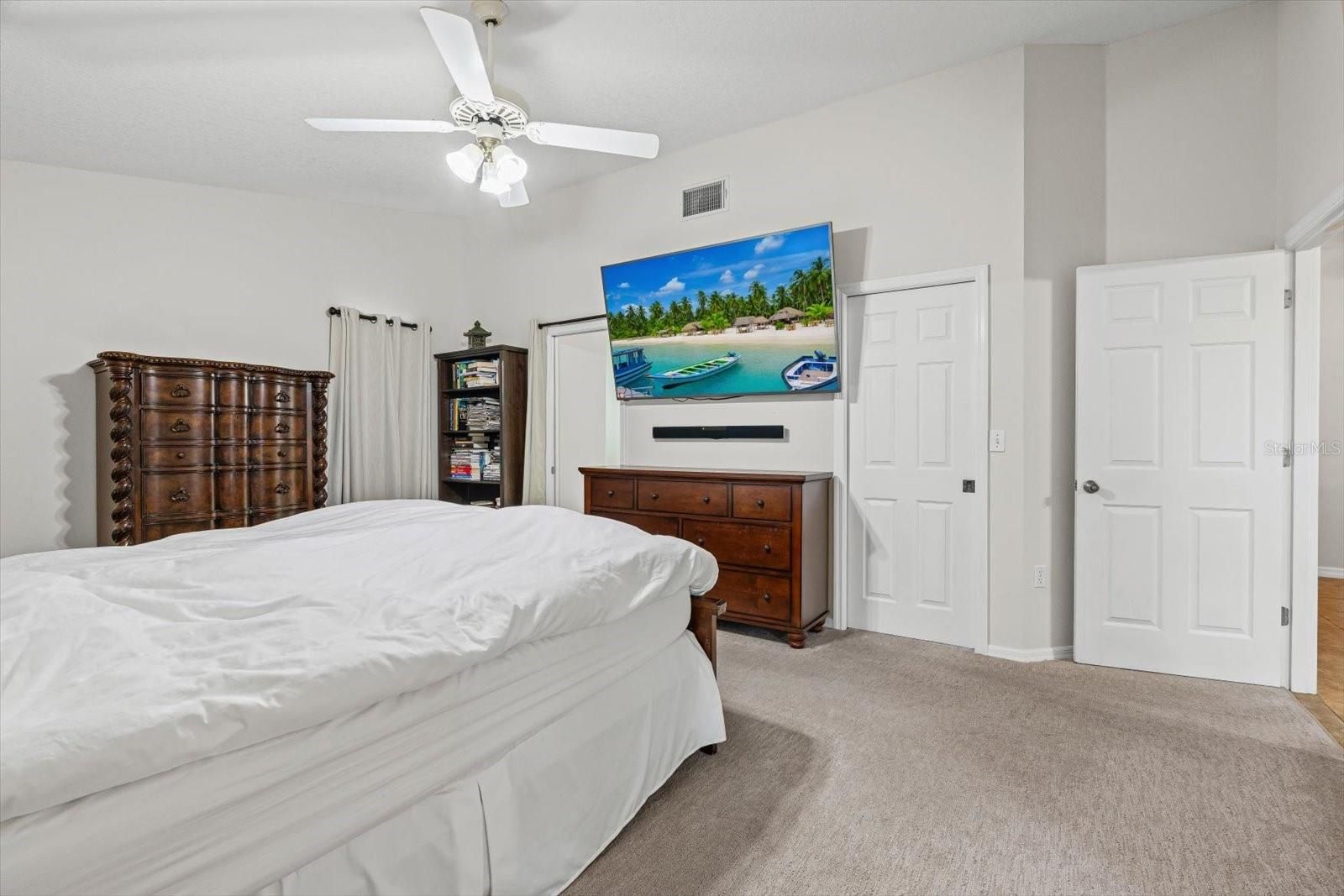 - Ceiling Fan(s), Main Level Primary, Solid Surface Counters, Solid-Wood Cabinets, Split Bedrooms, Vaulted Ceiling(s), Walk-In Closet(s)