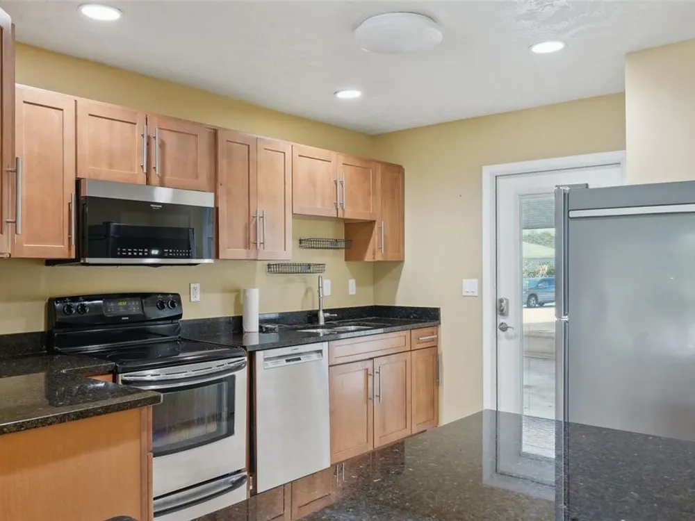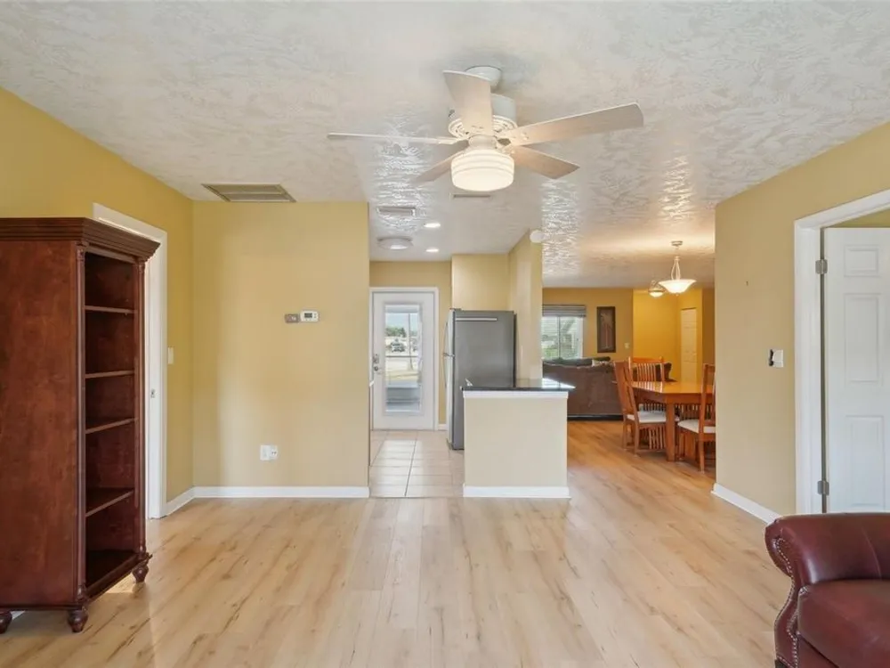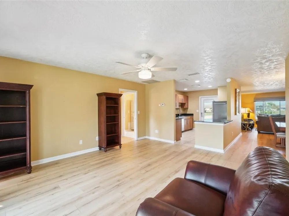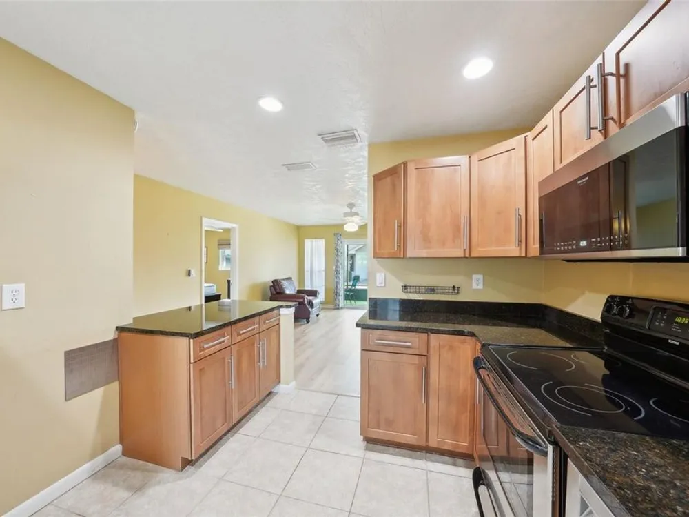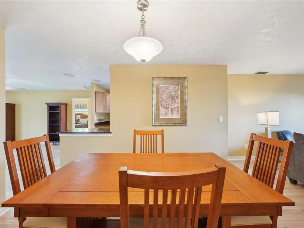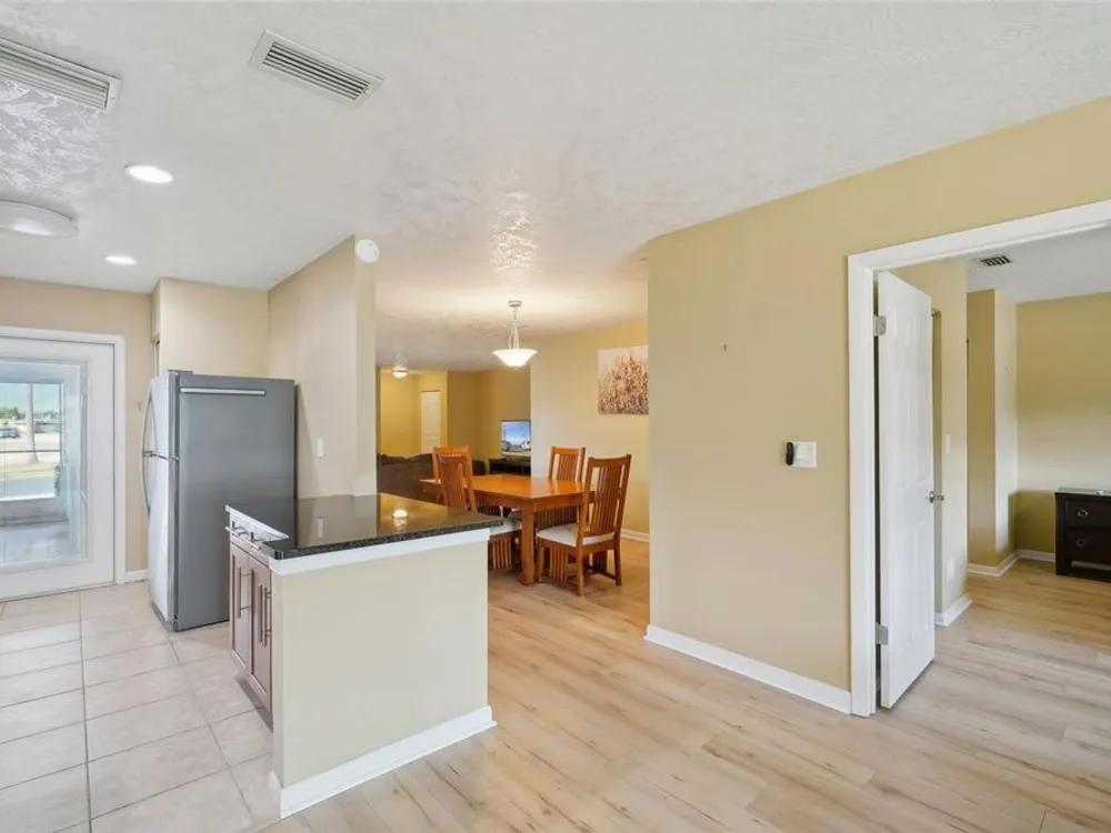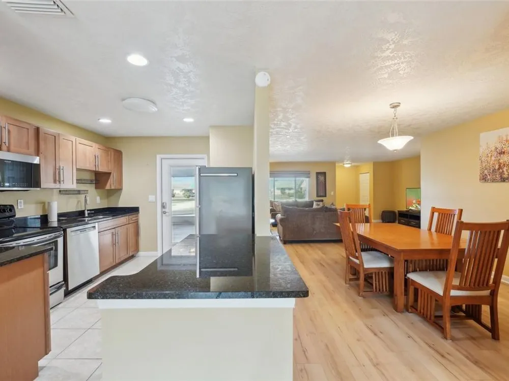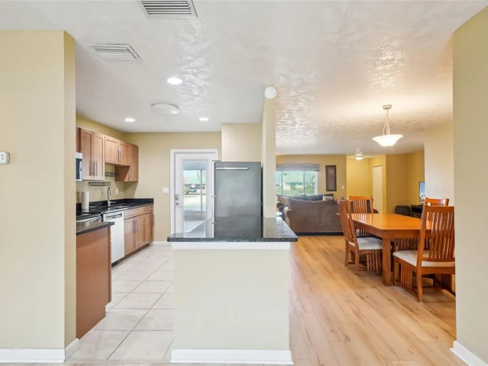 - Eat-in Kitchen, High Ceilings, Kitchen/Family Room Combo, Living/Dining Room, Open Floorplan, Solid Surface Counters, Solid-Wood Cabinets