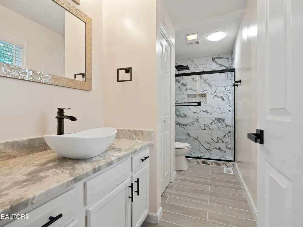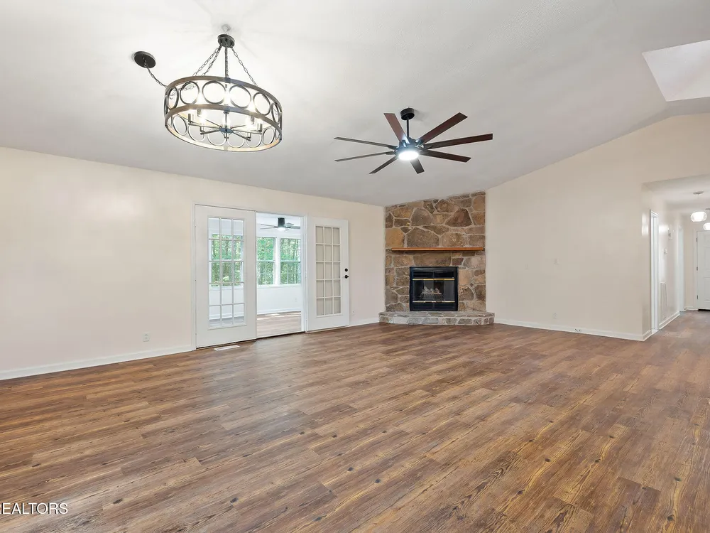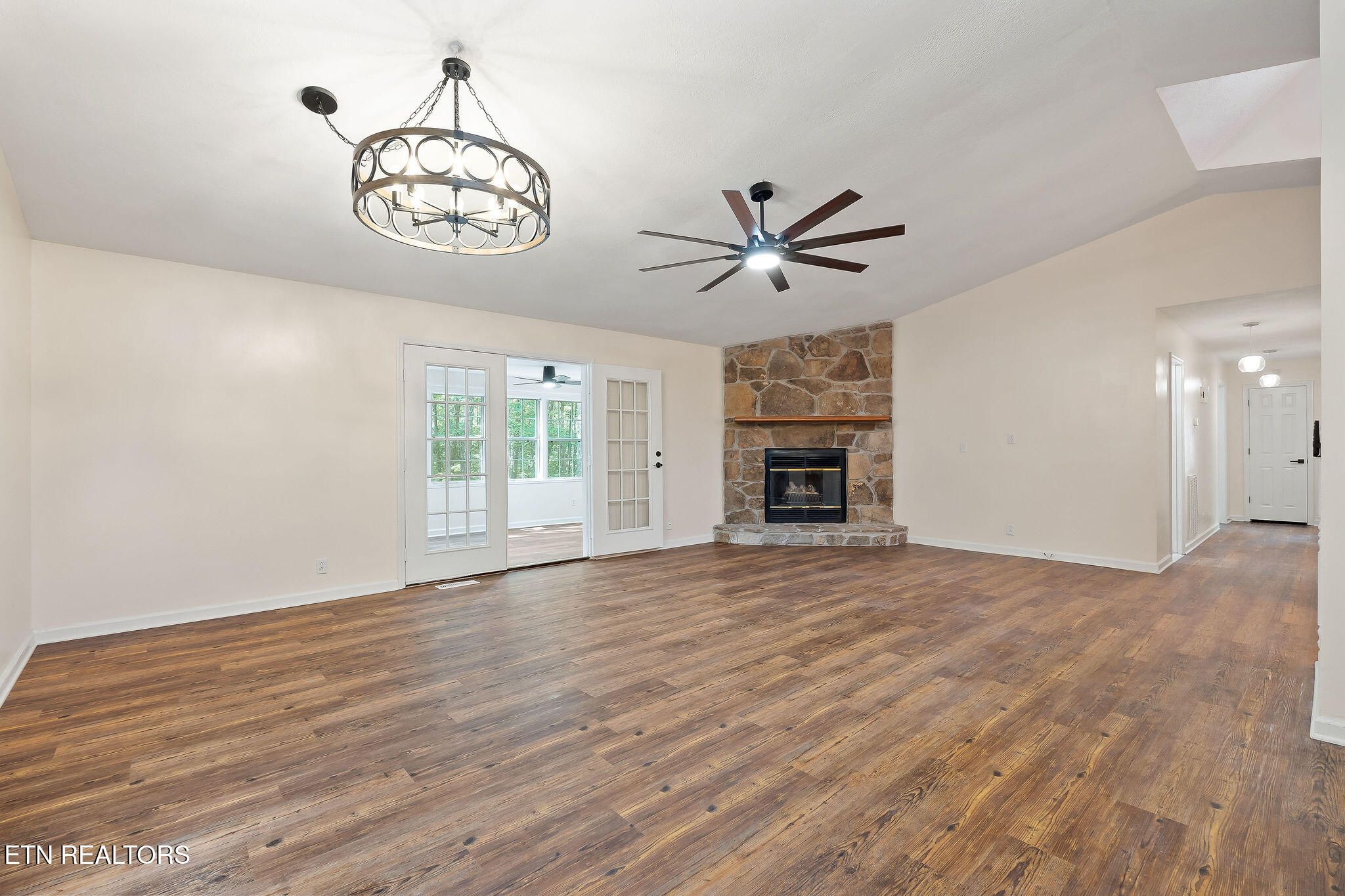 Updated 3-Bedroom Retreat in Prime Fairfield Glade Location Discover this beautifully updated 3-bedroom, 2-bath home offering exceptional privacy with undeveloped lots on both the back and left sides. The seller has meticulously refreshed every detail, featuring all-new paint, brand-new bathroom countertops, a fully updated kitchen with new pulls, hardware, and all-new appliances, plus black accent hardware on crisp white doors. Inside, enjoy new luxury vinyl plank and tile flooring throughout, unique new light fixtures, and a cozy stone gas fireplace. The kitchen is a chef's delight with a gas cooktop and natural gas available. An expanded sunroom with heat and air provides additional year-round living space. The location is unbeatable—walk to the fishing dock at Lake Canterbury, the pool, the new Druid Hills golf simulator, the farmers market, and lively Monday night music events. You're also just minutes from the main exit road for quick access to the grocery store and liquor store. Key Features: 3 Bedrooms, 2 Baths Expanded heated/cooled sunroom All-new paint, flooring, appliances, and fixtures Gas stone fireplace & gas cooktop Private setting with undeveloped adjoining lots Walk to lakes, pool, golf, and entertainment Buyer to verify square footage.