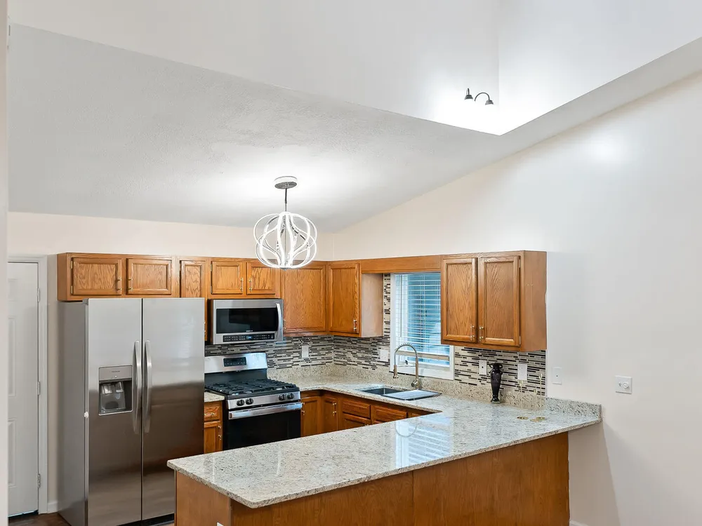- Gas Cooktop, Dishwasher, Microwave, Range, Refrigerator, Self Cleaning Oven