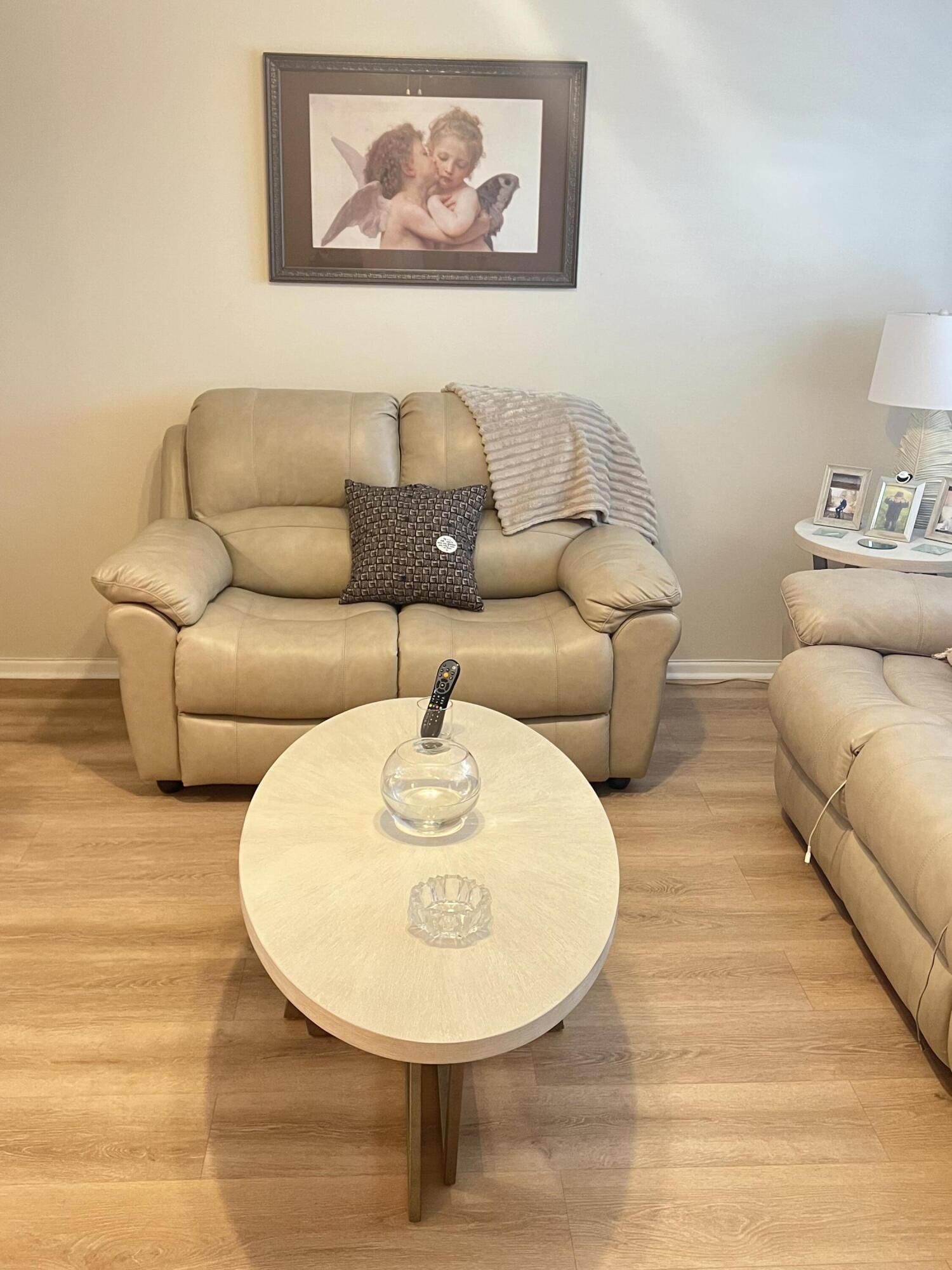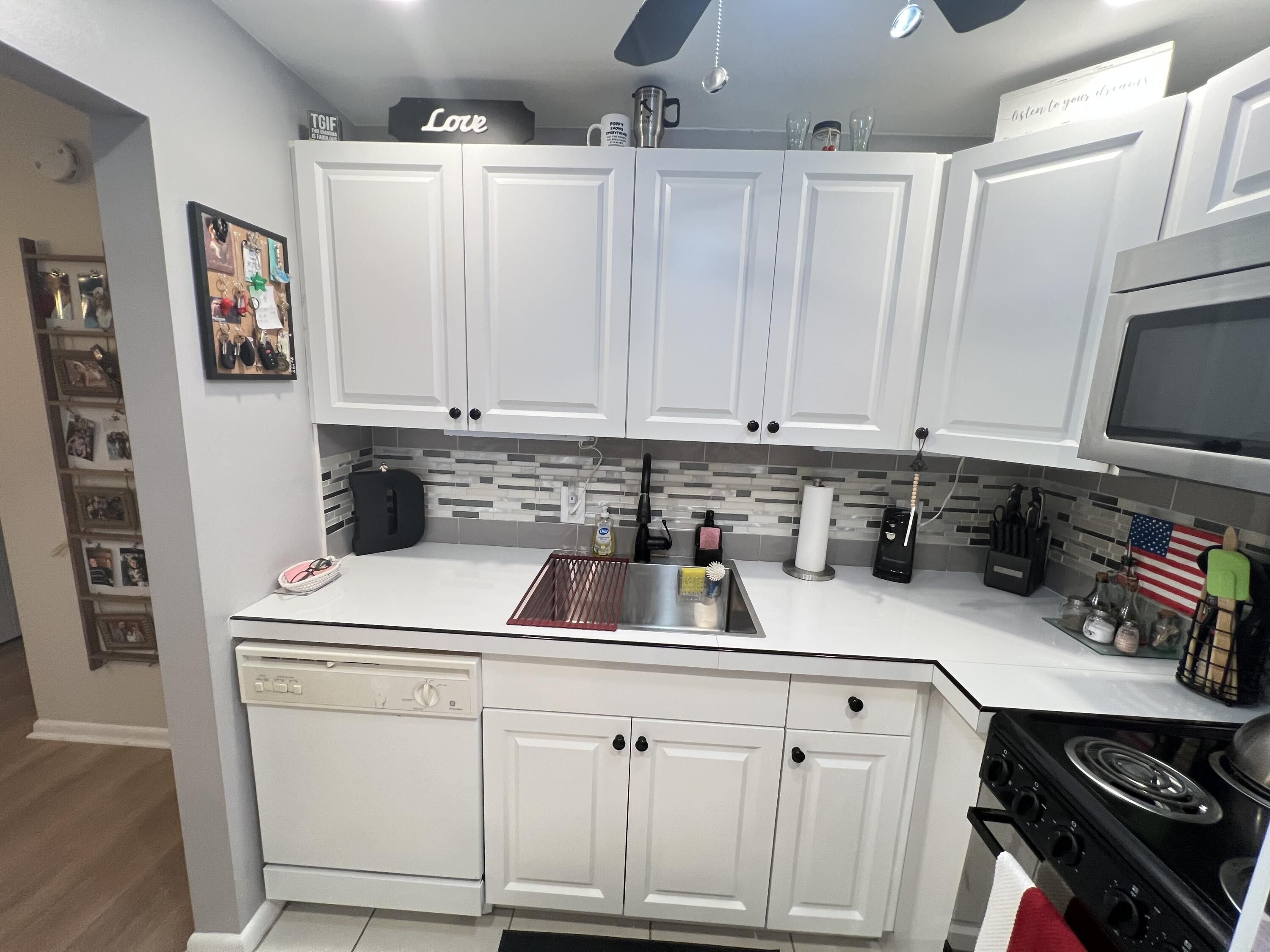 **YOU MUST SEE** this beautifully and meticulously completely redone move-in ready 3rd floor condo. Enjoy your coffee or wine on your spacious lanai with a stunning lake view. New vinyl flooring through out the whole unit. The updated open kitchen boasts modern cabinets, sleak countertops with eyecatching backsplash. Large living room with plantation shutters overlooking the lanai. The bedroom features a ensuite bathroom and a full wall of closet space. Both bathrooms are all redone as well. The unit also features central a/c that was completely serviced. The building features a New Roof (2023), No assesments, Reserves, Two Elevators, Extra Storage, Two Laundry Rooms/Floor, and Trash Chutes.