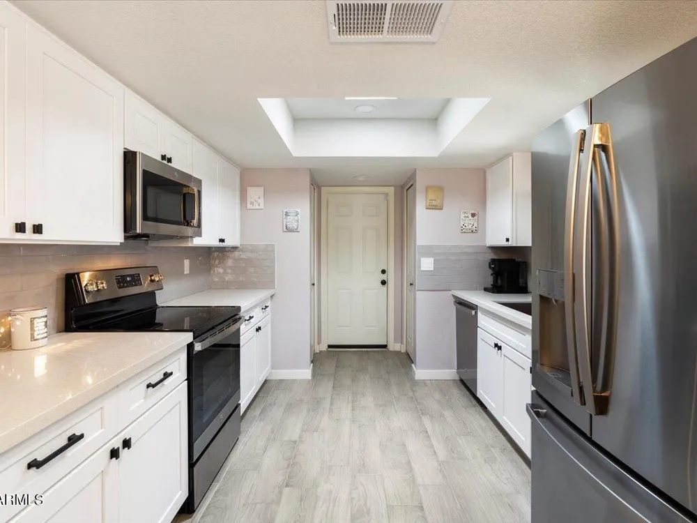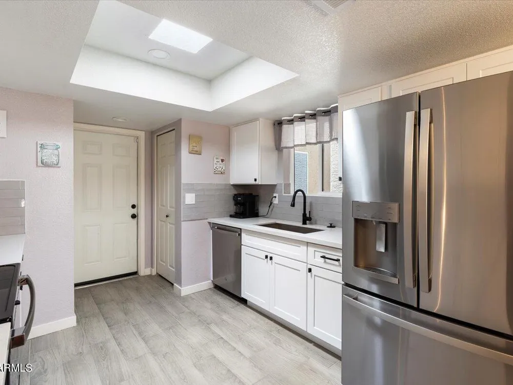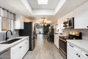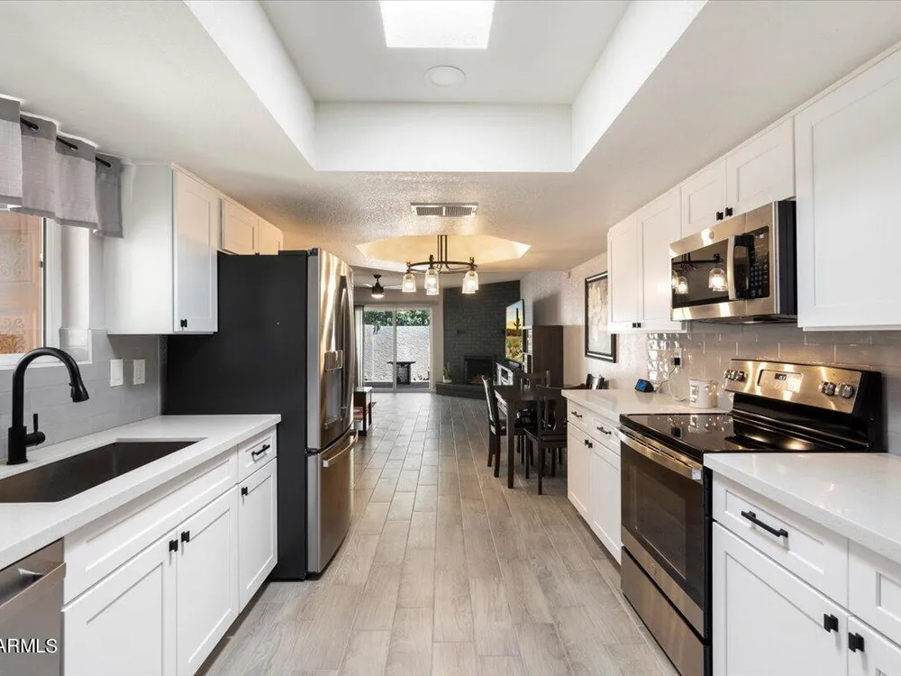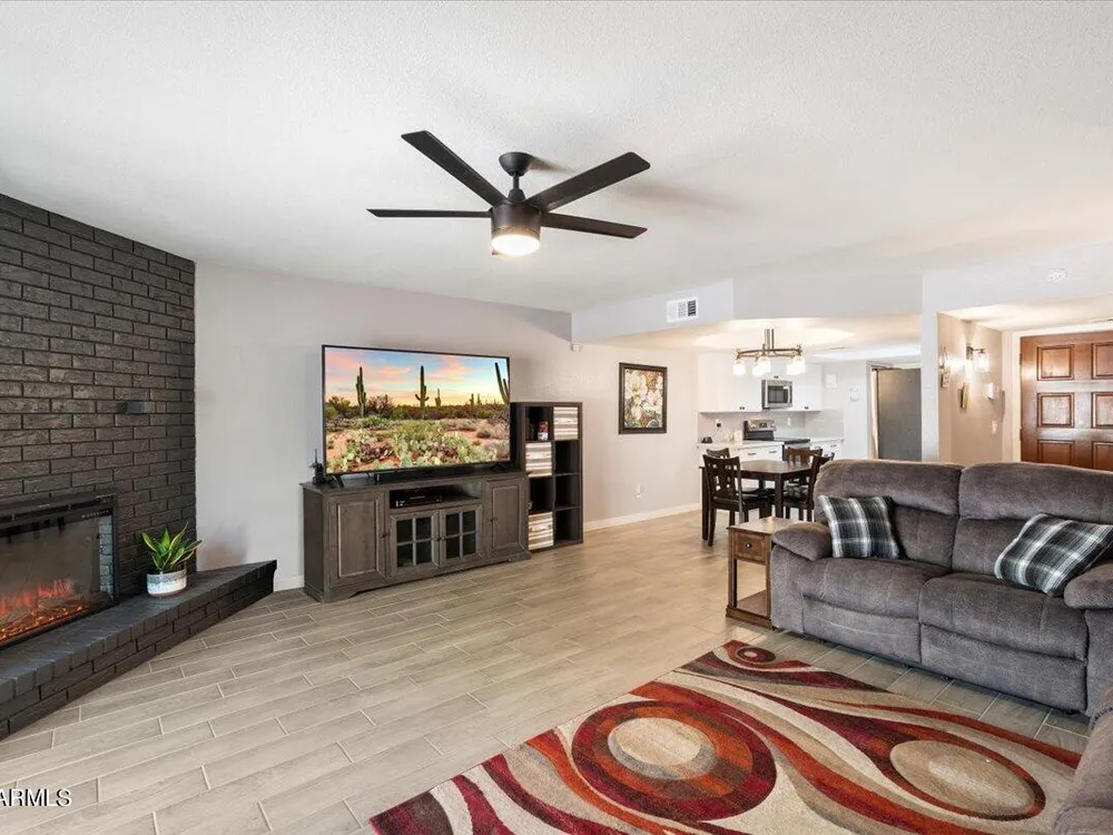 *This home is eligible for a property-specific grant of $7500 from a lender for anyone buying the home as a primary residence.* Unveiling your dream home in the vibrant Las Alegres adult community of Mesa! This completely remodeled 2-bed, 2-bath townhome boasts a plethora of amenities, including a pool, spa, clubhouse, and more - all within a desirable neighborhood. Step inside to a charming layout featuring wood plank tile, a cozy electric fireplace, and modern upgrades throughout. The heart of the home shines with a stunning kitchen - white shaker cabinets, quartz countertops, and stainless-steel appliances - perfect for entertaining alongside the welcoming dining area. The primary suite offers a luxurious ¾ ensuite bathroom with a walk-in shower, while a spacious secondary room provides flexibility for guests or a home office.Unwind in your private backyard oasis, featuring a flagstone patio and pergola, creating lasting memories under the Arizona sun. This is your chance for a move-in-ready haven - don't miss it!