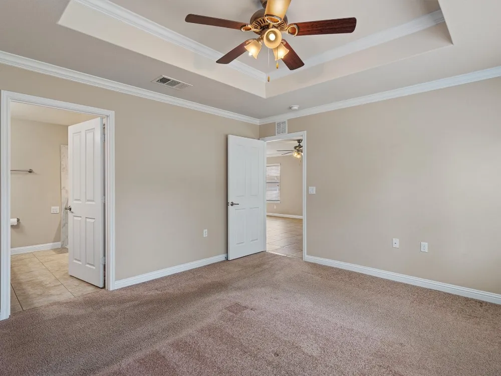 - Breakfast Bar, Tray Ceiling(s), Ceiling Fan(s), Crown Molding, Separate/Formal Dining Room, Double Vanity, Entrance Foyer, Eat-in Kitchen, Granite Counters, Multiple Dining Areas, Main Level Primary, Open Floorplan, Pantry, Recessed Lighting, Walk-In Closet(s)