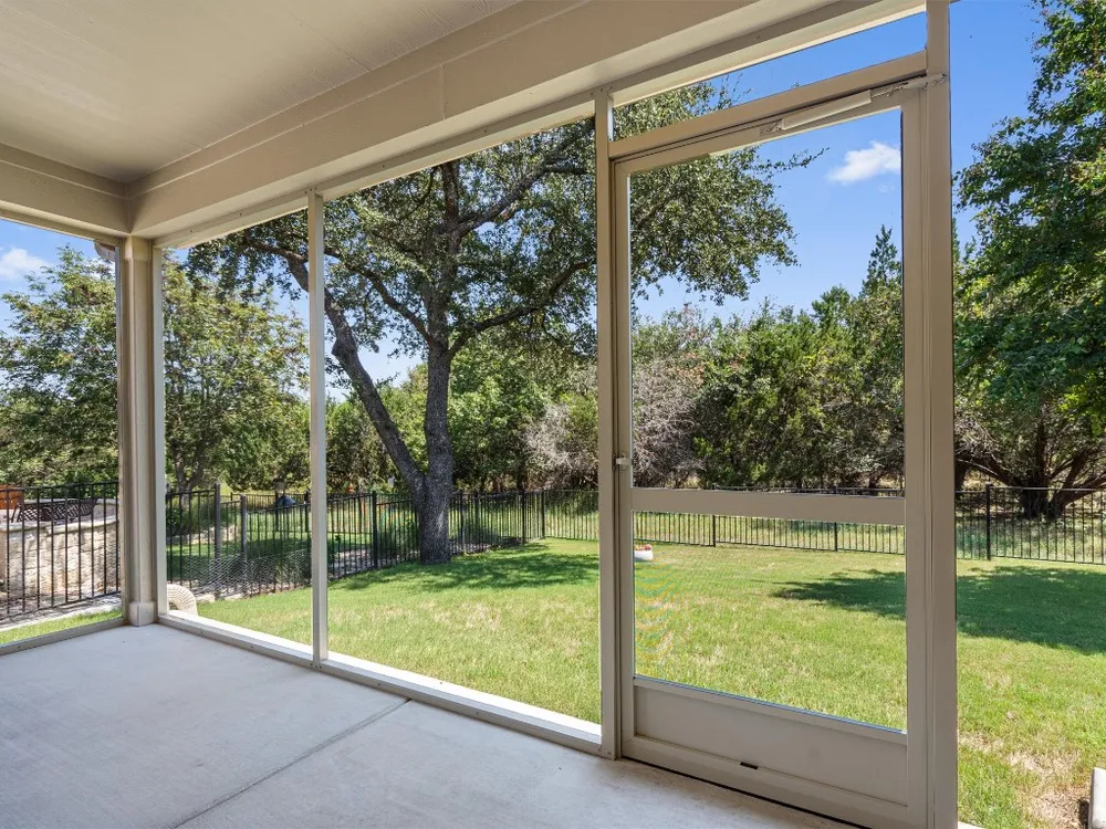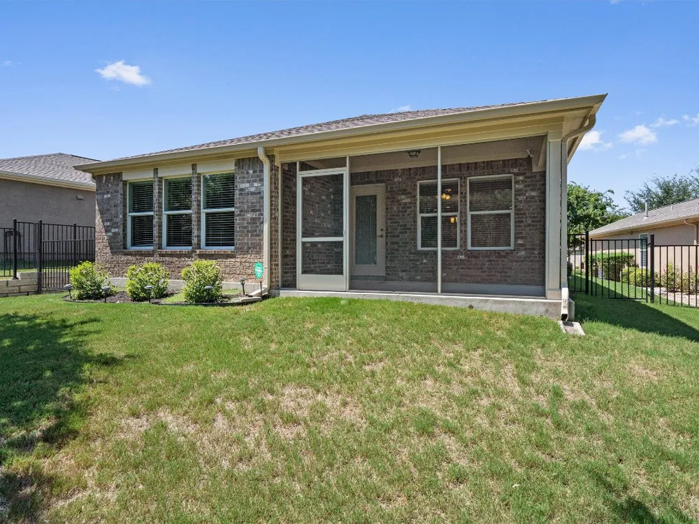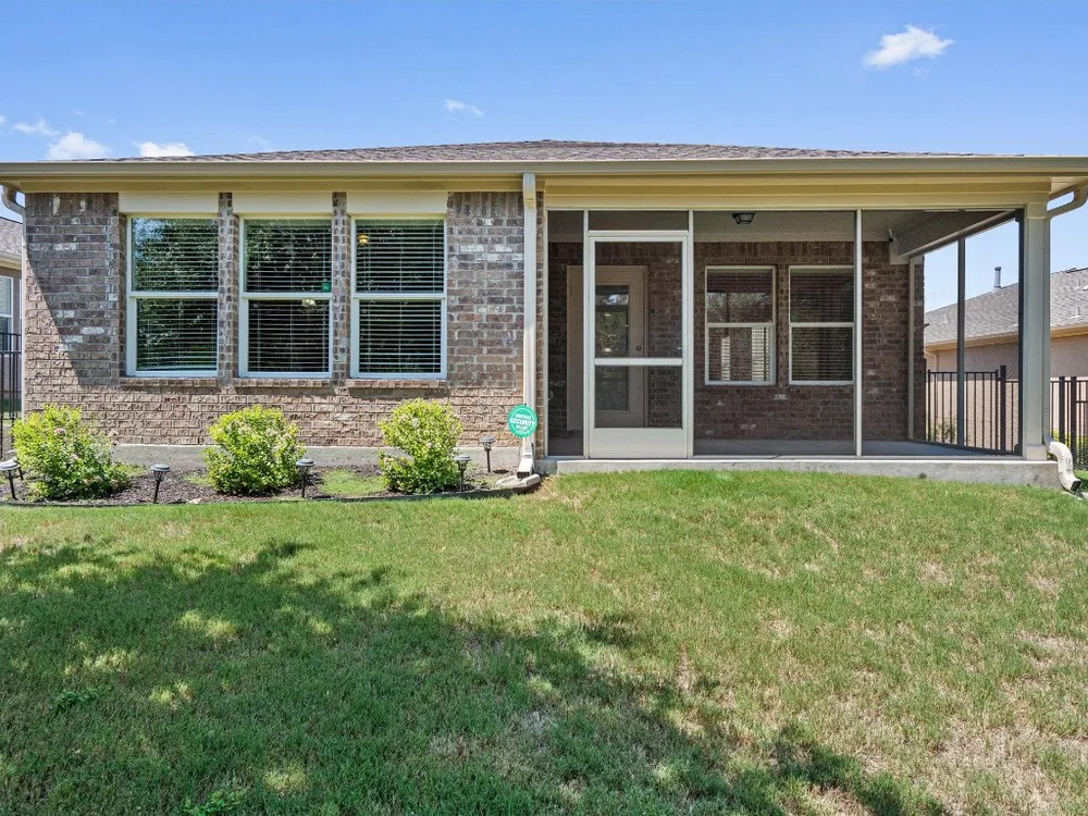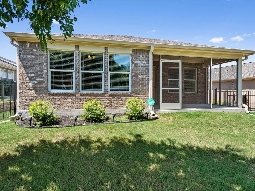 A breezy Screened Porch overlooks an evergreen greenbelt at this choice Sun City Texas Gray Myst near the buzz of Cowan Creek Amenity Center and Golf Course. After greetings from a Front Sitting Porch, a full-glass storm door invites you inside to the Foyer. Off the Foyer resides the Open Kitchen, where stainless-steel appliances including a gas range and refrigerator join with granite counter tops and a handy Pantry Closet for an enjoyable cooking experience. A fun bayed Breakfast Nook overlooks the landscaped front yard, while across from the Nook, a Laundry Closet is perfectly-placed for multi-tasking. Nearby, the proximity of the Extended Two-Car Garage makes bringing-in groceries a breeze. Ahead from the Foyer, the Dining portion of the tiled Great Room is convenient to the Kitchen, while full-view glass door at the Great Room opens onto the Screened Porch retreat overlooking the peaceful fenced back yard setting. At the rear of the home, the Primary Bedroom touts a trio of windows viewing the back yard and adjacent greenbelt, while a tray ceiling rimmed with crown molding raises the height to nine feet. The en suite Primary Bath flaunts dual vanities and a Koehler Walk-In Jetted Tub, a soothing place for relaxation. A generous Walk-In Closet completes the suite. Off the Great Room with Dining, a wood-floored Flex Room forms the perfect Office-at-Home, or Hobby Room, while nearby, a tucked away Guest Bedroom is adjacent to the full Guest Bath. *Roof replaced 2020; HVAV replaced 2023; Water Heater replaced 2022. Exterior trim painted 2025!