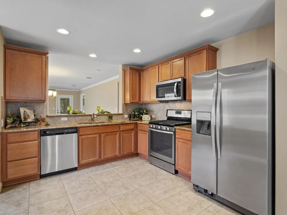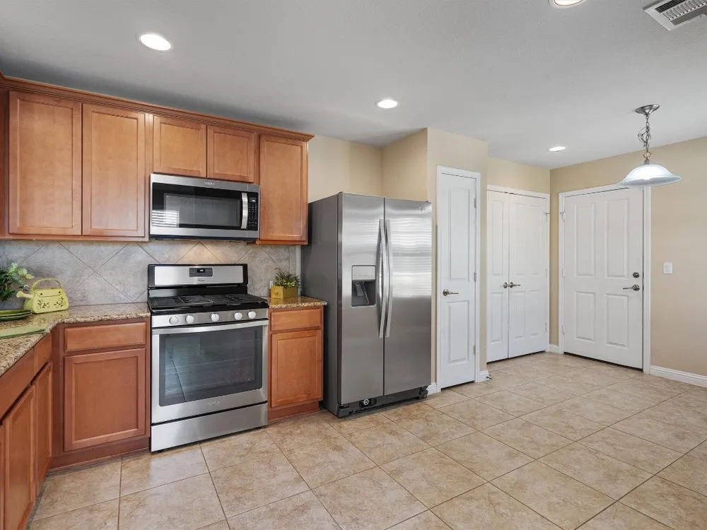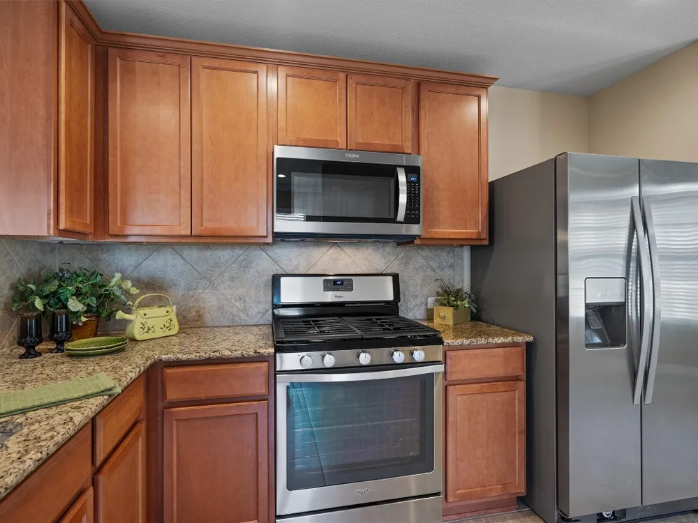 - Dishwasher, Disposal, Gas Range, Microwave, Plumbed For Ice Maker, Refrigerator, Self Cleaning Oven, Stainless Steel Appliance(s), Vented Exhaust Fan