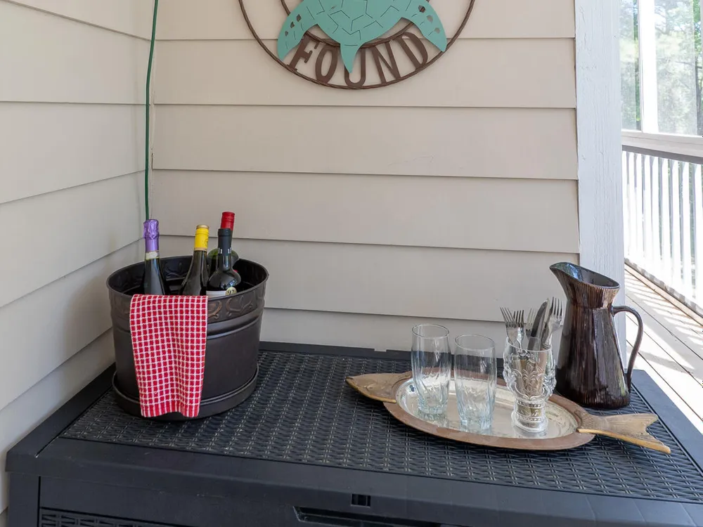 - Ceiling Fan(s), Solid Surface, Furnished, Pantry, Master Downstairs, Kitchen Island
