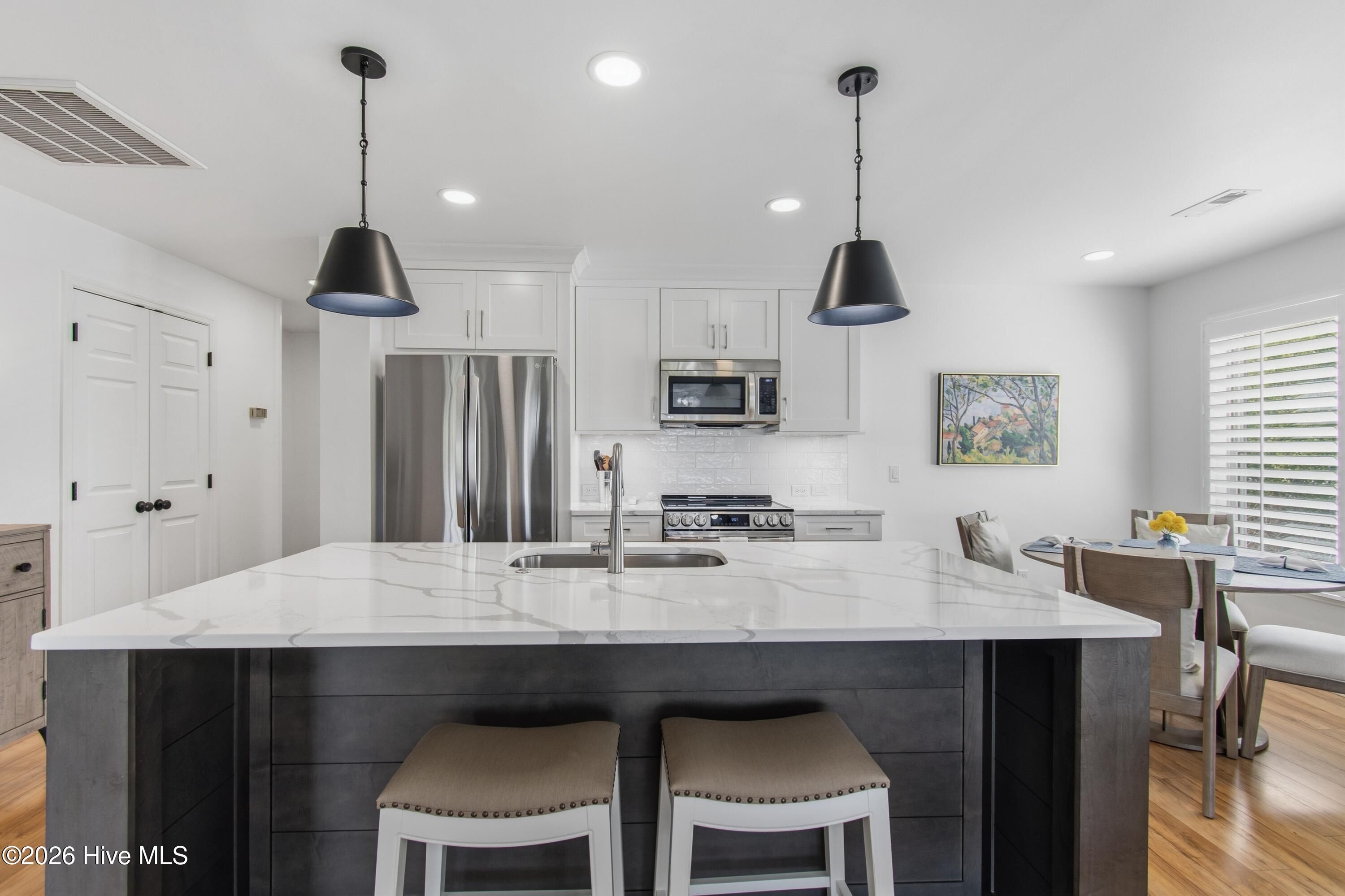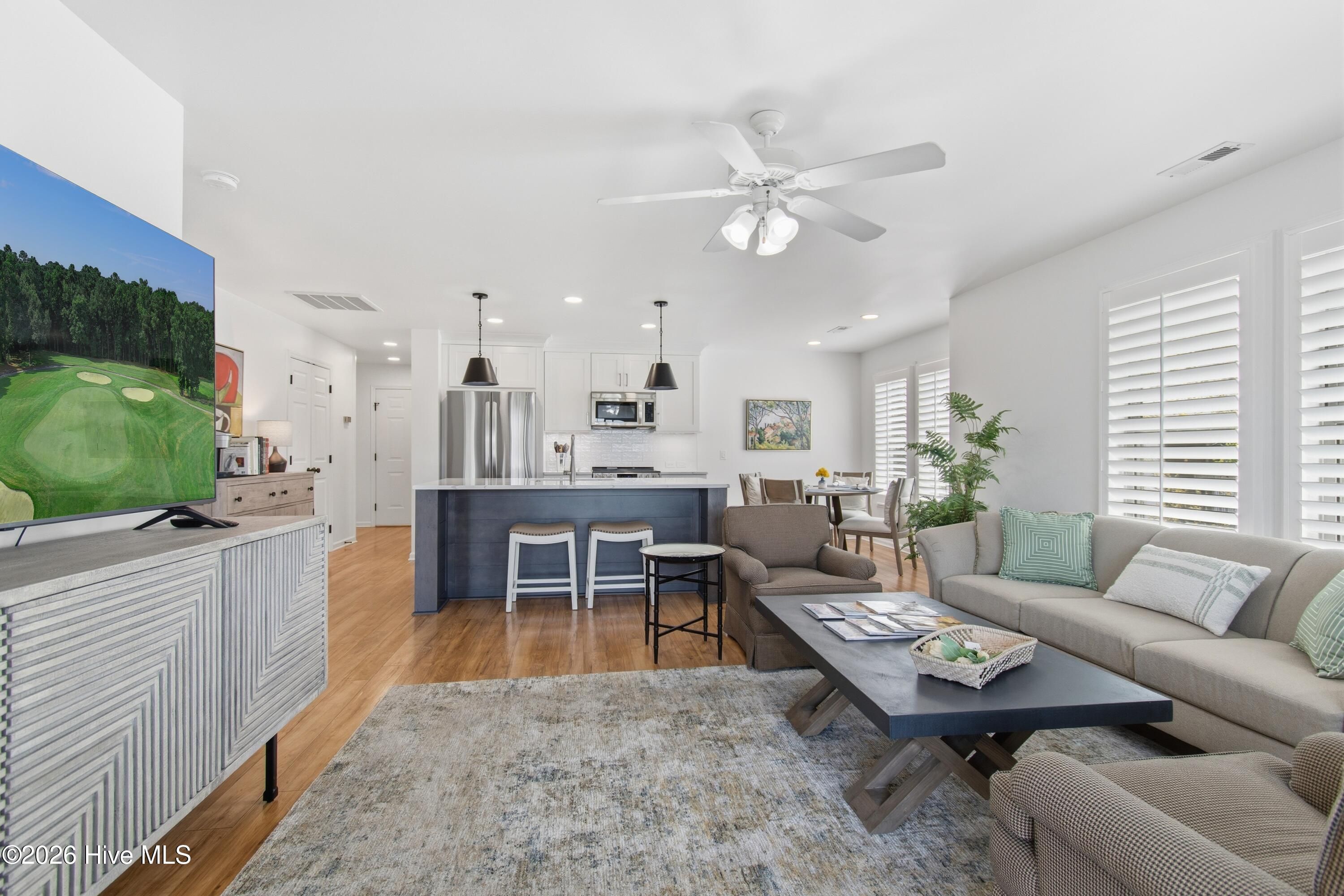 Beautifully renovated third-floor residence overlooking the fairway of the Members Club golf course, offering effortless, turn-key living. Thoughtfully redesigned in 2023, the home features an updated floor plan with enhanced storage, including a walk-in pantry with light, expanded bathrooms, and a reimagined primary suite. The kitchen has been completely renovated with quartz countertops, a generous island, upgraded sink, custom cabinetry, white subway tile backsplash, under-cabinet lighting, and a full suite of new LG appliances. Throughout the home, popcorn ceilings have been removed and replaced with updated lighting and plumbing fixtures for a fresh, modern feel. The primary suite is a true retreat, featuring a shiplap accent wall, barn door entry to the ensuite bath, and a thoughtfully reconfigured layout offering added privacy and storage. The guest suite has also been enhanced with an additional closet and a redesigned bath with a larger vanity and improved functionality. All closets are outfitted with custom wood shelving. Enjoy peaceful golf course views from the screened porch, creating a private outdoor setting ideal for relaxing. Additional highlights include a private laundry room, and two outdoor storage closet, and access to the Club Villas private pool. Ideally positioned near both the main gate and Seaside Gate, this residence offers convenient access to the St. James Marina, home to Beacon 315 waterfront dining, a tiki bar, pharmacy, Ship's Store, and a full-service marina. St. James Plantation is a premier waterfront community set along the Intracoastal Waterway, just minutes from historic Southport and the beaches of Oak Island. Residents enjoy an exceptional coastal lifestyle with world-class amenities, including four championship golf courses (81 holes total), four clubhouses with dining and fitness facilities, tennis, indoor and outdoor pools, and over 36 miles of scenic walking and biking trails. Opportunities for fishing, kayaking, and boating are abundant, along with a private beach club on Oak Island featuring a pool, picnic area, showers, and dedicated parking. Live where others vacation and experience the very best of coastal living at St. James Plantation. Offered fully furnished, including décor and household items, this property presents an exceptional opportunity as a primary residence, second home, or investment, with short-term rentals permitted.