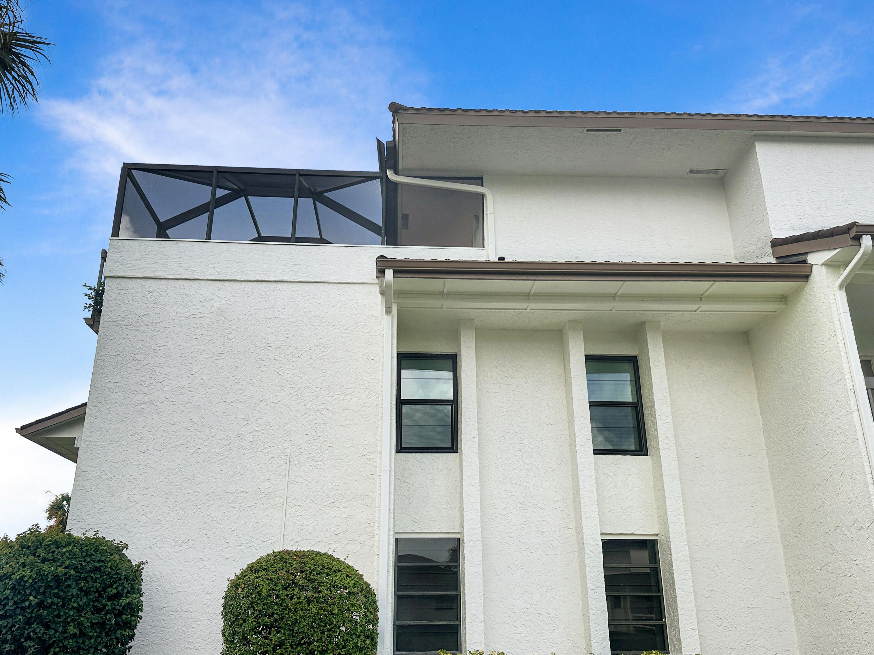 Embrace the epitome of Floridian luxury living in this stunning 2 story condo unit, perfect for those seeking an idyllic retreat. This meticulously maintained property offers a serene golf course backdrop, enhancing the tranquil atmosphere of your future home. The 3-bedroom, 2-bathroom layout is both elegant and practical, with a multitude of modern updates and upgrades that promise comfort and style.Step into the spacious kitchen, where cooking is transformed into an experience, with soft-close raised panel wood cabinetry, granite countertops, and a stylish tiled backsplash. The coffered ceiling adds a touch of sophistication to every meal prepared. The open-concept living and dining area flows out to a screened lanai, inviting you to bask