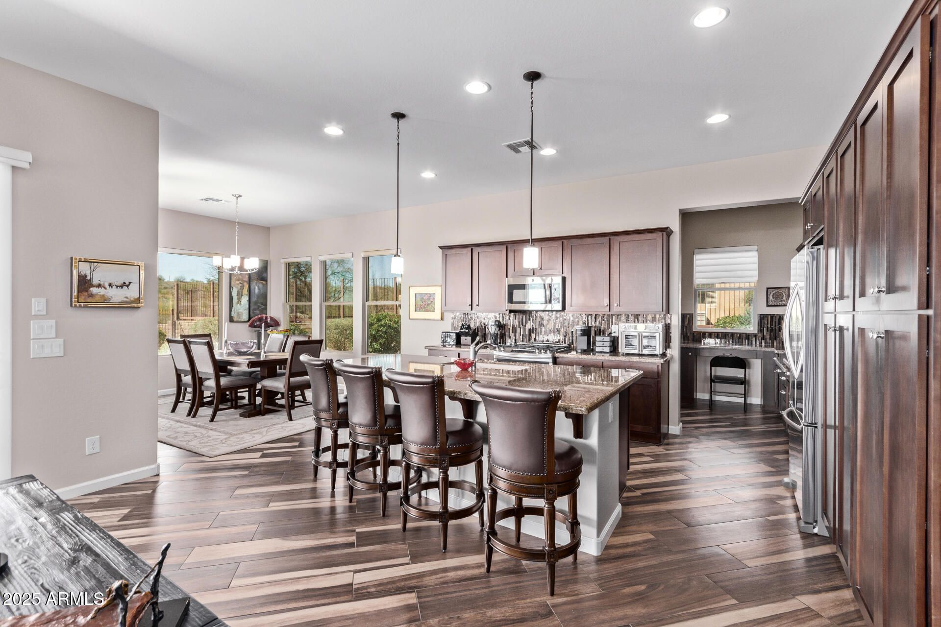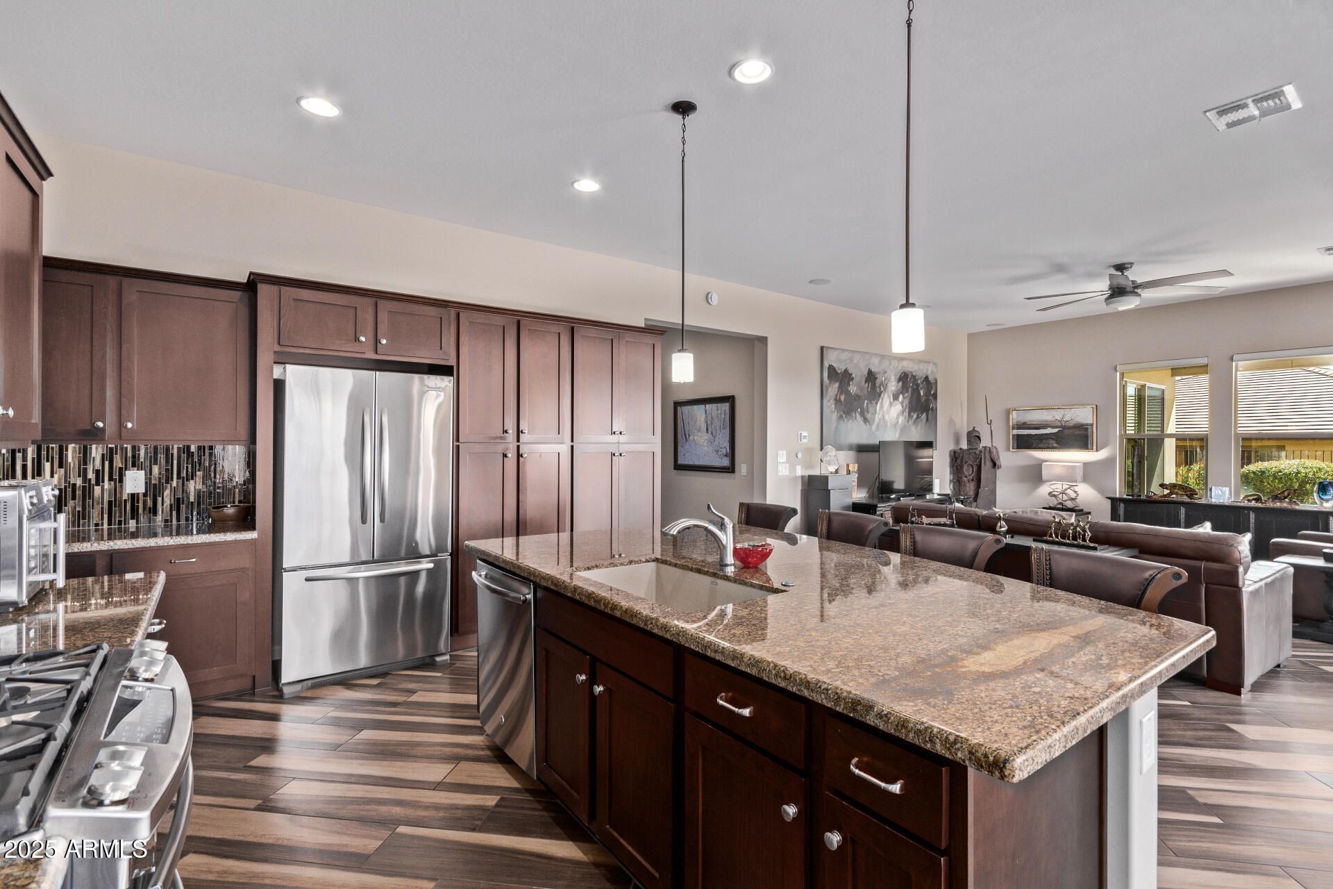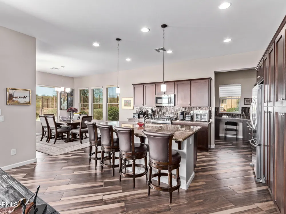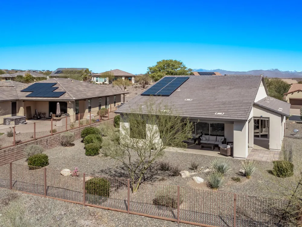 GREAT DEAL! Well-Maintained Home! Owned solar panels and LOW electric bills!!! Discover your DREAM HOME in the luxurious Trilogy Community at Wickenburg Ranch. This stunning POPULAR BRASADA MODEL 3-bedroom, 2.5 bath offers elegance and comfort. SPACIOUS layout and a coveted TANDEM 3-car garage. PERCHED ON A SCENIC RIDGE, this property has BREATHTAKING VIEWS that can be enjoyed from your fully fenced backyard and LARGE PATIO! Inside, the home shines with a CHEF STYLE KITCHEN, a GORGEOUS LARGE granite island, PLENTLY OF CABINETS and a convenient butler's pantry. A FULL SLIDING GLASS DOOR IN GREAT ROOM FOR INDOOR/OUTDOOR LIVING/ENTERTAINING! Energy efficient windows AND the sophisticated ADDED motorized shades ON EVERY WINDOW allow for privacy at the touch of a button! THIS IS A MUST SEE!!