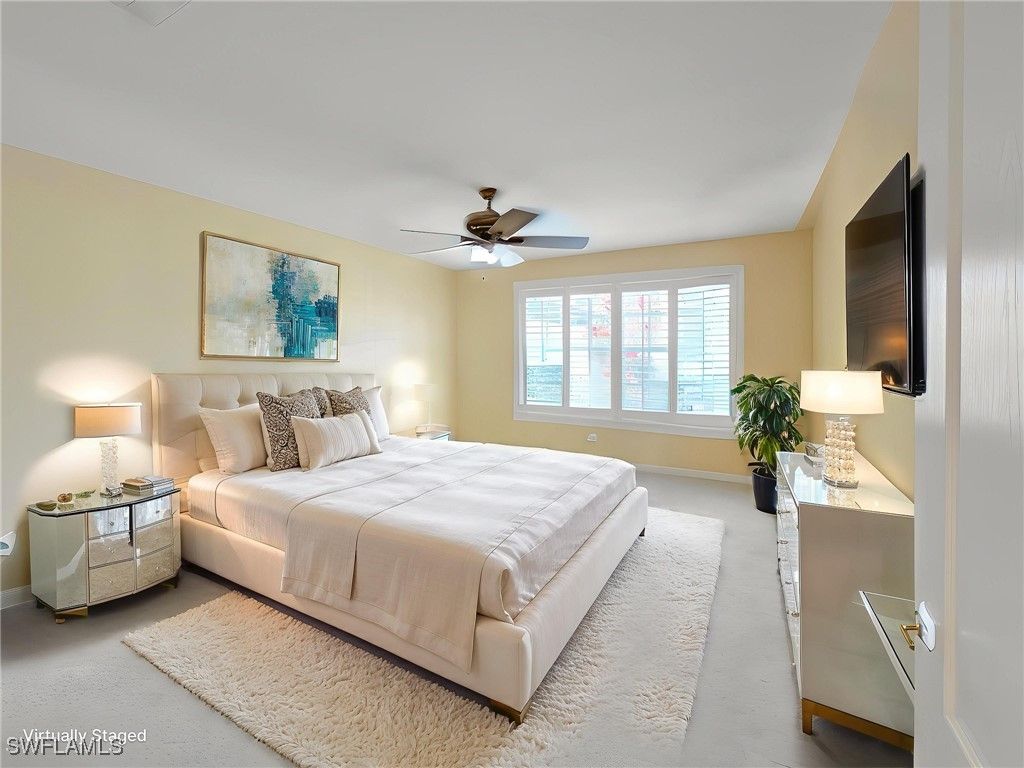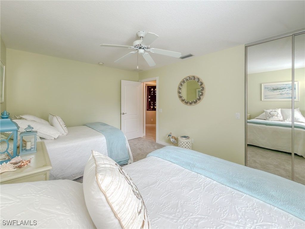 The highly coveted Island Walk community in North Naples presents this stunning, move-in-ready villa. Offering 1,680 square feet, one of the largest villa floor plans available, this exceptional residence is perfectly positioned along the tranquil waterway, showcasing picturesque views of Island Walk’s iconic bridges—an outlook that is truly difficult to match. This beautifully maintained home offers volume ceilings, new HVAC (2023), elegant new carpeting, and snow-white tile flooring throughout. Plantation shutters adorn every window, and a central vacuum system adds convenience. The home is further enhanced by a new tile roof currently being installed, along with a freshly power-washed exterior and updated exterior paint detailing, ensuring both beauty and peace of mind. Notably, this villa is designed for effortless living without the responsibility of a private pool, allowing you to enjoy Island Walk’s resort-style community pools without the added maintenance, insurance, and upkeep—an increasingly preferred choice among savvy buyers. Located in a desirable X Flood Zone, this property offers favorable insurance advantages and includes manual hurricane shutters for additional protection. Island Walk is renowned for its lush landscaping, scenic walking paths, and charming pedestrian bridges leading to the vibrant Town Center. Residents enjoy exceptional amenities, including resort and lap pools, a state-of-the-art fitness center, tennis and bocce courts, and the convenience of an on-site restaurant, post office, gas station, car wash, beauty salon, and nail salon. Low HOA fees include HDTV, high-speed internet, and lawn care, delivering outstanding value while allowing you to fully embrace luxury living beneath the majestic laurel oaks in one of North Naples’ most sought-after gated communities.