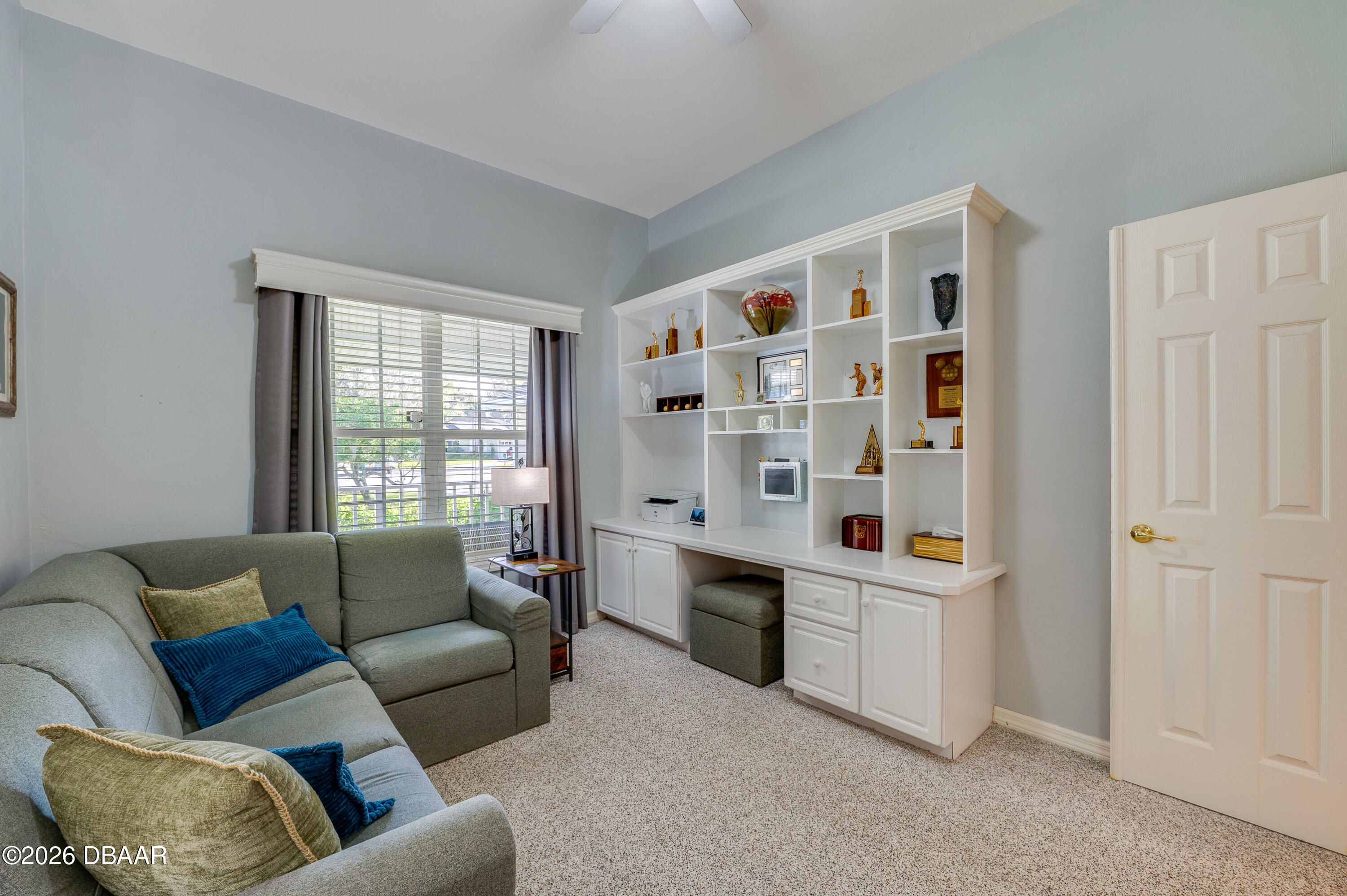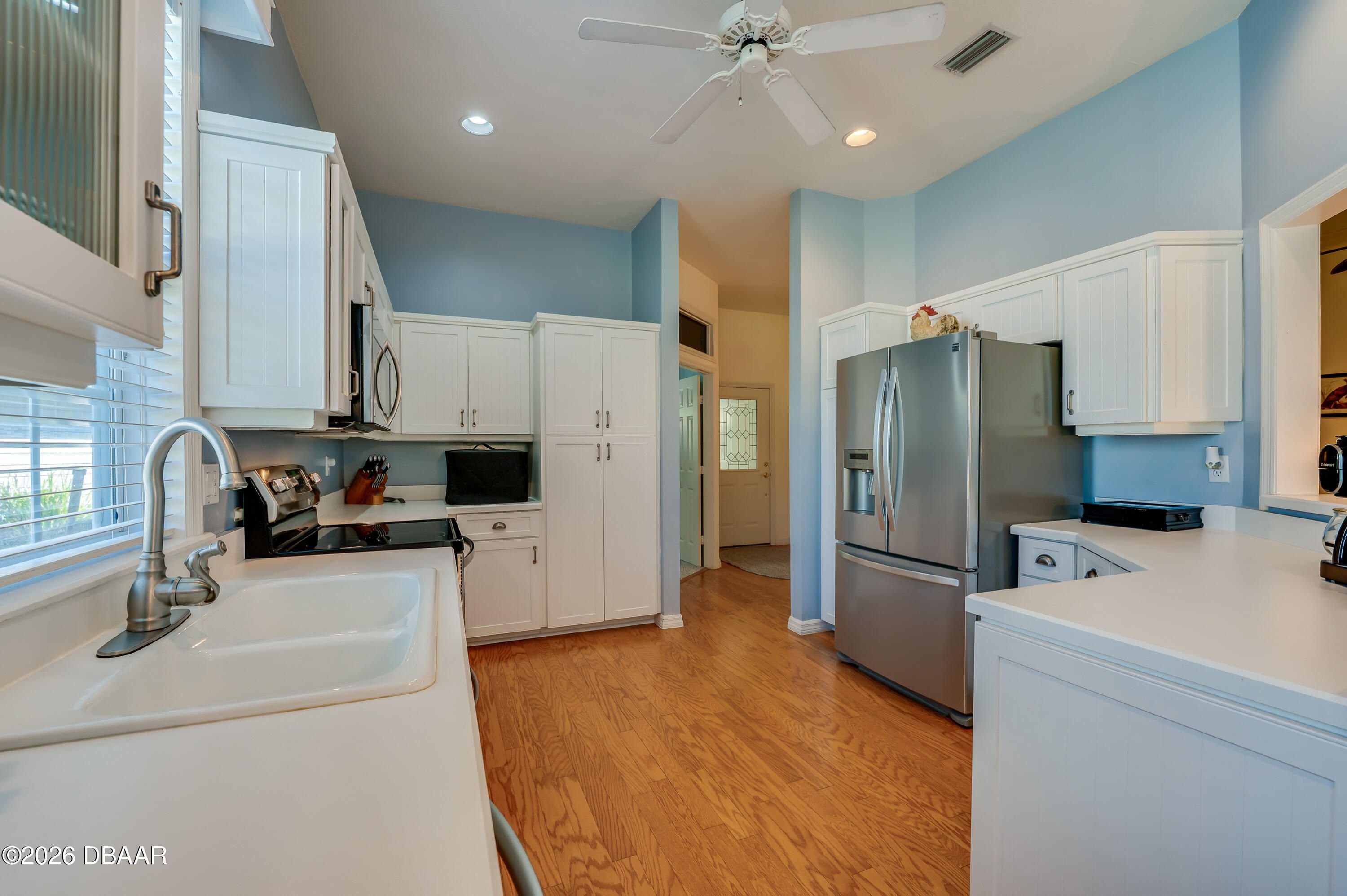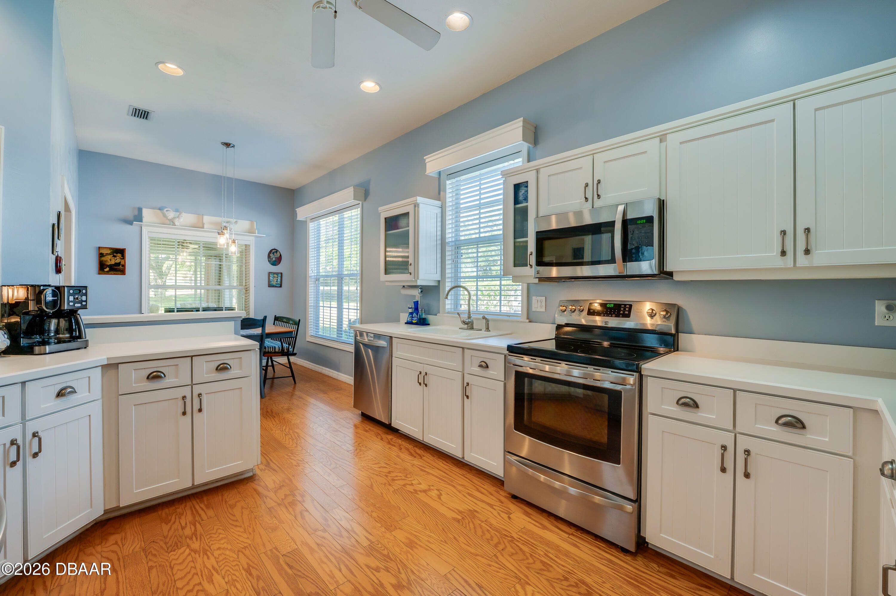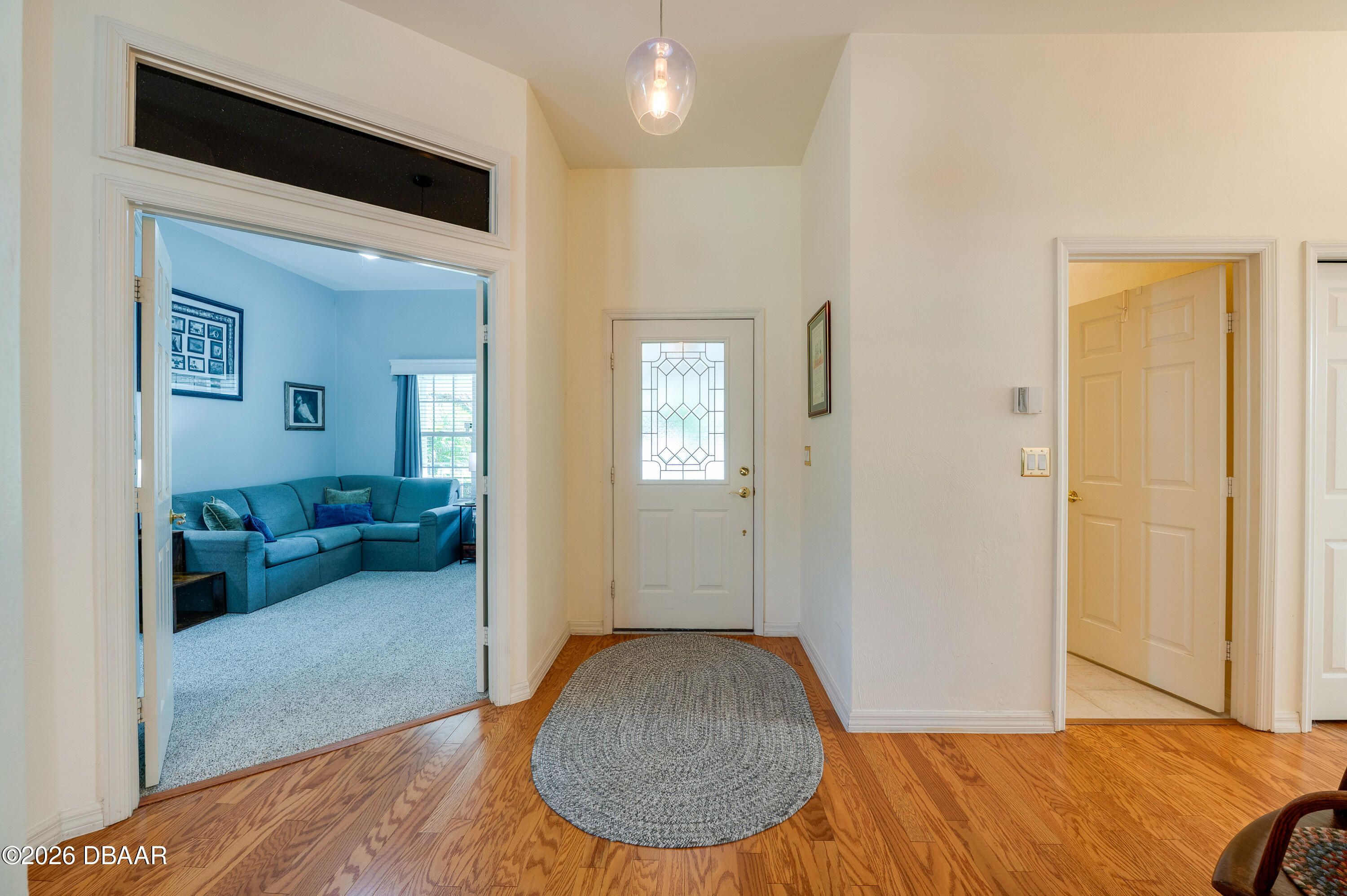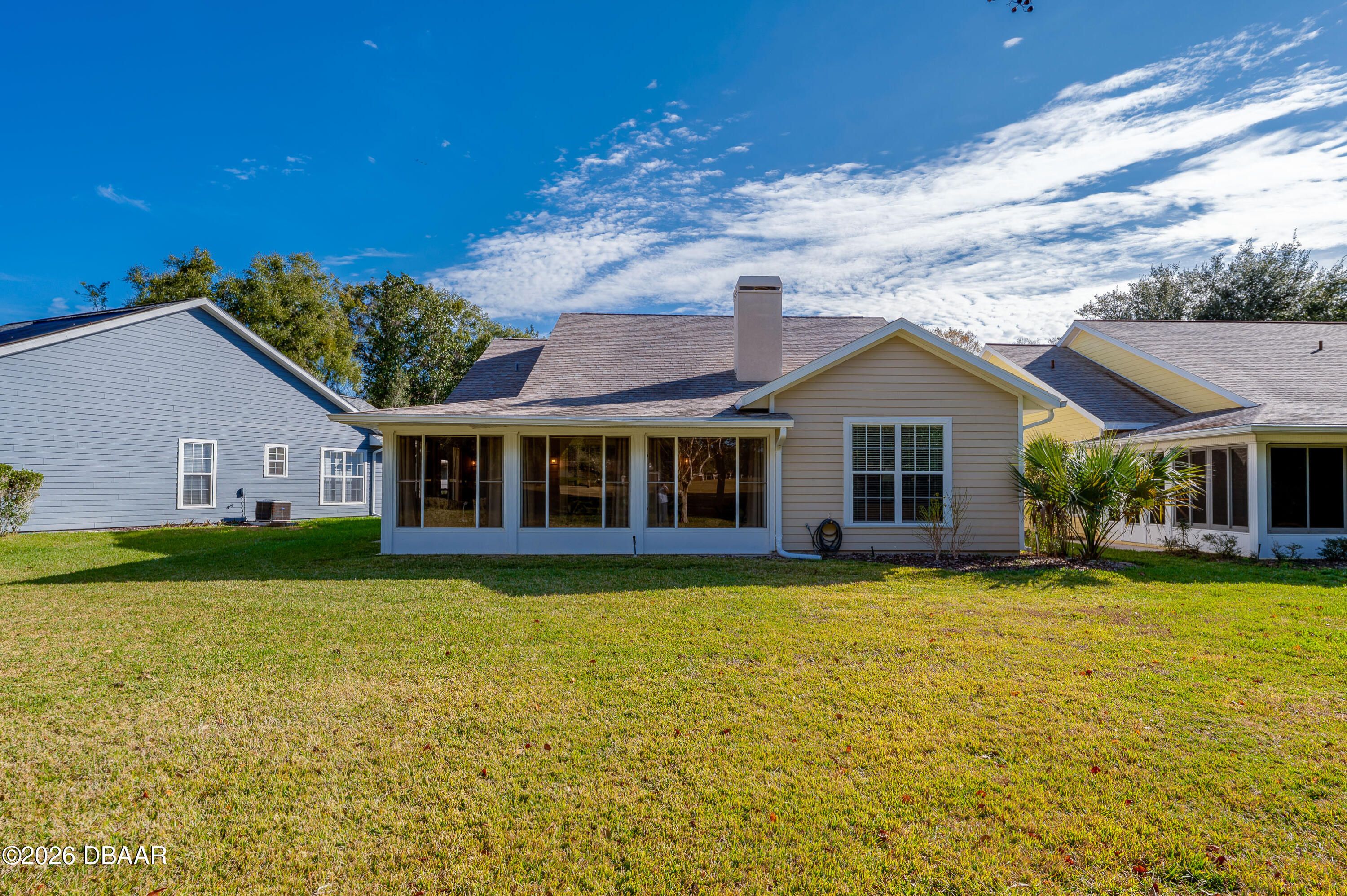 Located in the desirable Shadow Woods neighborhood of Halifax Plantation, this well-maintained single-family home offers golf course living with the ease of low-maintenance Florida lifestyle. Tucked away on a quiet cul-de-sac, the home enjoys peaceful golf course views and is just minutes from the Intracoastal River, beaches, three nearby parks, shopping, theaters, Rockefeller Gardens, and Central Park. The HOA provides exceptional value, covering all exterior yard maintenance including mowing, trimming, edging, mulch, fertilization, pest control, irrigation, and sprinklers using reclaimed water—allowing you to truly enjoy the good life. Conveniently located near the clubhouse, with easy access to I-95 and I-4, this home is perfectly positioned for both beachside and mainland attractions. Inside, the split-bedroom floor plan offers privacy and functionality. Features include a welcoming front porch, gas fireplace, large open kitchen with ample breakfast area, and a spacious Florida room ideal for relaxing or entertaining while enjoying the golf course setting. Dogs and cats are welcome. Built with a steel frame and durable Hardie board siding, the home has seen numerous thoughtful upgrades, including: New A/C heat pump and thermostat (2025), replacement of four large porch window panes (2025), water heater, bathroom fixtures, commodes, and master shower door (2022), carpet and padding replaced throughout (2021), interior updated ceiling fans/lighting (2017), FL room fans (2021), interior and exterior painting (2017), kitchen appliance package, cabinetry doors, hardware, faucets, microwave, and disposal (2016), roof replacement (2016). This lovely home truly must be seen in person to appreciate the floor plan, upgrades, and prime location.
