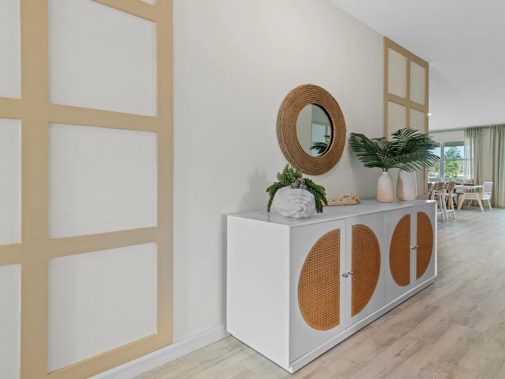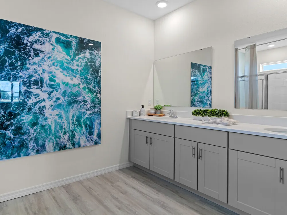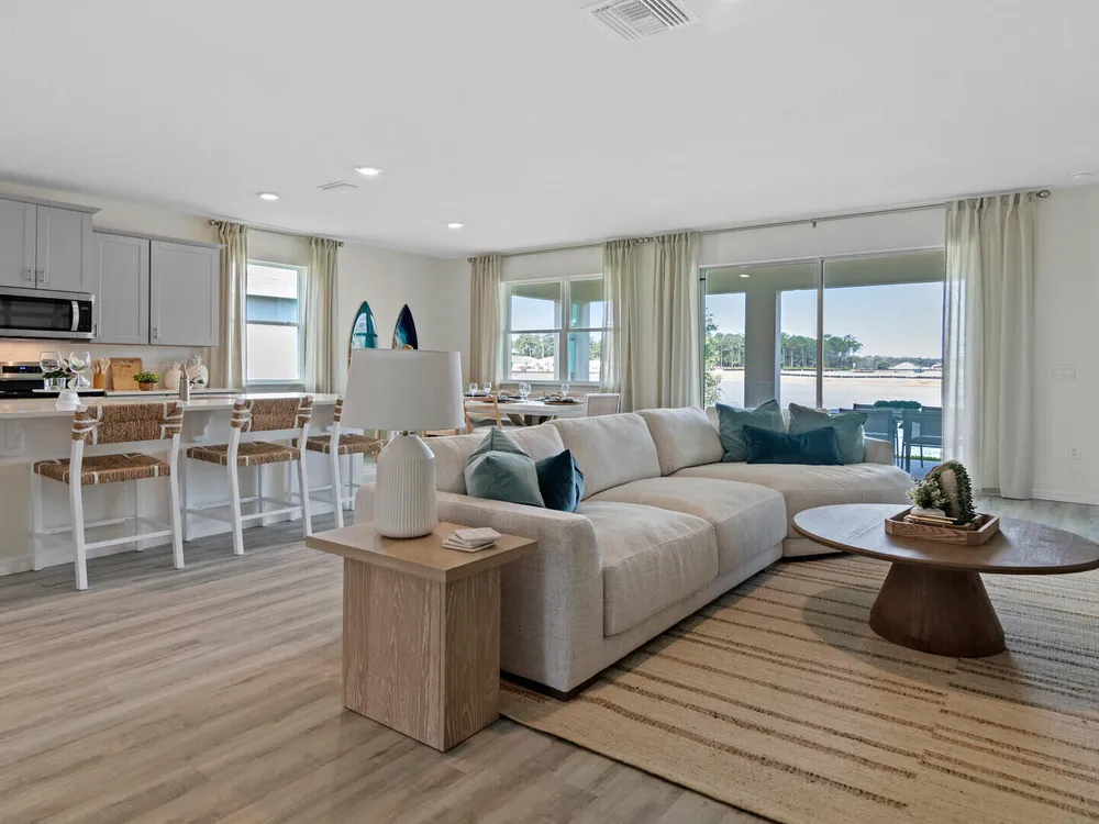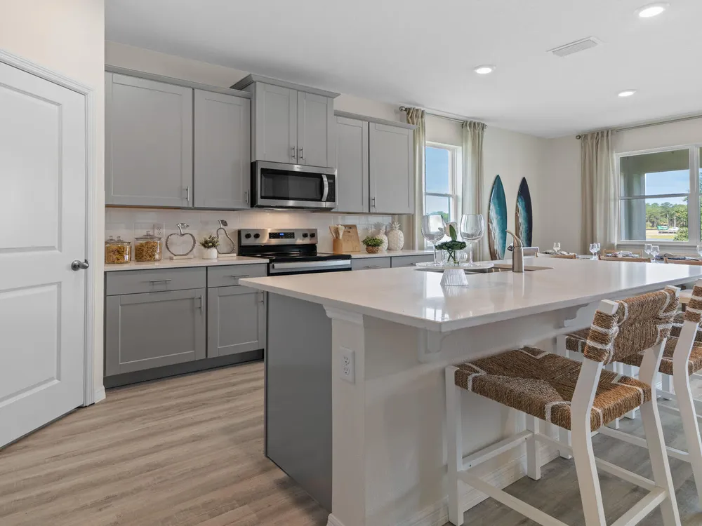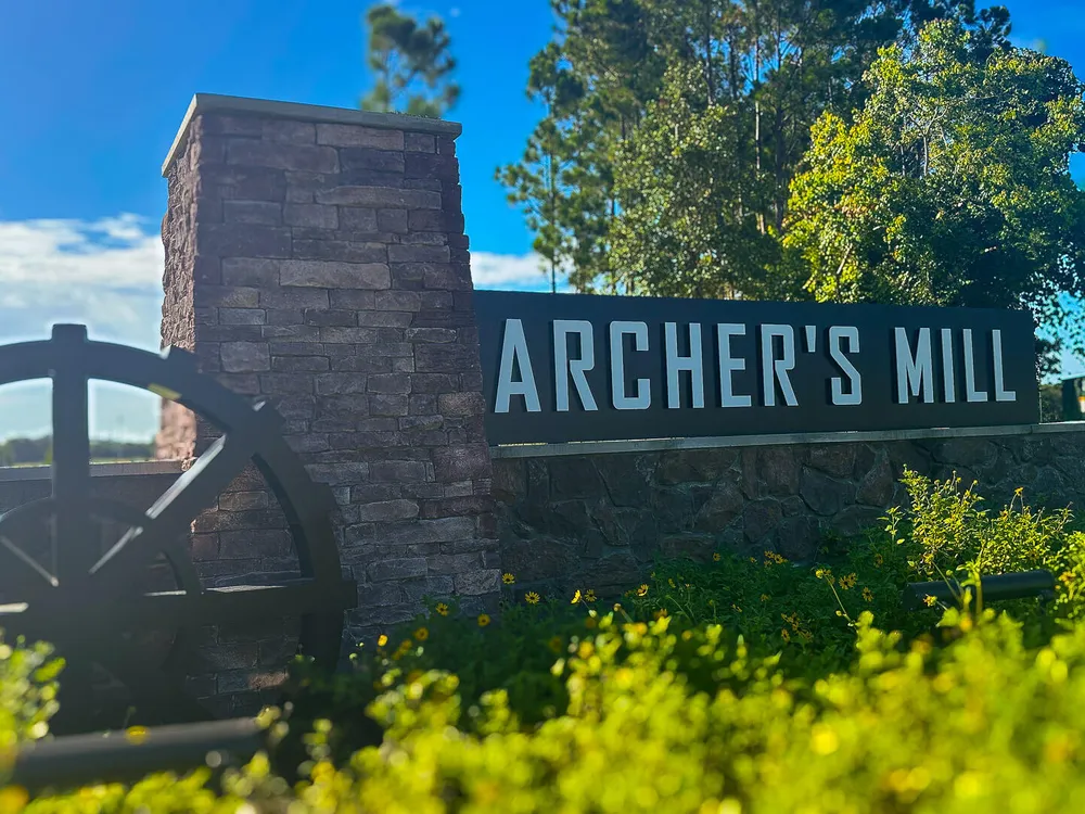 The Delray is a 4-bedroom, 2-bathroom, 2,034 sq ft home in Archer's Mill. It features a two-car garage, covered porch, concrete block construction, well-appointed kitchen, and smart home technology. The layout includes a private bedroom with en suite bathroom and walk-in closets, three guest bedrooms, and a full bath. Contact for more information on finding a home in Archer's Mill. *Photos are of similar model but not that of exact house. Pictures, photographs, colors, features, and sizes are for illustration purposes only and will vary from the homes as built. Home and community information including pricing, included features, terms, availability and amenities are subject to change and prior sale at any time without notice or obligation. Please note that no representations or warranties are made regarding school districts or school assignments; you should conduct your own investigation regarding current and future schools and school boundaries.*