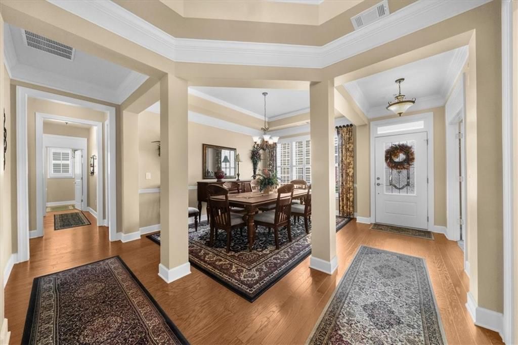 - Bookcases, Crown Molding, Double Vanity, Entrance Foyer, High Ceilings, High Speed Internet, Recessed Lighting, Tray Ceiling(s), Walk-In Closet(s), Dual Pane Window(s), Plantation Shutters, Window Treatments, Bathroom, Bedroom, Separate/Formal Dining Room, Family Room, Kitchen, Laundry Facility, Primary Bedroom, Home Office, Sunroom, Dehumidifier