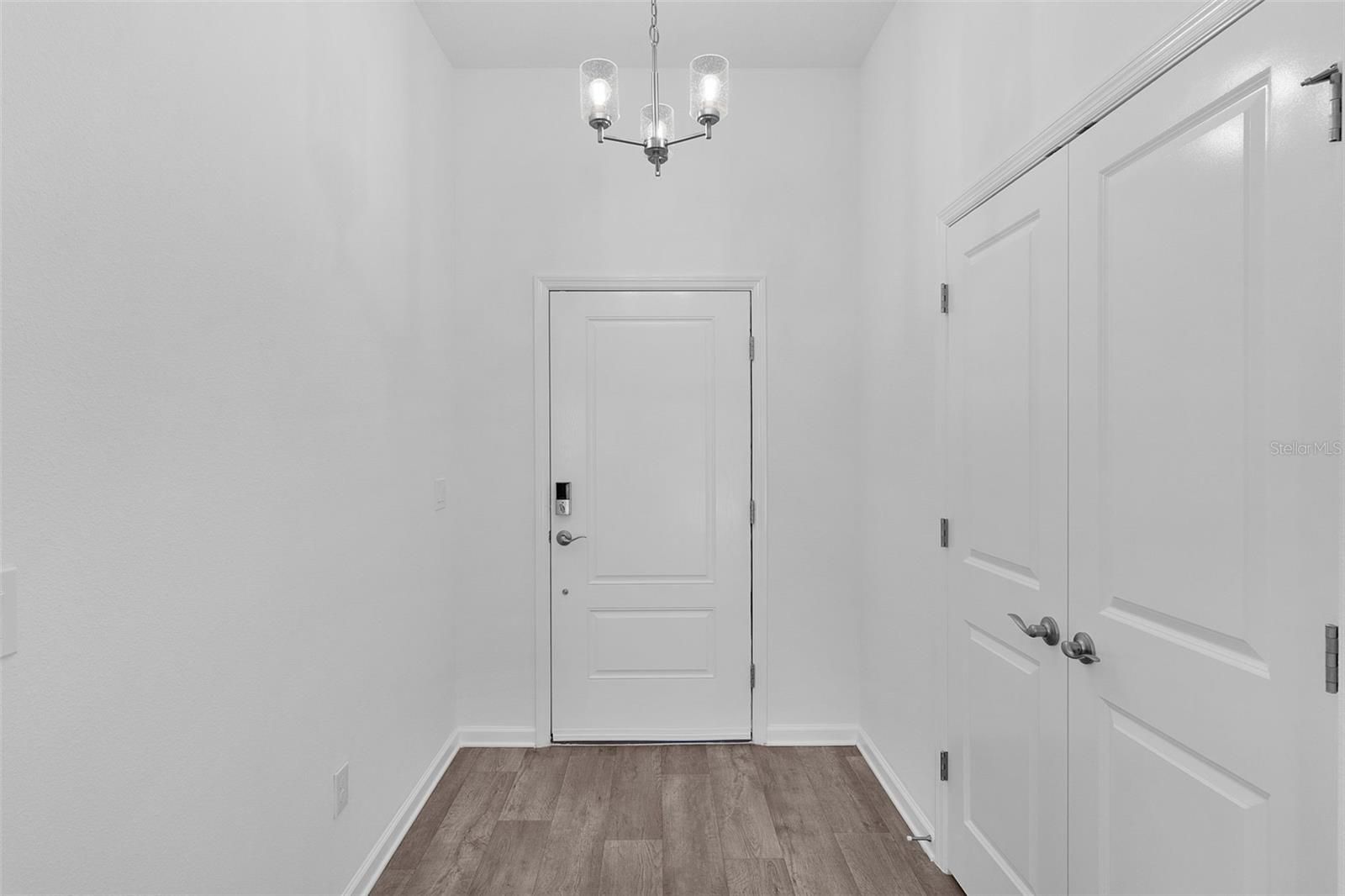 The Basswood: Designer 3 Bed, 2 Bath with Open Floor Plan Welcome to The Basswood model, featuring a magnificent, light-filled open floor plan. This designer 3-bedroom, 2-bathroom residence includes the highly sought-after golf cart garage, making it ideal for community living. Upon entering, the foyer provides convenience with a dedicated coat closet for extra storage. The chef's kitchen boasts of a gas stove, extensive cabinetry and a spacious walk-in pantry to handle all your storage needs. The dedicated laundry room includes a Maytag washer and dryer and provides direct access to the garage, which features durable epoxy floors and a convenient electric car charger. Sun-drenched natural light flows through the main living area, leading seamlessly to a relaxing screened lanai and an expansive open patio, perfect for grilling and entertaining guests. The private bedroom wing features a spacious primary suite, highlighted by an elegant coffered ceiling. The luxurious en-suite bathroom offers a large walk-in shower with a sleek glass enclosure, double vanity sinks, and stylish open shelving for towel display, complemented by a convenient linen closet with integrated hamper space. Two generous guest rooms and a full main bath are situated at the opposite end of the hall for maximum privacy. Beautiful, professional landscaping completes the picture of this stunning, ready-to-move-in home. By Golf cart approx.only 14 min to Brownwood, 20 minutes to Sawgrass and 25 to Eastport. Walk to DeLuna Pool and short ride to Water Lilly Rec center and the Reginal Center at Everglades.