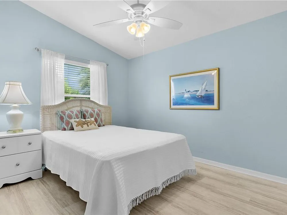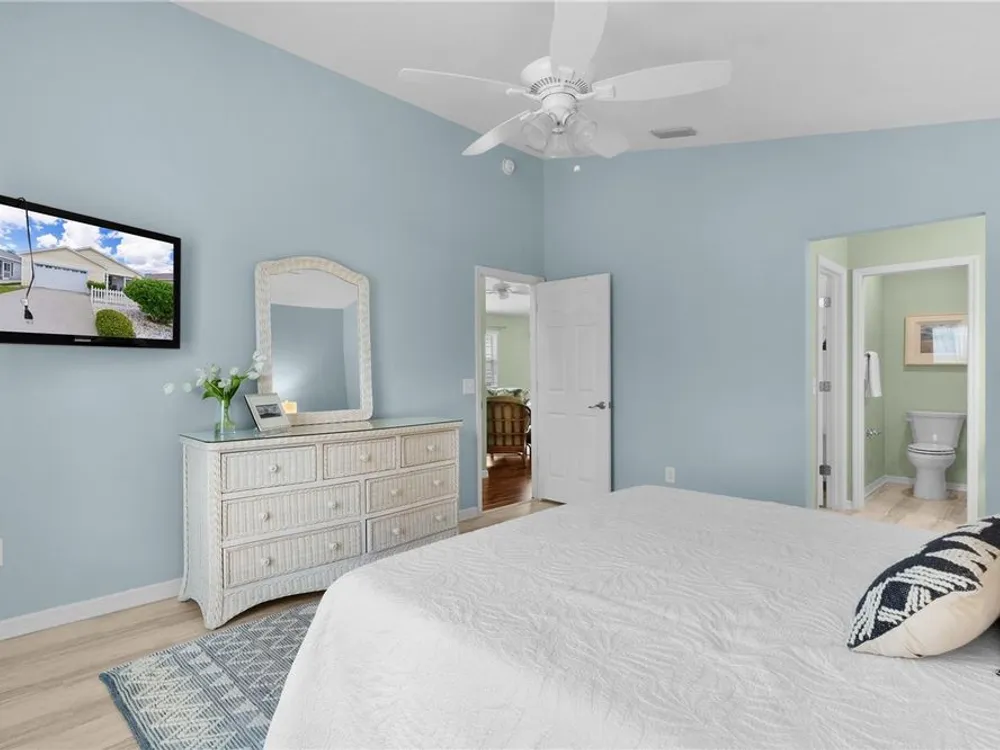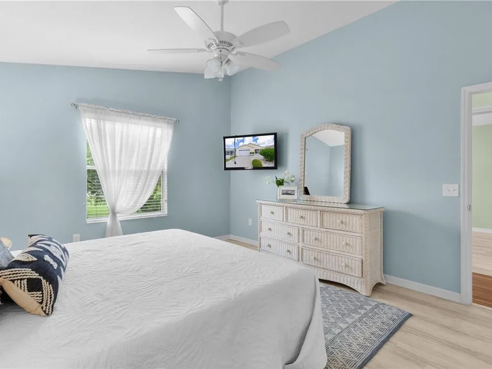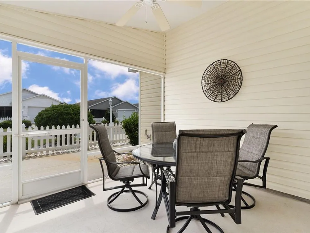 Start your active retirement in style! This charming 2-bedroom, 2-bath Cabot Cove patio villa in the sought-after Village of Fernandina is your ticket to the vibrant lifestyle of The Villages at an unbeatable price. Perfect as a seasonal retreat or a savvy investment property, this clean, well-maintained home is move-in ready and offers incredible value for those eager to enjoy world-class amenities just steps away. Home Features: Open/split floor plan with laminate and LVP flooring (no carpet!) for easy maintenance. Spacious master suite with an ensuite featuring a step-in shower and large walk-in closet. Guest bedroom with a generous built-in closet for ample storage. Modern conveniences: Under-sink water osmosis system, cabinet pull-out sliders, breakfast bar, and a large pantry closet off the kitchen. Indoor laundry room for added practicality. Bright and airy with ceiling fans, knock-down, and volume ceilings throughout. East-facing screened lanai with a ceiling fan, perfect for morning coffee, plus a side patio ideal for grilling and outdoor entertaining. 1.5-stall garage with plenty of room for your car and golf cart and has an electric garage door screen. 2012 roof, HVAC, and water heater. Prime Location: Surrounded by executive and championship golf courses, pickleball courts, swimming pools, recreation centers, and Bonifay and Evans Prairie country clubs, you’ll be immersed in endless fun. Savor nightly entertainment, dining, and shopping at the lively Brownwood and Sumter Landing market squares—all easily accessible by golf cart! Value-priced, offering a fantastic opportunity to embrace the active, social lifestyle of The Villages without stretching your budget. Schedule your private showing today and discover why this is the perfect place to call home—seasonally or year-round!