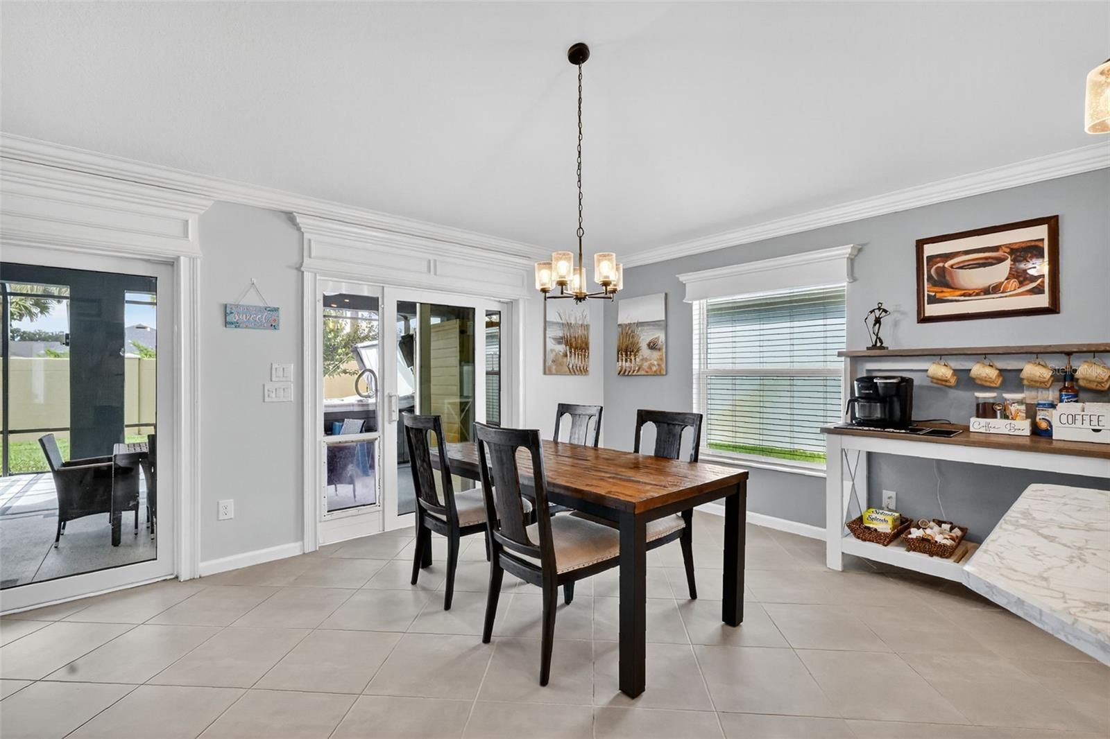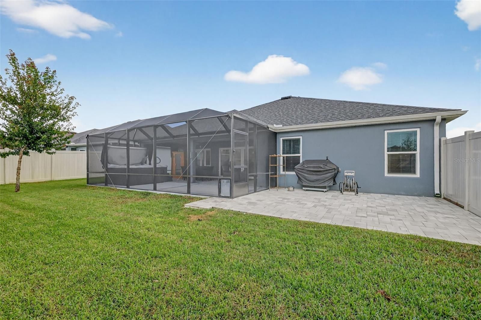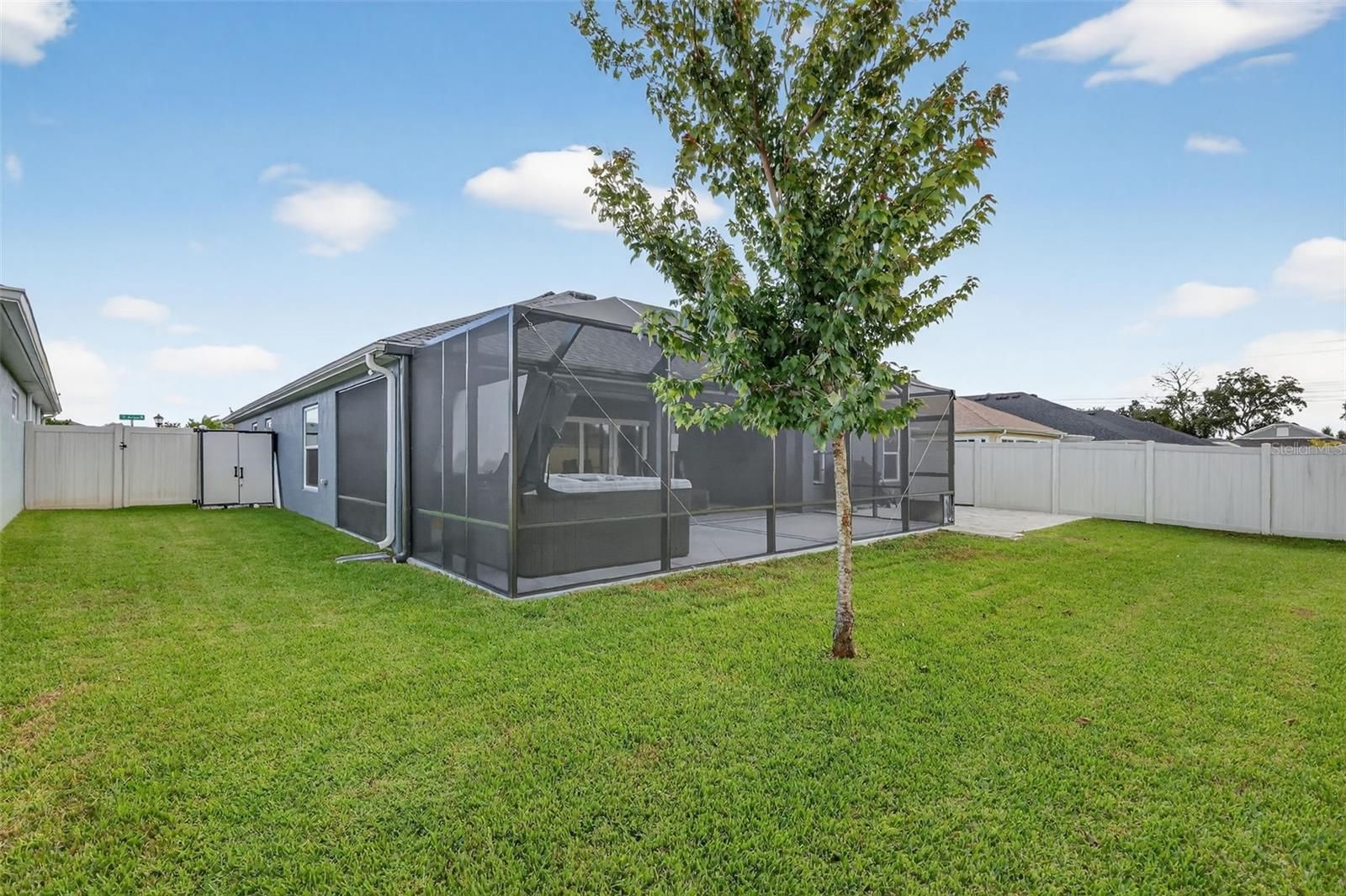 STUNNING 3/3 Hillsdale Veranda with HOT TUB, SAUNA, IN-LAW SUITE, ENCLOSED BACKYARD, and OVERSIZED 2-CAR + GOLF CART GARAGE nestled in the VIBRANT Village of DeLuna! Built in 2022, this nearly NEW home offers LOW-MAINTENANCE peace of mind with CONTEMPORARY DESIGN! Enhanced TIERED hardscaping, STONED landscaping beds, and DOUBLE side-lit entry welcome you in to a GENEROUS foyer. DIAGONAL TILED FLOORING and CROWN MOLDING are showcased THROUGHOUT the ENTIRE home! The OPEN CONCEPT of the living, dining, and kitchen creates an EXPANSIVE main area. From the living room, DOUBLE sets of sliding glass doors with decorative CORNICE, invite you into the FABULOUS lanai and birdcage featuring a HOT TUB and SAUNA - perfect for unwinding after a long day! This INCREDIBLE space offers PRIVACY GALORE with a FULLY ENCLOSED BACKYARD! Ideal for PETS; ENTERTAINING friends and family; or simply RELAXING with your morning coffee, evening cocktail, or a good book! There’s also an adjacent REAR PAVER PATIO for grilling or enjoying the beautiful Florida weather! Back inside, the AMAZING kitchen is a CULINARY HAVEN boasting WHITE SHAKER cabinetry; MODERN veined countertops; TILED backsplash; EXPANSIVE U-shaped Island with EAT-IN breakfast bar; STAINLESS appliances; GAS cooking; built-in DOUBLE PANTRY with ROLL-OUTS; and a BUTCHER BLOCK CENTER ISLAND! Adjacent to the kitchen, the dining room offers a VAULTED ceiling and sliding glass doors and window with decorative CORNICES. The primary bedroom features a TRAY ceiling and spacious WALK-IN closet. Its en-suite bathroom boasts WHITE cabinetry; DOUBLE sinks; TILED ROMAN-STYLE, WALK-IN shower; and a SEPARATE water closet. The second EN-SUITE bedroom is located behind a POCKET DOOR creating a SEPARATE GUEST or IN-LAW SUITE! Bedroom two boasts a VAULTED ceiling and WALK-IN closet. Its EN-SUITE bathroom offers a WHITE vanity and a TILED WALK-IN shower. The third bedroom and bath are also located behind a POCKET DOOR. Bedroom three has DOUBLE windows and a built-in closet. The third bathroom offers WHITE cabinetry, TILED tub and shower combination, and a hallway LINEN closet. An INTERIOR laundry room boasts WHITE SHAKER cabinetry and shelving, utility sink, and HUGE hallway STORAGE closet! Completing the package is an OVERSIZED 28’ x 23’ TWO-CAR + GOLF CART GARAGE with additional shelving, WHOLE HOUSE Nova water filtration and softener system, and ABUNDANT storage and parking space! DON’T MISS YOUR OPPORTUNITY to make this INCREDIBLE HOME YOUR OWN! The Village of DeLuna offers easy access to a plethora of nearby attractions include Brownwood Paddock and upcoming Eastport Town Squares with nightly entertainment, shopping, and restaurants; Also, enjoy live music under the oak trees at Edna's on the Green! Nearby pools and recreation facilities include: DeLuna, Waterlily, Cattail, and Everglade; Golf enthusiasts appreciate the nearby Lowlands, Loblolly, and Longleaf Executive Golf Courses. For added fun, there’s also Richmond and Marsh View Pitch and Putts. Miles of scenic walking trails surround the area, including the Hog Eye Preserve. Easy access to US301 ensures swift travel throughout The Villages, with convenient connections to the Turnpike and I-75. The easily accessible Magnolia Plaza Shopping Center also offers an abundance of restaurants, shops, and more! PLEASE WATCH OUR WALKTHROUGH VIDEO OF THIS FABULOUS CONTEMPORARY HOME in a FANTASTIC LOCATION and call today to schedule your Private Showing or Virtual Tour!