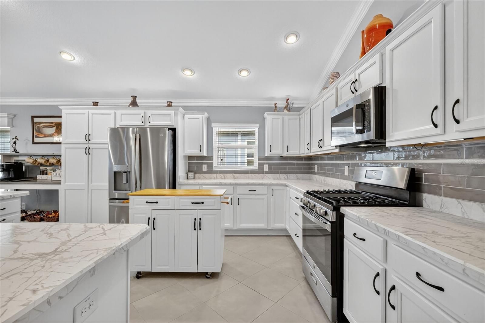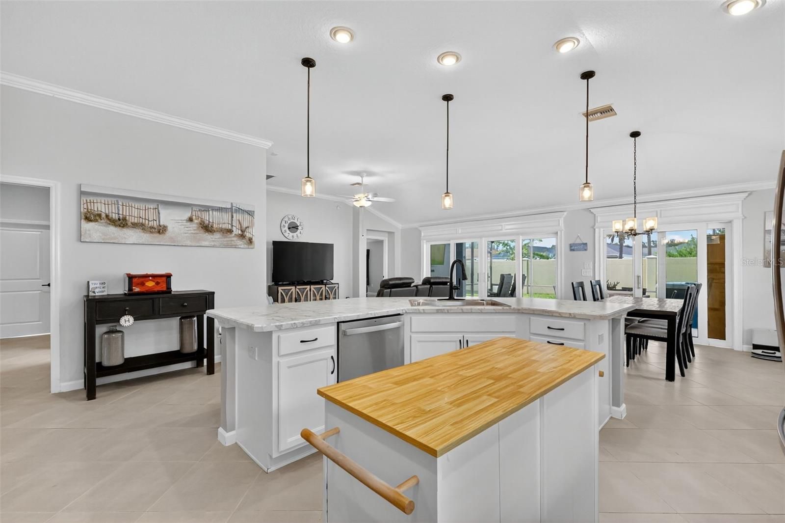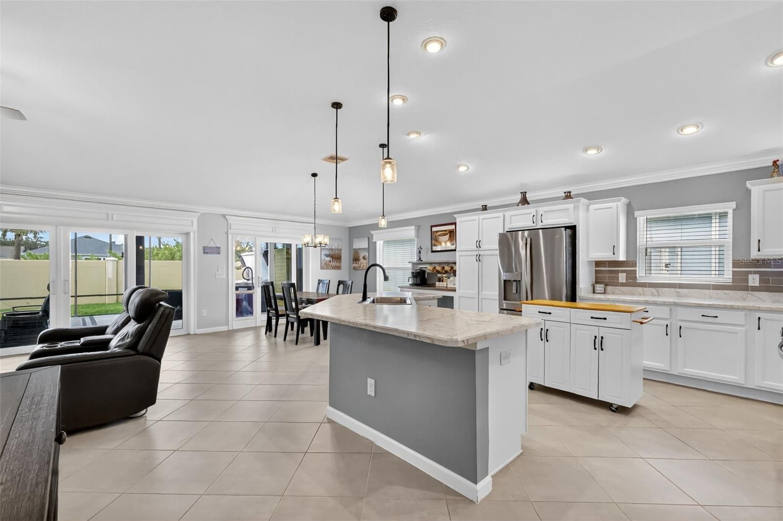 STUNNING 3/3 Hillsdale Veranda with HOT TUB, SAUNA, IN-LAW SUITE, ENCLOSED BACKYARD, and OVERSIZED 2-CAR + GOLF CART GARAGE nestled in the VIBRANT Village of DeLuna! Built in 2022, this nearly NEW home offers LOW-MAINTENANCE peace of mind with CONTEMPORARY DESIGN! Enhanced TIERED hardscaping, STONED landscaping beds, and DOUBLE side-lit entry welcome you in to a GENEROUS foyer. DIAGONAL TILED FLOORING and CROWN MOLDING are showcased THROUGHOUT the ENTIRE home! The OPEN CONCEPT of the living, dining, and kitchen creates an EXPANSIVE main area. From the living room, DOUBLE sets of sliding glass doors with decorative CORNICE, invite you into the FABULOUS lanai and birdcage featuring a HOT TUB and SAUNA - perfect for unwinding after a long day! This INCREDIBLE space offers PRIVACY GALORE with a FULLY ENCLOSED BACKYARD! Ideal for PETS; ENTERTAINING friends and family; or simply RELAXING with your morning coffee, evening cocktail, or a good book! There’s also an adjacent REAR PAVER PATIO for grilling or enjoying the beautiful Florida weather! Back inside, the AMAZING kitchen is a CULINARY HAVEN boasting WHITE SHAKER cabinetry; MODERN veined countertops; TILED backsplash; EXPANSIVE U-shaped Island with EAT-IN breakfast bar; STAINLESS appliances; GAS cooking; built-in DOUBLE PANTRY with ROLL-OUTS; and a BUTCHER BLOCK CENTER ISLAND! Adjacent to the kitchen, the dining room offers a VAULTED ceiling and sliding glass doors and window with decorative CORNICES. The primary bedroom features a TRAY ceiling and spacious WALK-IN closet. Its en-suite bathroom boasts WHITE cabinetry; DOUBLE sinks; TILED ROMAN-STYLE, WALK-IN shower; and a SEPARATE water closet. The second EN-SUITE bedroom is located behind a POCKET DOOR creating a SEPARATE GUEST or IN-LAW SUITE! Bedroom two boasts a VAULTED ceiling and WALK-IN closet. Its EN-SUITE bathroom offers a WHITE vanity and a TILED WALK-IN shower. The third bedroom and bath are also located behind a POCKET DOOR. Bedroom three has DOUBLE windows and a built-in closet. The third bathroom offers WHITE cabinetry, TILED tub and shower combination, and a hallway LINEN closet. An INTERIOR laundry room boasts WHITE SHAKER cabinetry and shelving, utility sink, and HUGE hallway STORAGE closet! Completing the package is an OVERSIZED 28’ x 23’ TWO-CAR + GOLF CART GARAGE with additional shelving, WHOLE HOUSE Nova water filtration and softener system, and ABUNDANT storage and parking space! DON’T MISS YOUR OPPORTUNITY to make this INCREDIBLE HOME YOUR OWN! The Village of DeLuna offers easy access to a plethora of nearby attractions include Brownwood Paddock and upcoming Eastport Town Squares with nightly entertainment, shopping, and restaurants; Also, enjoy live music under the oak trees at Edna's on the Green! Nearby pools and recreation facilities include: DeLuna, Waterlily, Cattail, and Everglade; Golf enthusiasts appreciate the nearby Lowlands, Loblolly, and Longleaf Executive Golf Courses. For added fun, there’s also Richmond and Marsh View Pitch and Putts. Miles of scenic walking trails surround the area, including the Hog Eye Preserve. Easy access to US301 ensures swift travel throughout The Villages, with convenient connections to the Turnpike and I-75. The easily accessible Magnolia Plaza Shopping Center also offers an abundance of restaurants, shops, and more! PLEASE WATCH OUR WALKTHROUGH VIDEO OF THIS FABULOUS CONTEMPORARY HOME in a FANTASTIC LOCATION and call today to schedule your Private Showing or Virtual Tour!