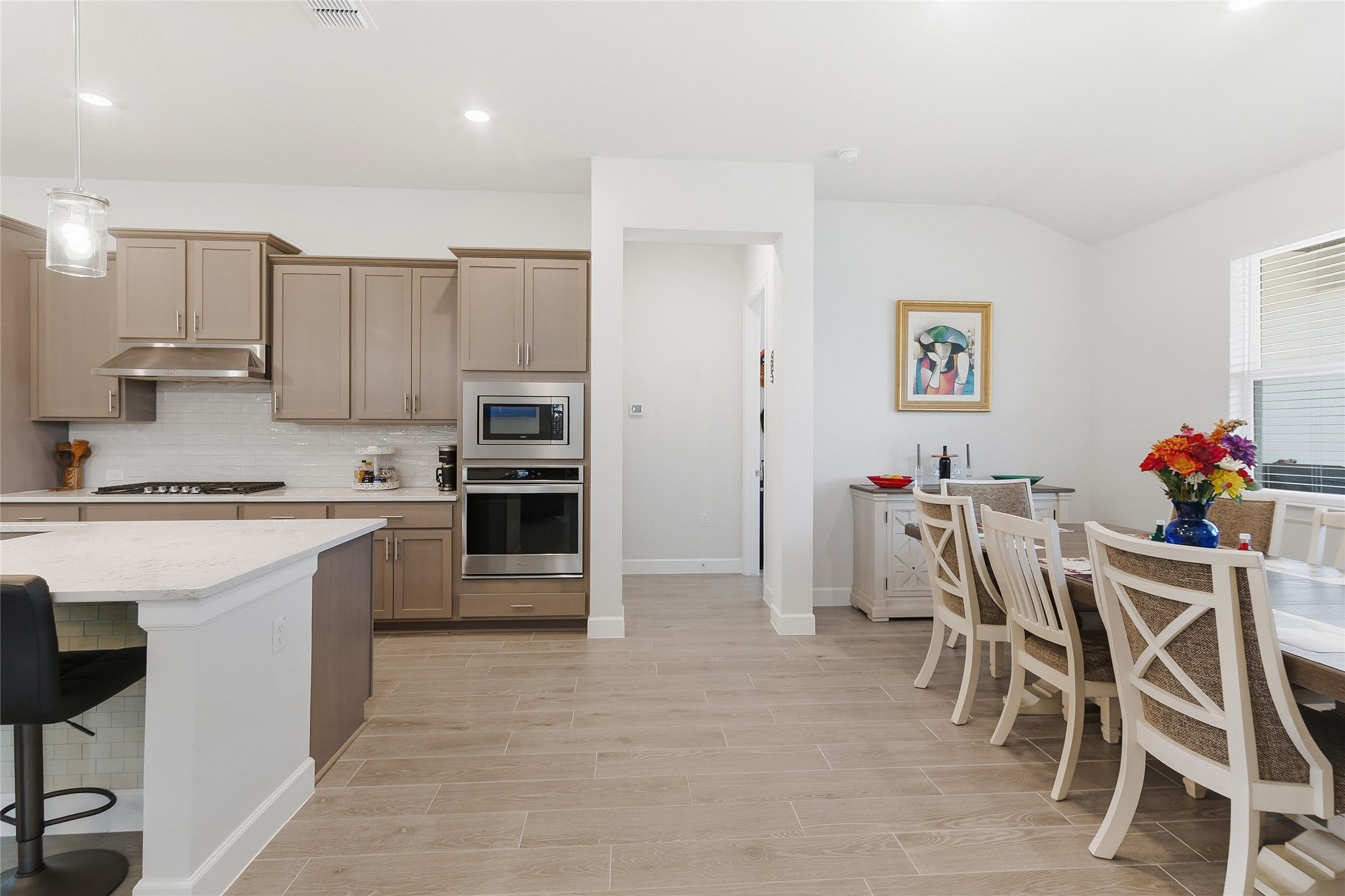 - Built-In Gas Range, Built-In Oven, Dishwasher, Disposal, Microwave, Range Hood, Water Softener Owned, Vented Exhaust Fan