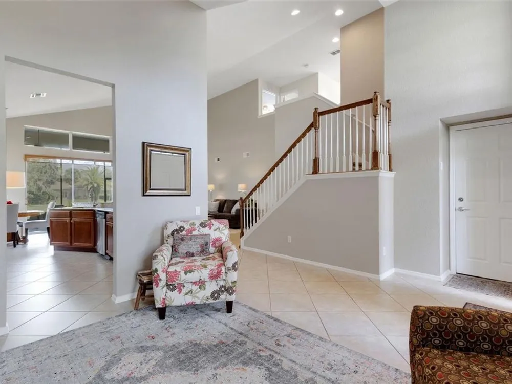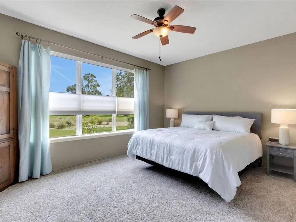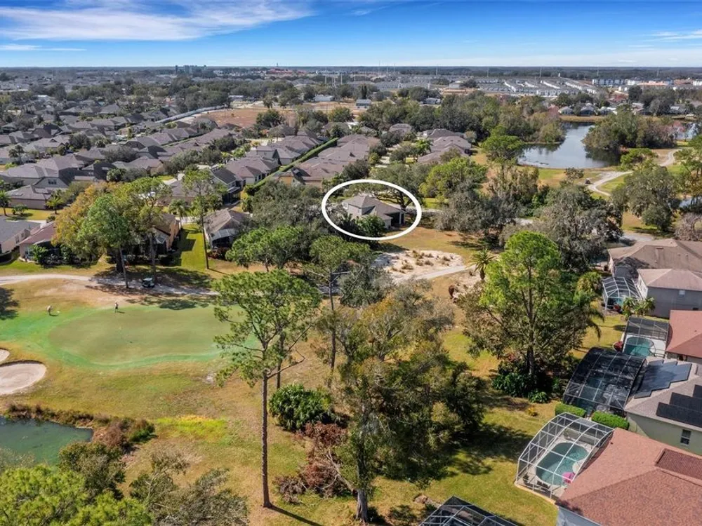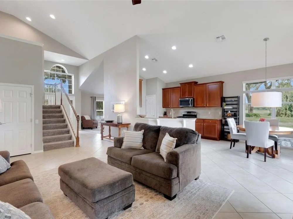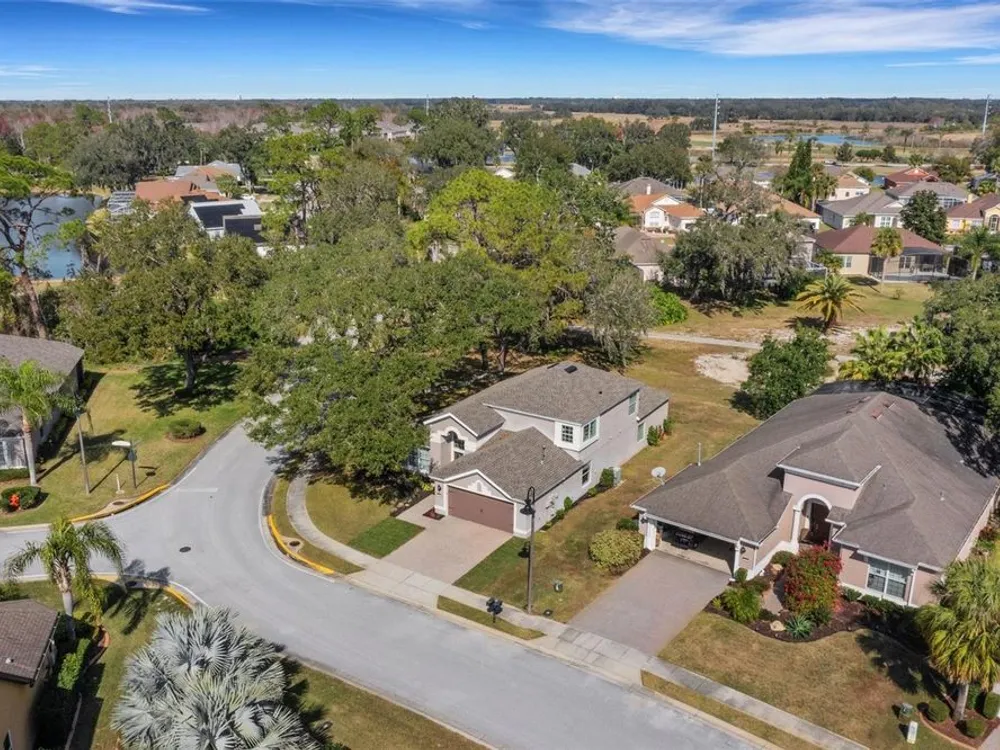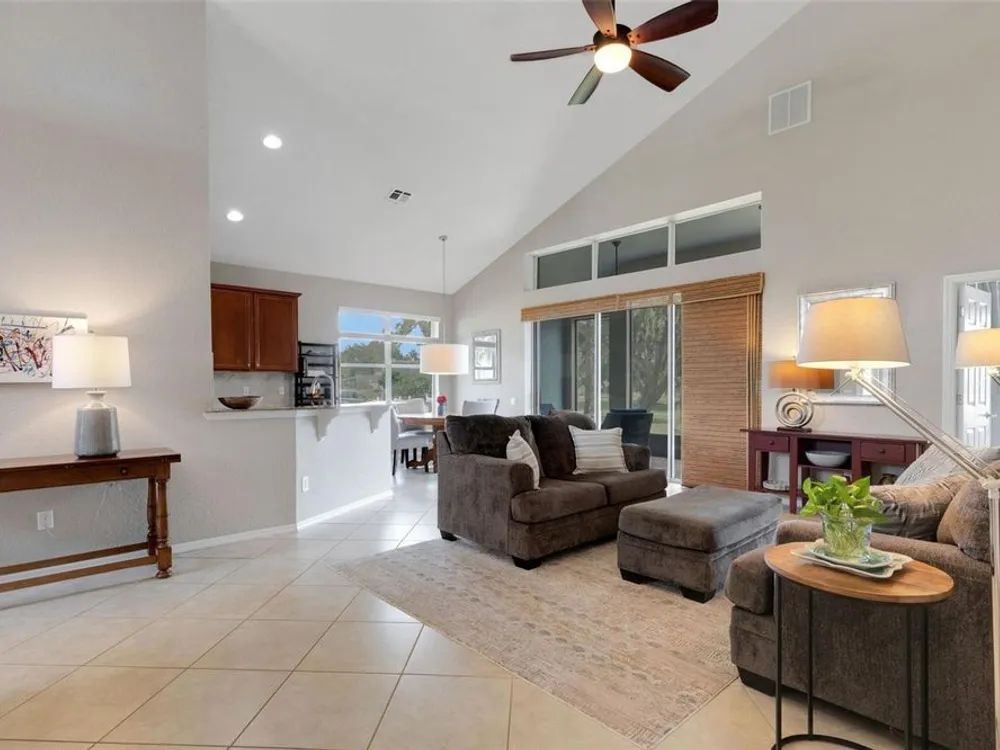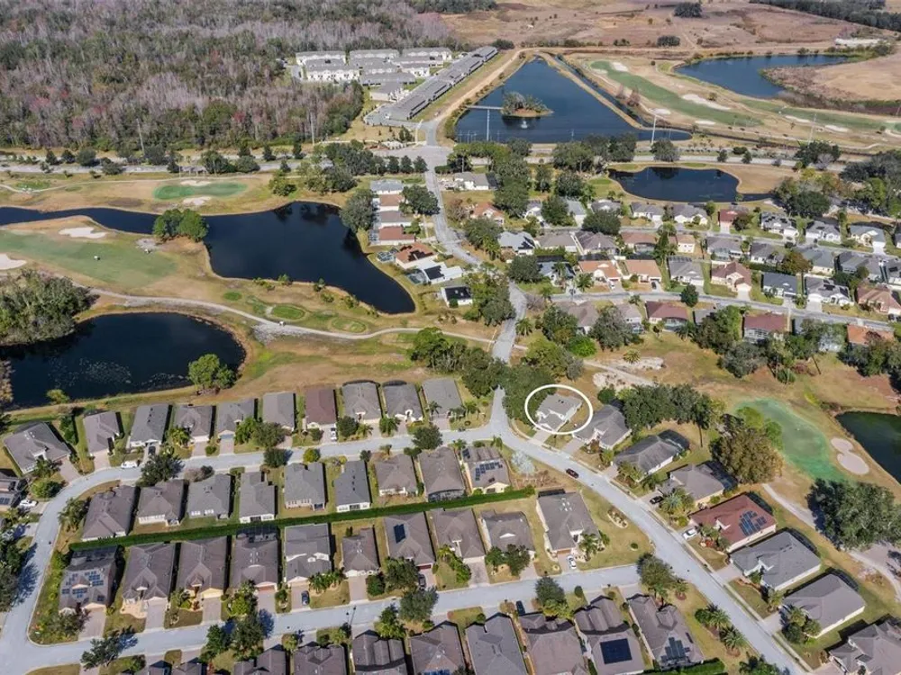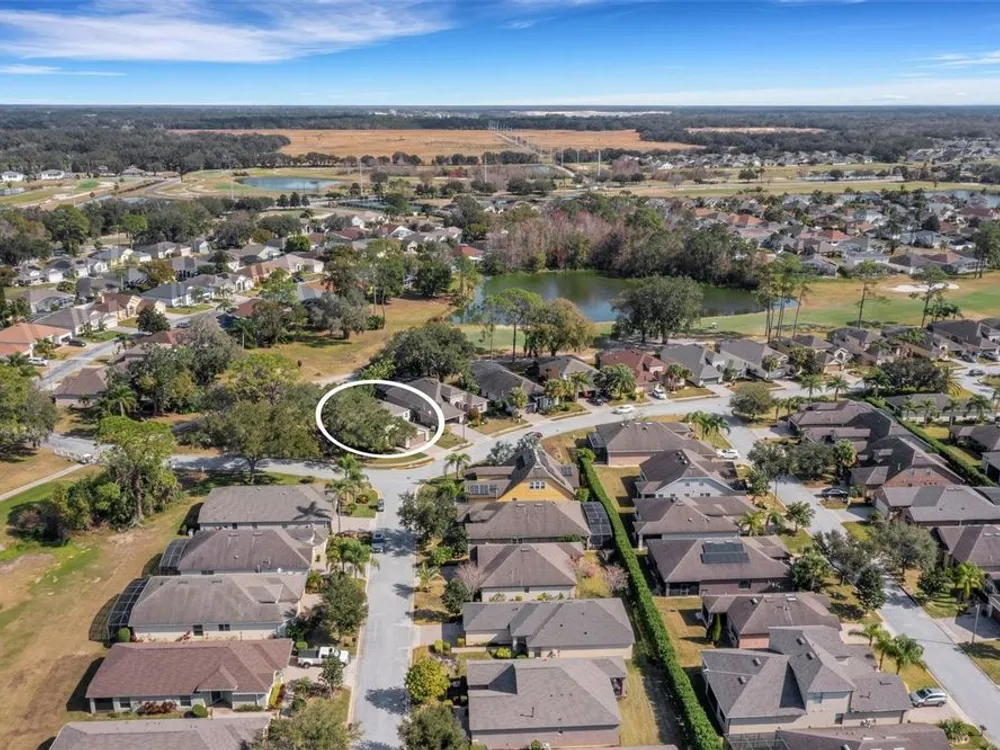 Drive through the gates into the oasis that is Del Webb Orlando and fall in love with this beautifully updated two-story residence. On a prestigious corner lot with a stunning mature live oak tree and overlooking the White Heron golf course, this immaculate 2,086-square-foot home combines timeless style with modern upgrades. The floor plan features a first-floor primary suite with a luxuriously remodeled bath and walk-in closet and a second bedroom/den with an adjoining remodeled bath. The primary suite bathroom features two sinks with quartz countertops, a stand-alone modern tub, modern floor-to-ceiling tiles, walk-in shower, linen closet, and private water-closet. The second bathroom features a remodeled floor-to-ceiling tiled shower with glass doors. The upstairs loft houses the third bedroom, bathroom with a tub convenient for children’s baths, and lovely front room full of natural light perfect for a sitting room, art room, or office. Ceiling fans throughout the house provide year-round comfort. You enter the home through the front door with side lights into the airy, open floor plan onto the enclosed lanai with golf course view. The eat-in kitchen features stainless steel appliances, a recently purchased refrigerator with French doors and two freezer drawers, gas stove, granite countertops, wood cabinets with bottom pull-outs and a tile backsplash. The property’s prime location has tons of space to build the lanai of your dreams. For space launch lovers, sit on your lanai and watch exciting Cape Canaveral launches day or night. Recent improvements to the home include a new roof installed in 2023, two remodeled bathrooms with comfort height toilets, fresh interior paint, new upstairs flooring, and an upgraded made-in-USA stainless steel Navien tankless hot water heater for maximum efficiency and energy savings installed in 2025. The $425 semi-annual HOA fee provides 24x7 staffed security gate and master association-owned private road maintenance. Adjacent to recently renovated 18-hole White Heron Golf Club. The $328 monthly Del Webb HOA fee includes lawn maintenance and exclusive access to resident-owned 30,000+ SF Montecito clubhouse and amenities. DEL WEBB ORLANDO is a 55+ community with a tavern, indoor walking track, fitness center, indoor and outdoor pools and spas with locker rooms and showers, billiards, ping pong, craft room, and a ballroom for special events. Outdoor activities include pickleball, tennis, bocce, basketball, shuffleboard, community gardening center, an outdoor amphitheater, large brick fire pit and large screened-in gazebo over the water. Miles of biking and walking trails within Ridgewood Lakes gated community. Located conveniently to shopping at Posner Park (4 miles), Disney World, Universal Studios, Orlando & Central FL entertainment nearby. Easy access to I-4, medical facilities, airports & Sunrail Station. Advent Health hospital is 3 miles away.