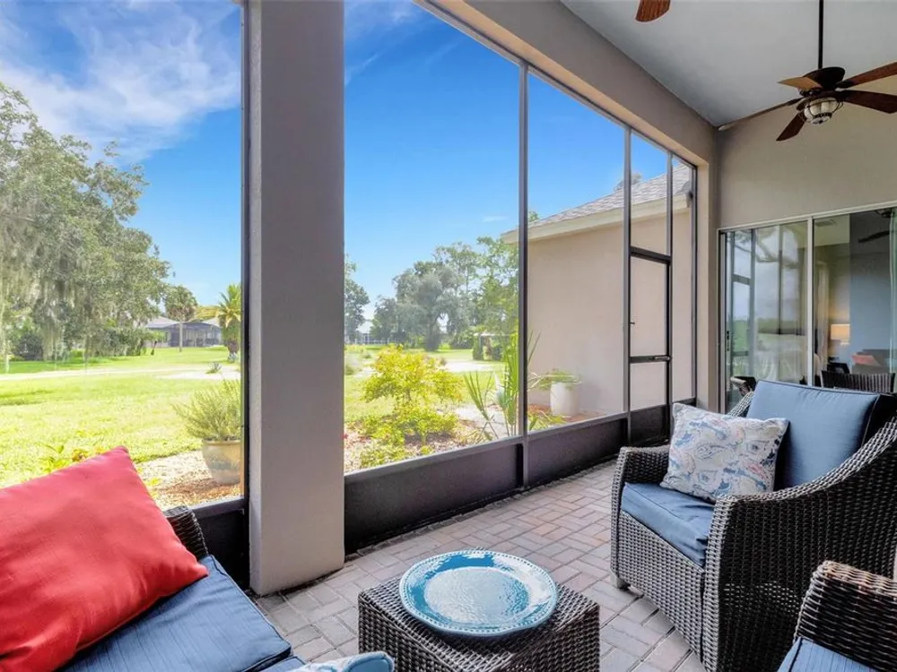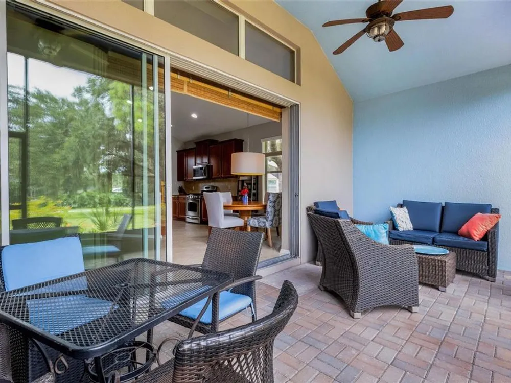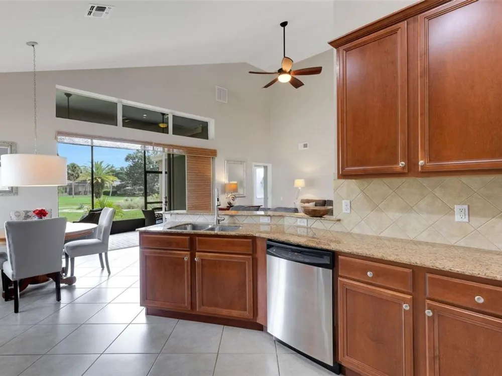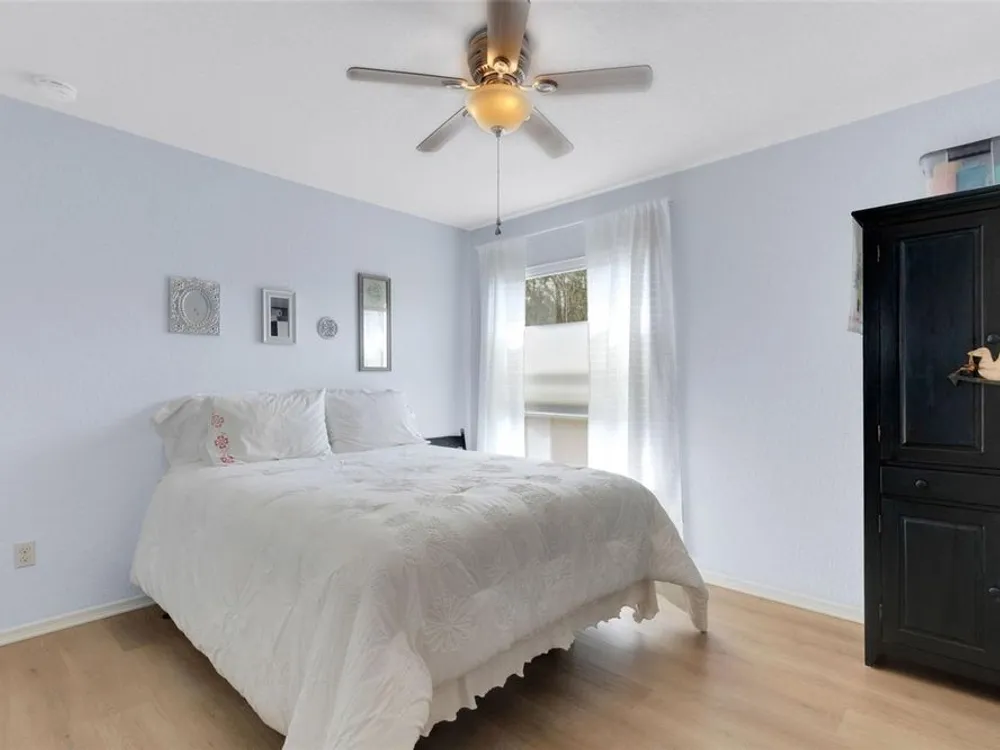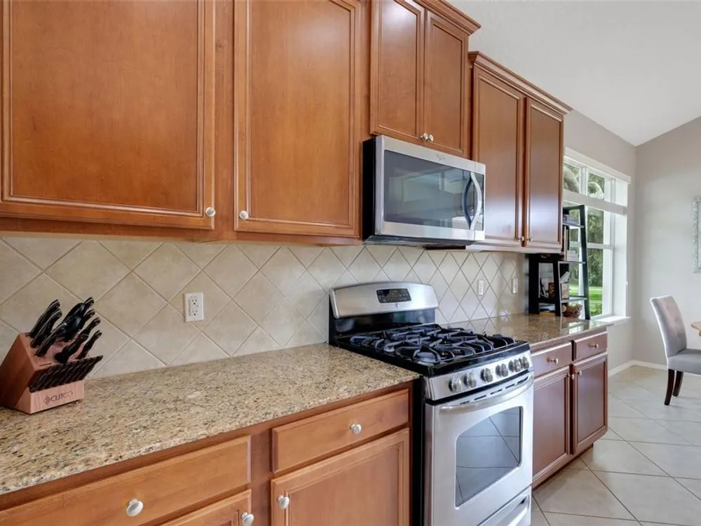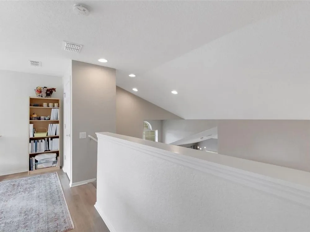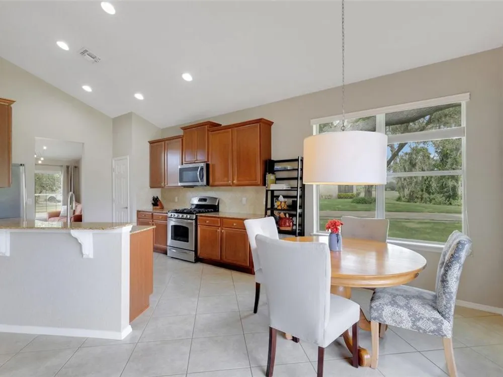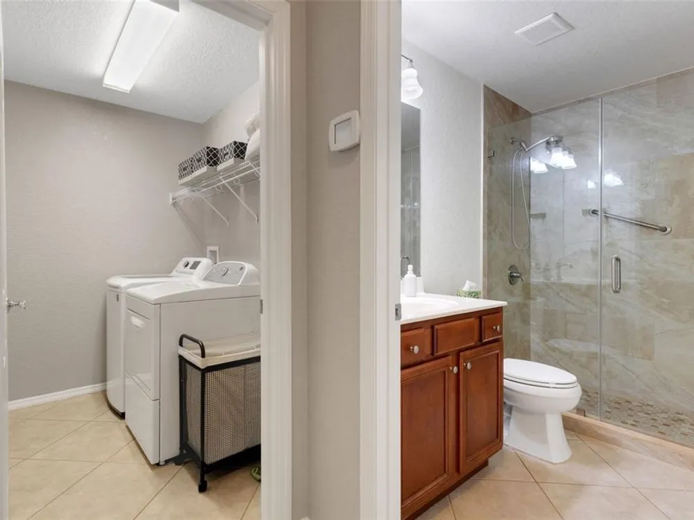 Drive through the gates into the oasis that is Del Webb Orlando and fall in love with this beautifully updated two-story residence. On a prestigious corner lot with a stunning mature live oak tree and overlooking the White Heron golf course, this immaculate 2,086-square-foot home combines timeless style with modern upgrades. The floor plan features a first-floor primary suite with a luxuriously remodeled bath and walk-in closet and a second bedroom/den with an adjoining remodeled bath. The primary suite bathroom features two sinks with quartz countertops, a stand-alone modern tub, modern floor-to-ceiling tiles, walk-in shower, linen closet, and private water-closet. The second bathroom features a remodeled floor-to-ceiling tiled shower with glass doors. The upstairs loft houses the third bedroom, bathroom with a tub convenient for children’s baths, and lovely front room full of natural light perfect for a sitting room, art room, or office. Ceiling fans throughout the house provide year-round comfort. You enter the home through the front door with side lights into the airy, open floor plan onto the enclosed lanai with golf course view. The eat-in kitchen features stainless steel appliances, a recently purchased refrigerator with French doors and two freezer drawers, gas stove, granite countertops, wood cabinets with bottom pull-outs and a tile backsplash. The property’s prime location has tons of space to build the lanai of your dreams. For space launch lovers, sit on your lanai and watch exciting Cape Canaveral launches day or night. Recent improvements to the home include a new roof installed in 2023, two remodeled bathrooms with comfort height toilets, fresh interior paint, new upstairs flooring, and an upgraded made-in-USA stainless steel Navien tankless hot water heater for maximum efficiency and energy savings installed in 2025. The $425 semi-annual HOA fee provides 24x7 staffed security gate and master association-owned private road maintenance. Adjacent to recently renovated 18-hole White Heron Golf Club. The $328 monthly Del Webb HOA fee includes lawn maintenance and exclusive access to resident-owned 30,000+ SF Montecito clubhouse and amenities. DEL WEBB ORLANDO is a 55+ community with a tavern, indoor walking track, fitness center, indoor and outdoor pools and spas with locker rooms and showers, billiards, ping pong, craft room, and a ballroom for special events. Outdoor activities include pickleball, tennis, bocce, basketball, shuffleboard, community gardening center, an outdoor amphitheater, large brick fire pit and large screened-in gazebo over the water. Miles of biking and walking trails within Ridgewood Lakes gated community. Located conveniently to shopping at Posner Park (4 miles), Disney World, Universal Studios, Orlando & Central FL entertainment nearby. Easy access to I-4, medical facilities, airports & Sunrail Station. Advent Health hospital is 3 miles away.