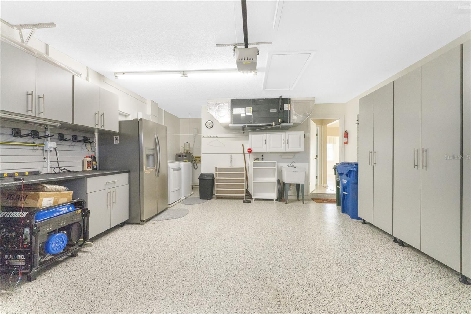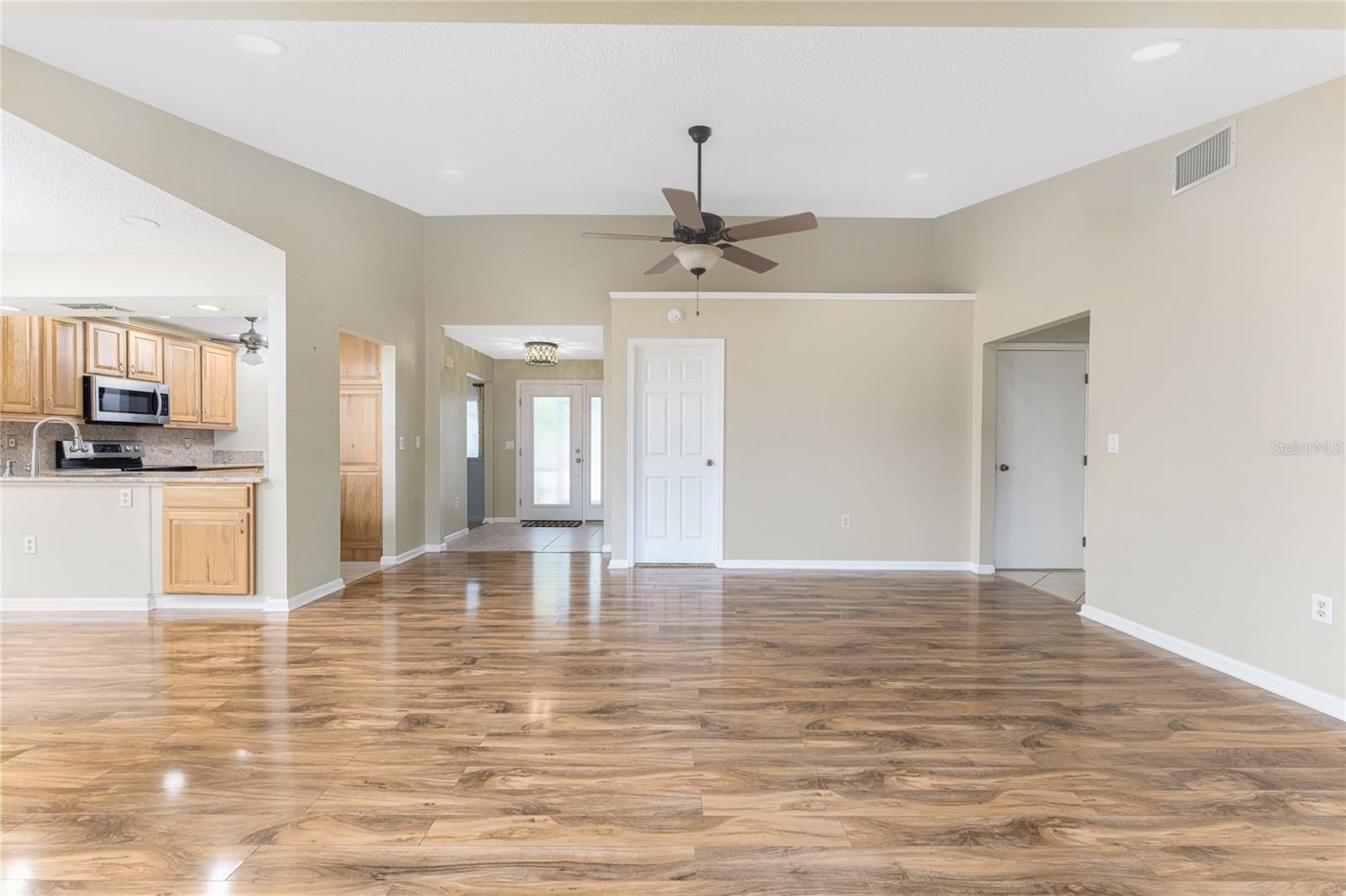 Make an appointment today to see this COMPLETELY UPDATED home in the ever popular "over 55" community of Park Forest! This beautiful villa is situated on a corner lot, surrounded by lush tropical landscaping. Impact-resistant windows and doors will keep you feeling safe in any kind of weather! The screened entry welcomes you into the wonderfully open floor plan, with a spacious main living area and adjacent area that can either be incorporated into the main area or used as a separate TV room. The laminate flooring makes for easy maintenance and the vaulted ceiling with ceiling fan create a light and bright atmosphere. The kitchen will be a chef's dream, and is large enough for two people to work on a meal together. With wood (i think maple) cabinetry, soft close doors/drawers w/ lazy susan and granite countertops and granite backsplash, you will actually like to cook! Updated Stainless appliances include: French door refrigerator, smooth top stove, dishwasher (all Samsung) and Bosch dishwasher. Recessed lighting and tiled flooring add the finishing touches! The adjacent dining area has plenty of room for a nicely sized dining table, and has sliding glass doors opening onto the lanai, making this a perfect spot for entertaining dinner guests! Just off the kitchen in the front of the home, you'll find the den, complete with custom built-in cabinetry, which can easily be converted into a more formal dining area, or a great home office, with all of it's built in storage space with its ample drawers and glass front cabinets. The sizeable Primary bedroom has newer carpeted flooring (great for those cool mornings!), ceiling fan, and a sizable walk-in closet with custom built-ins. The Primary bath features an updated dual vanity with granite countertops, additional built in storage closet, and a beautifully tiled walk-in shower with a frameless glass shower door. The Guest Bedroom has carpeted flooring, a ceiling fan and built ins in the wall closet. Guest bath has a tub/shower combo, and an updated wood vanity and granite countertop. The screened lanai is the perfect place to unwind and relax with a good book or enjoy your morning coffee. the two car garage houses the washer/dryer, an extra refrigerator, two electric panels with a direct hookup for a generator, a 2022 water heater, an epoxy floor, and more GREAT STORAGE CABINETS THAN YOU CAN IMAGINE! You'll also be thrilled to know that this home is packed with upgrades, including a newer roof, repainted exterior, impact garage door with remote-controlled roll-down screen, whole house filtration system, & gutters. Join in on the many social activities offered by the active community, including the community pool, shuffleboard courts, tennis courts, bocce ball, and much more. Your fees cover exterior paint and roof, lawn care, and the irrigation system, making this home truly move-in ready. Don't wait - schedule a showing today and move in before the snow flies up North!