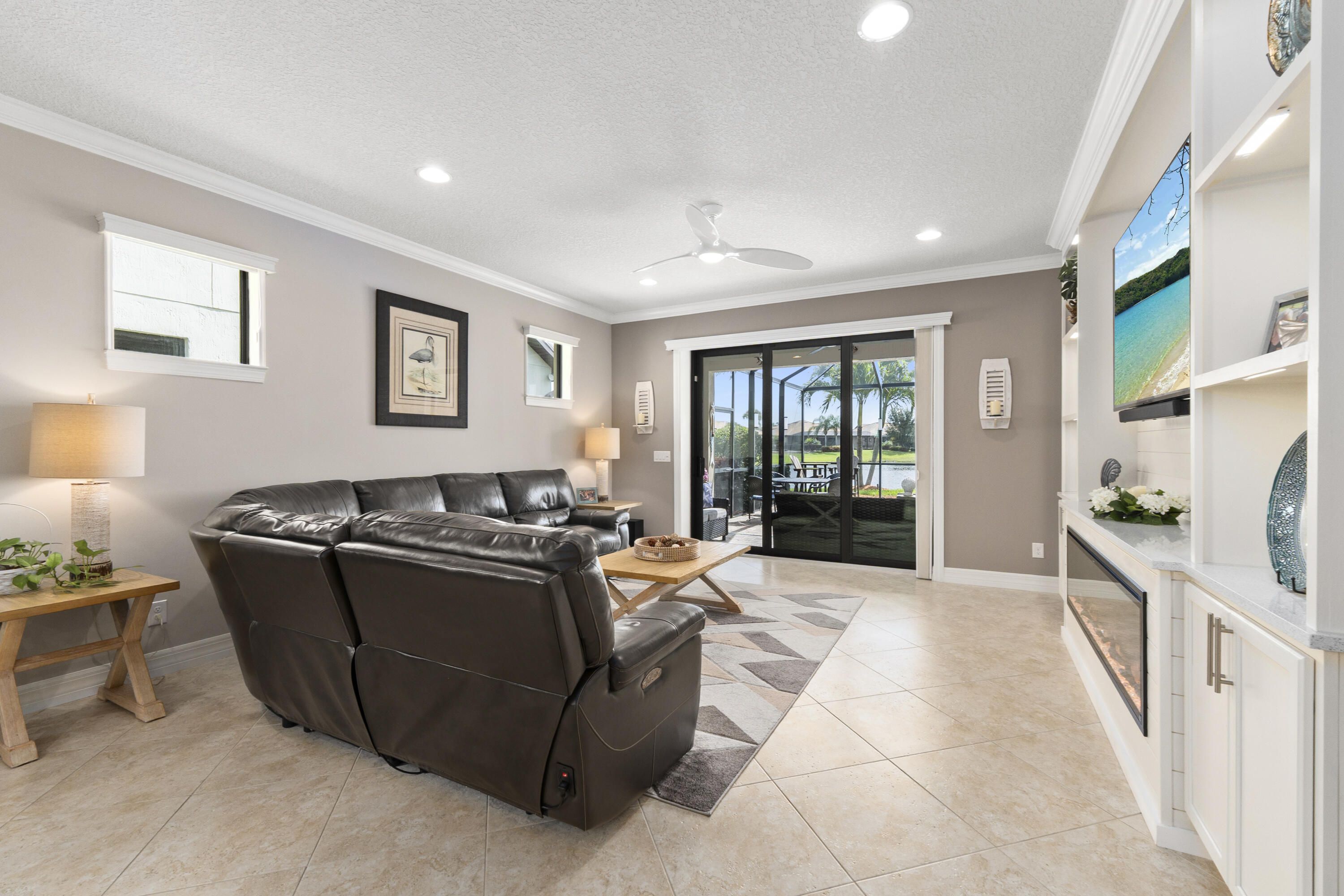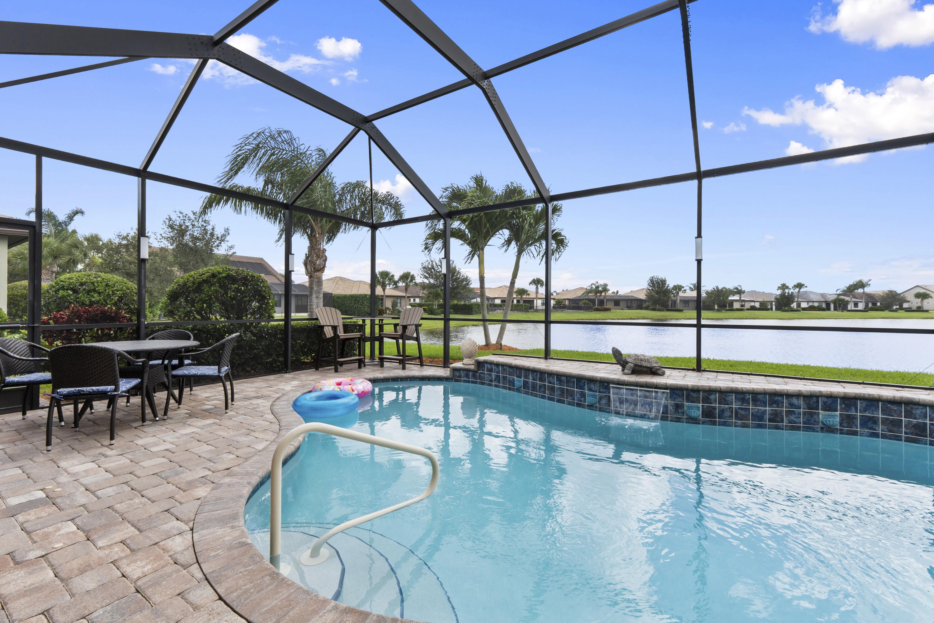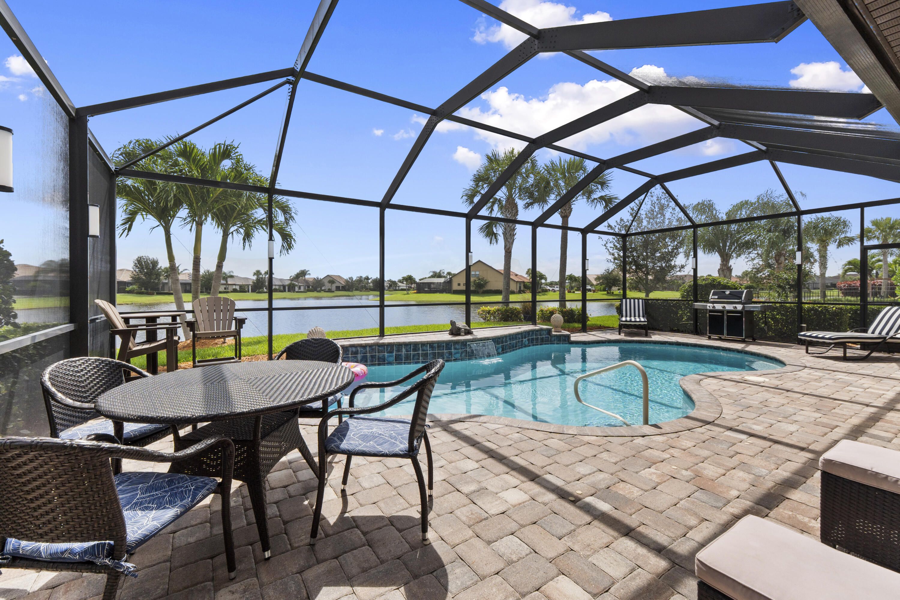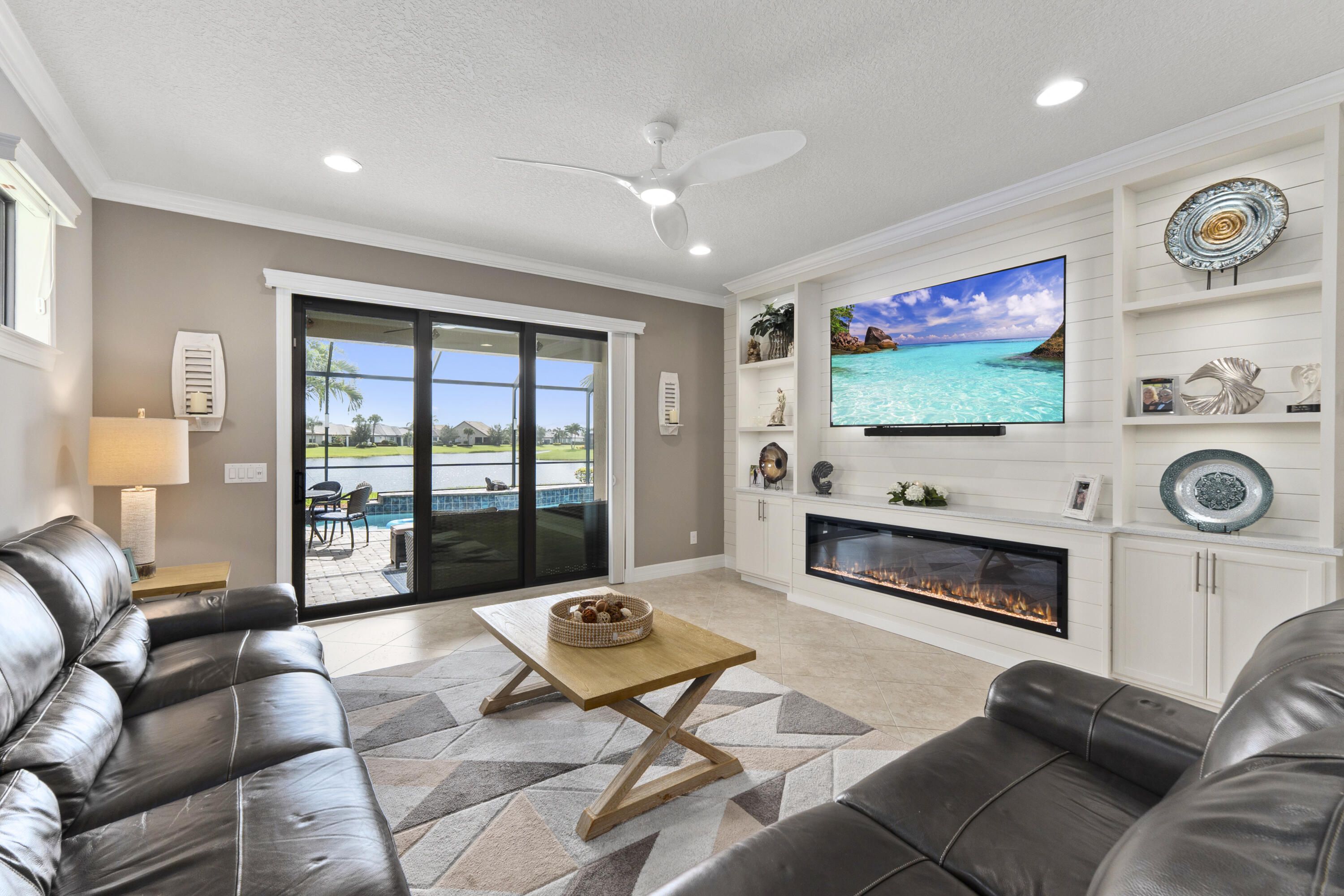 CBS 3Bed + Office 2Bath 2 Car Gar with long lake views. Screened & Gas Heated swimming pool with paver patio. Island Kitchen features 36'' Espresso cabinets, 3CM granite counters, SS appliances, pantry, tile backsplash, gas range, bar area w/beverage cooler, crown molding, pendant lights & title floors. Impact Windows, high ceilings, shiplap accent & built in cabinetry. Built in entertainment center with LED lighting & 60'' TS LED digital fireplace. Master suite features built-in custom closet cabinetry; Main bath has dual sinks & large tiled shower. Patio features retractable electric screen. Clubhouse amenities include Heated resort style pool, Hot Tub, Gym, tennis, playground, kitchen, indoor & outdoor bar, fire pit, BBQ, bocce & dog park. https://youtu.be/Flmo2xovz8g?si=PMVgcJ9RlWfHXgl