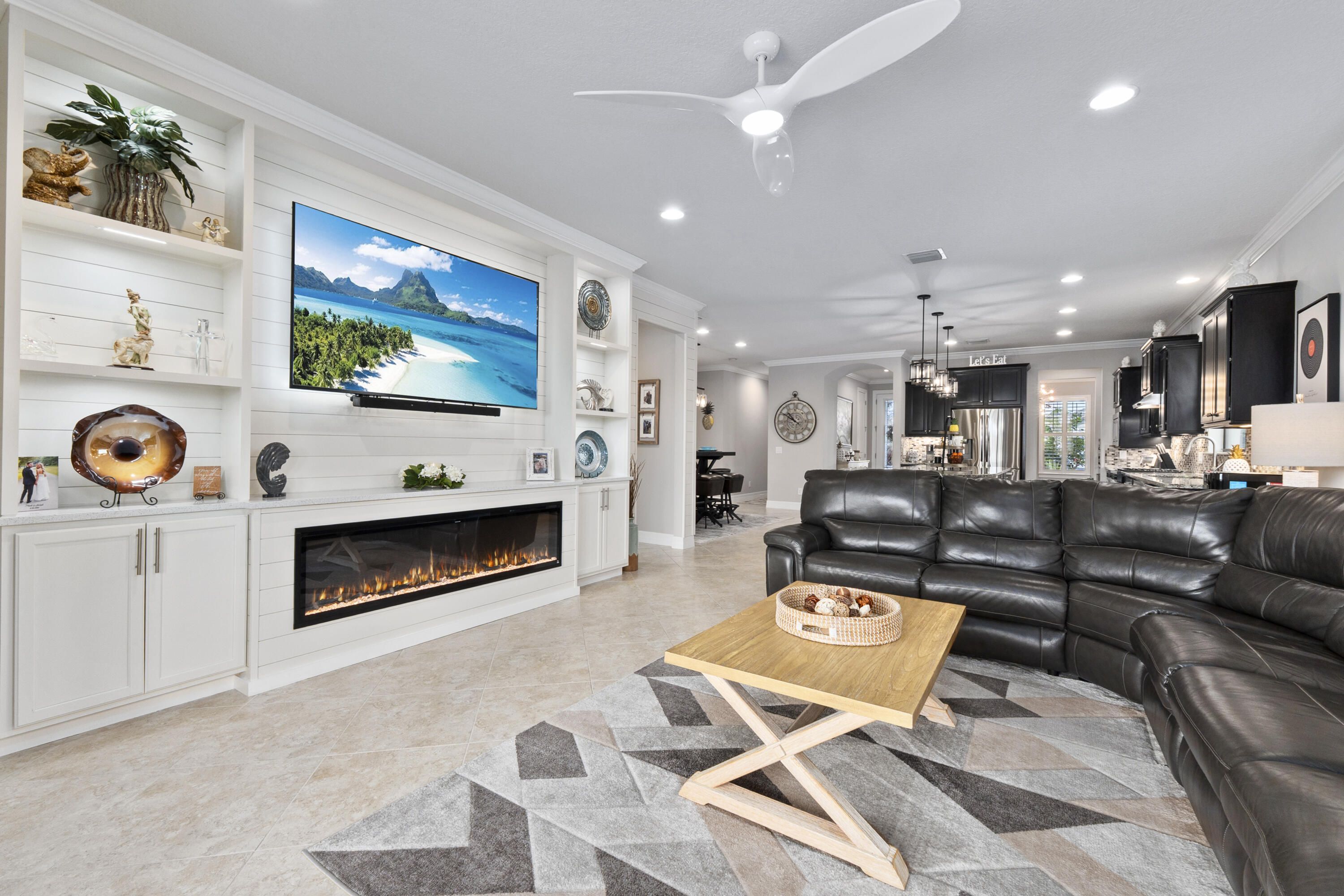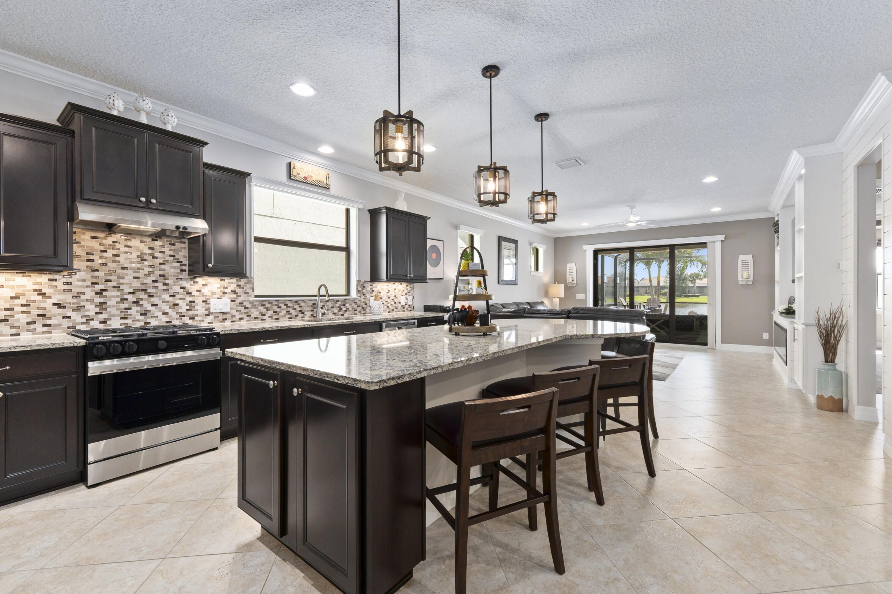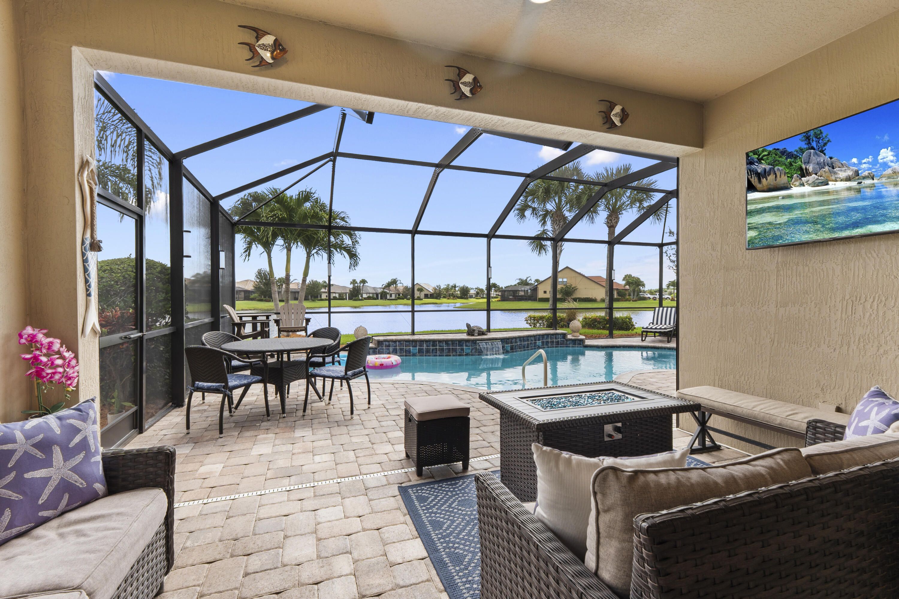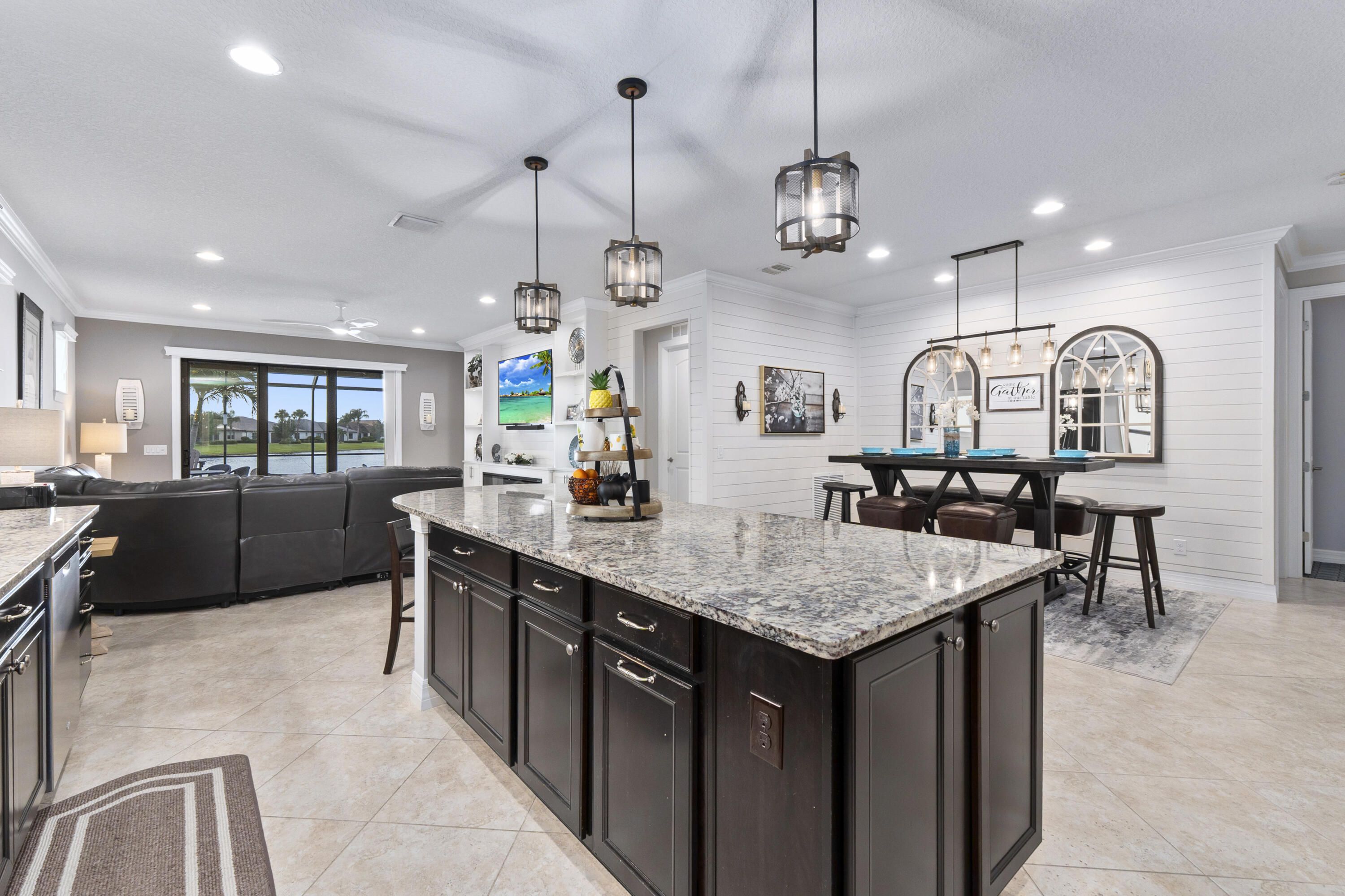 CBS 3Bed + Office 2Bath 2 Car Gar with long lake views. Screened & Gas Heated swimming pool with paver patio. Island Kitchen features 36'' Espresso cabinets, 3CM granite counters, SS appliances, pantry, tile backsplash, gas range, bar area w/beverage cooler, crown molding, pendant lights & title floors. Impact Windows, high ceilings, shiplap accent & built in cabinetry. Built in entertainment center with LED lighting & 60'' TS LED digital fireplace. Master suite features built-in custom closet cabinetry; Main bath has dual sinks & large tiled shower. Patio features retractable electric screen. Clubhouse amenities include Heated resort style pool, Hot Tub, Gym, tennis, playground, kitchen, indoor & outdoor bar, fire pit, BBQ, bocce & dog park. https://youtu.be/Flmo2xovz8g?si=PMVgcJ9RlWfHXgl