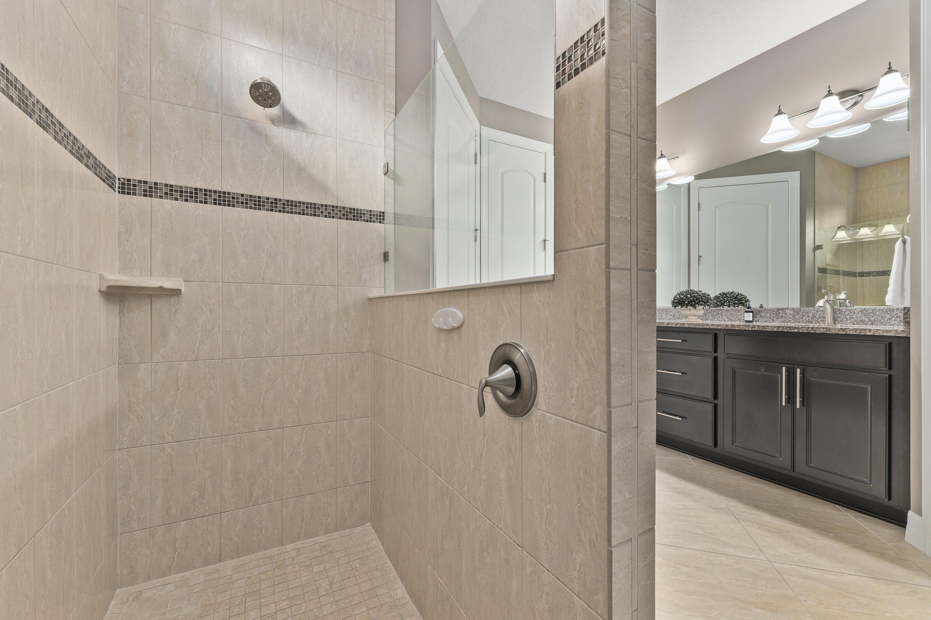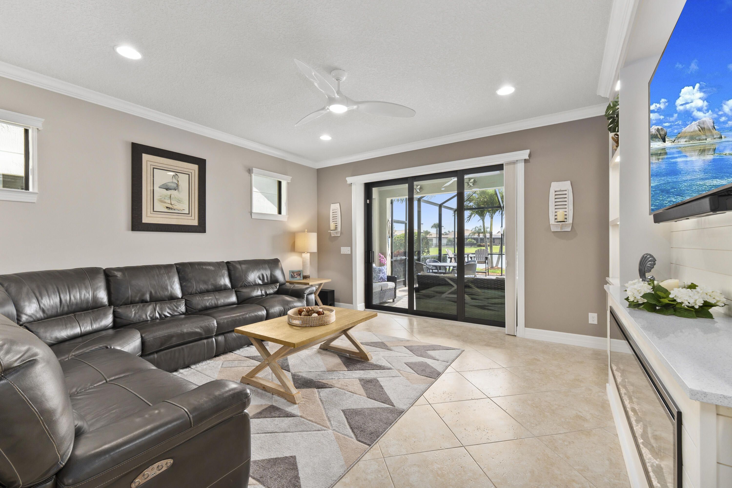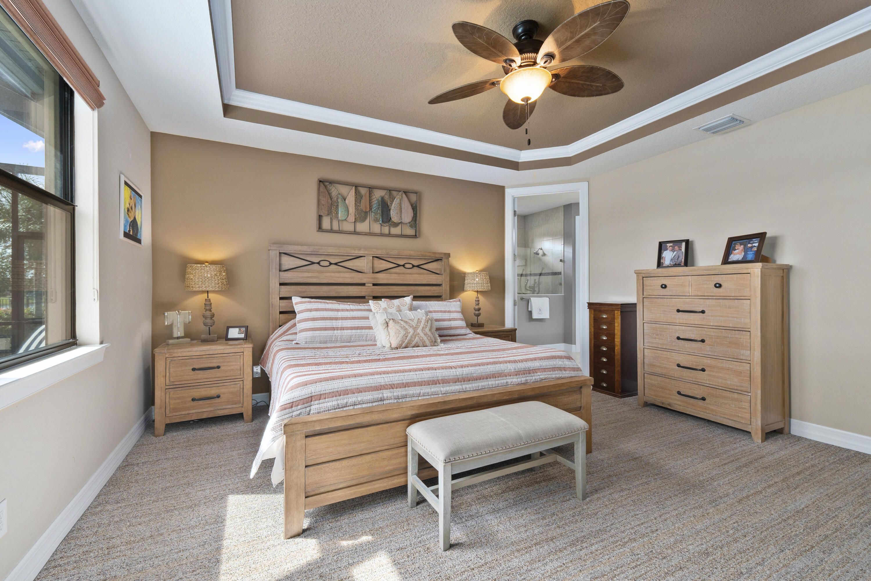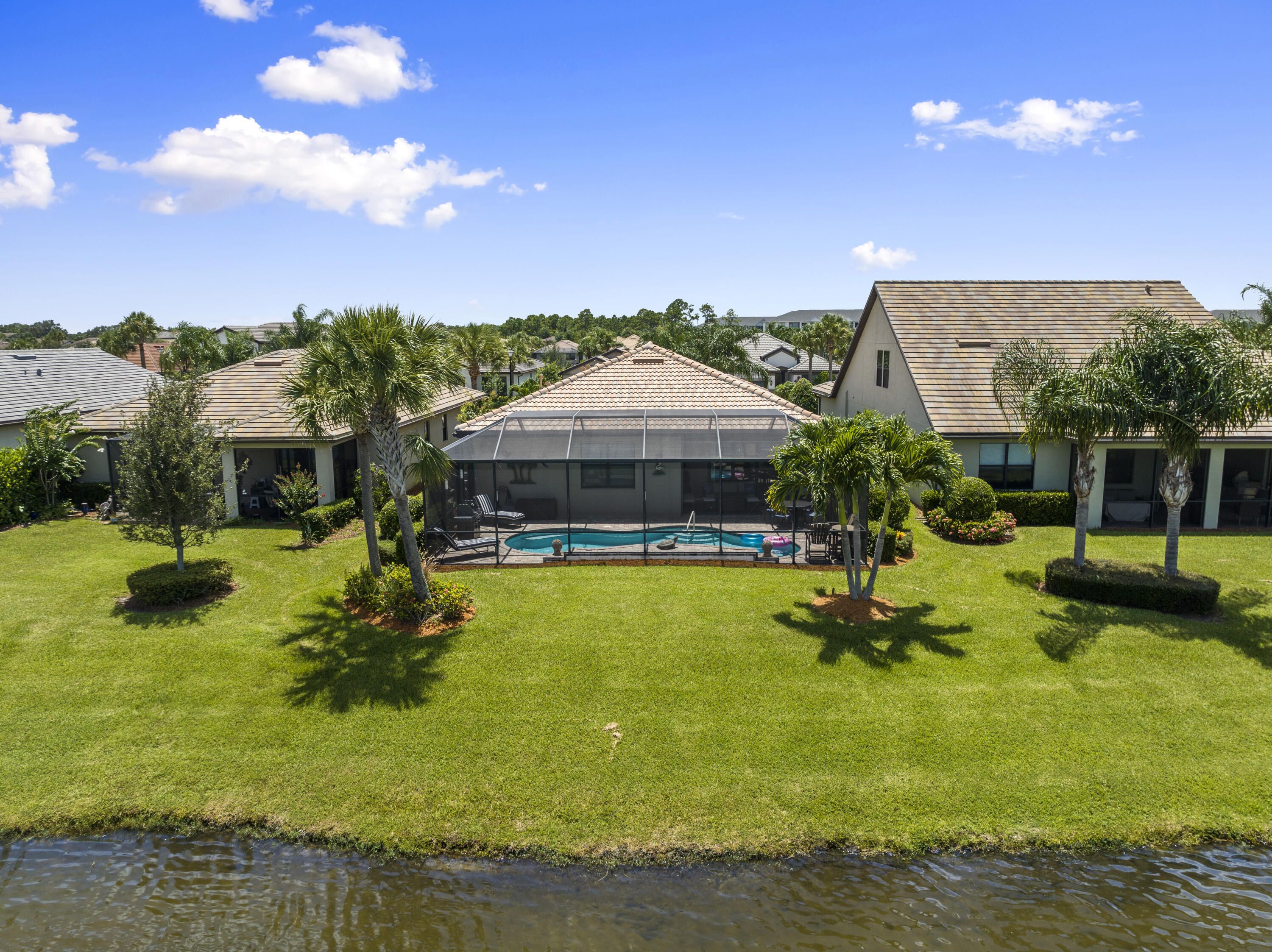 CBS 3Bed + Office 2Bath 2 Car Gar with long lake views. Screened & Gas Heated swimming pool with paver patio. Island Kitchen features 36'' Espresso cabinets, 3CM granite counters, SS appliances, pantry, tile backsplash, gas range, bar area w/beverage cooler, crown molding, pendant lights & title floors. Impact Windows, high ceilings, shiplap accent & built in cabinetry. Built in entertainment center with LED lighting & 60'' TS LED digital fireplace. Master suite features built-in custom closet cabinetry; Main bath has dual sinks & large tiled shower. Patio features retractable electric screen. Clubhouse amenities include Heated resort style pool, Hot Tub, Gym, tennis, playground, kitchen, indoor & outdoor bar, fire pit, BBQ, bocce & dog park. https://youtu.be/Flmo2xovz8g?si=PMVgcJ9RlWfHXgl