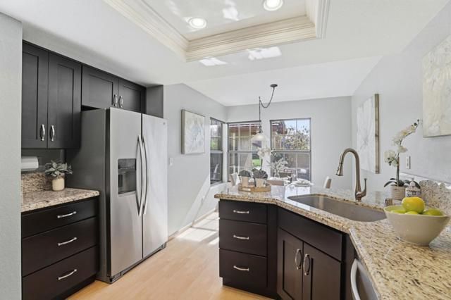Tranquil 3-fountain views and primo cul-de-sac privacy, now offered at an exceptional value. Experience this unique two-story, 2.5-bath villa in the sought-after 55+ Villages Golf & Country Club, featuring a flexible floor plan with dual primary suites and exceptional pond views. Perfectly oriented to capture peaceful vistas of the three-fountain pond, the Foothills, and breathtaking sunsets from the back patio, its quiet cul-de-sac location and gated front courtyard ensure maximum privacy. Inside, enjoy seamless main-level living with a vaulted-ceiling living room, updated kitchen, primary suite, office and guest bathroom. The upper-level suite offers a private, refined sanctuary that provides an elevated sense of separation and comfort. Residents enjoy 24-hour security, fitness center, pickleball, tennis, bocce, 18-hole golf, four pools, hot tubs, private hiking trails, and over 60 clubs. This unique villa offers the ultimate blend of tranquility, privacy, and extraordinary water views for optimal, resort-style living