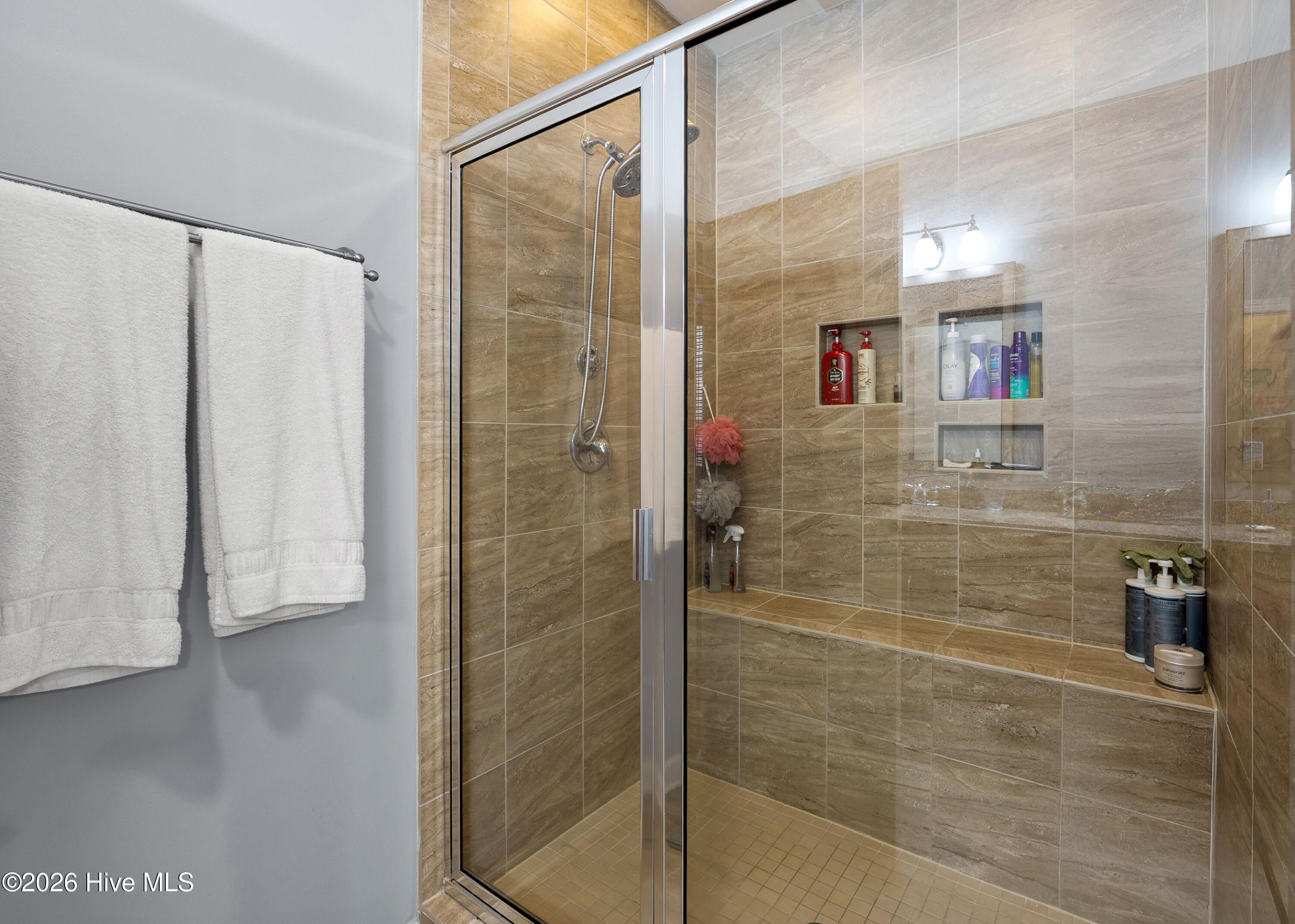 - Master Downstairs, Walk-In Closet(s), Tray Ceiling(s), High Ceilings, Entrance Foyer, Mud Room, Kitchen Island, Ceiling Fan(s), Pantry, Walk-In Shower, Blinds