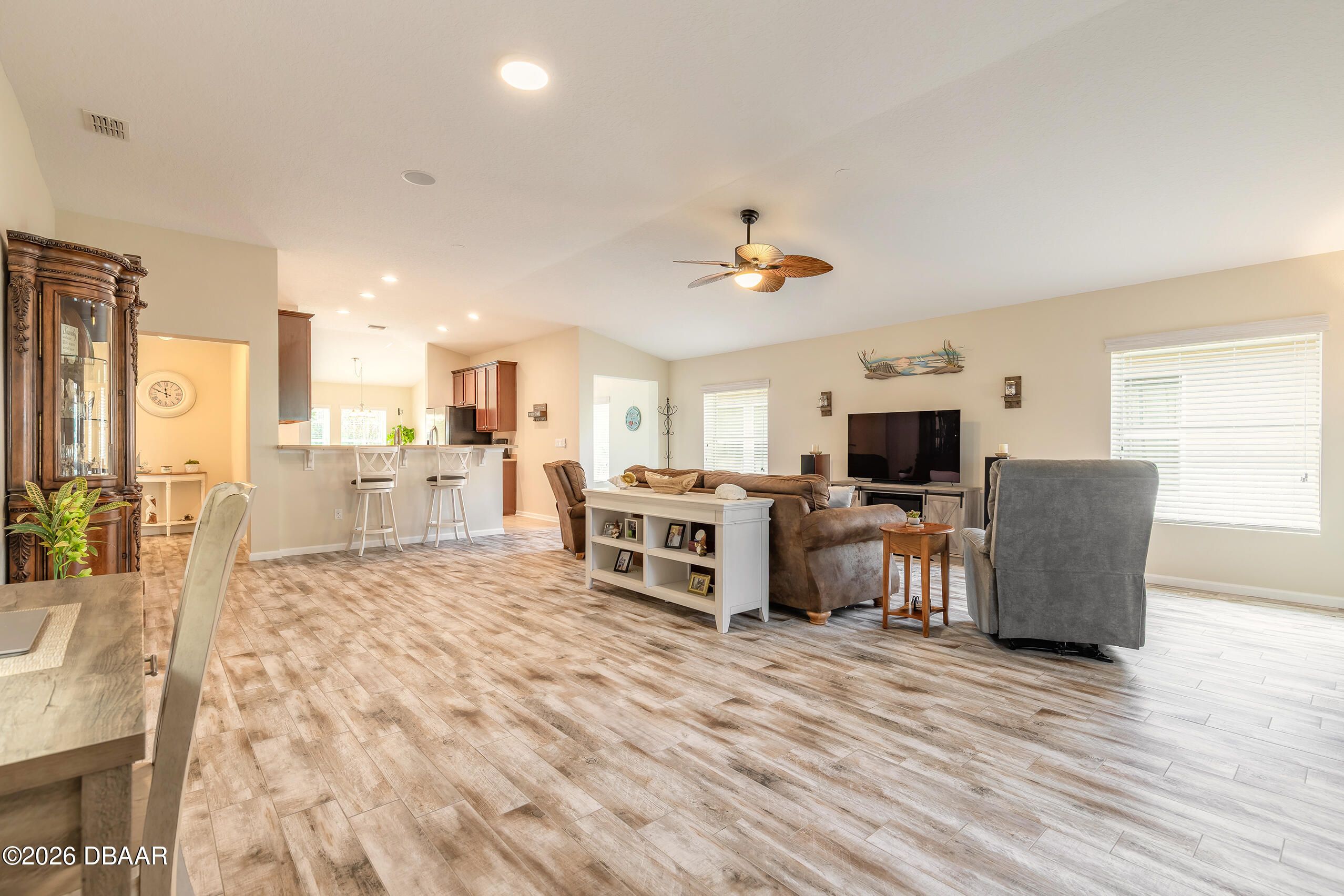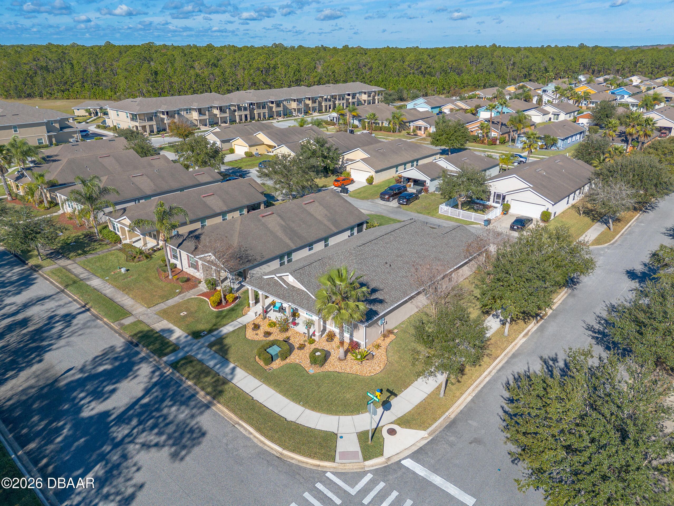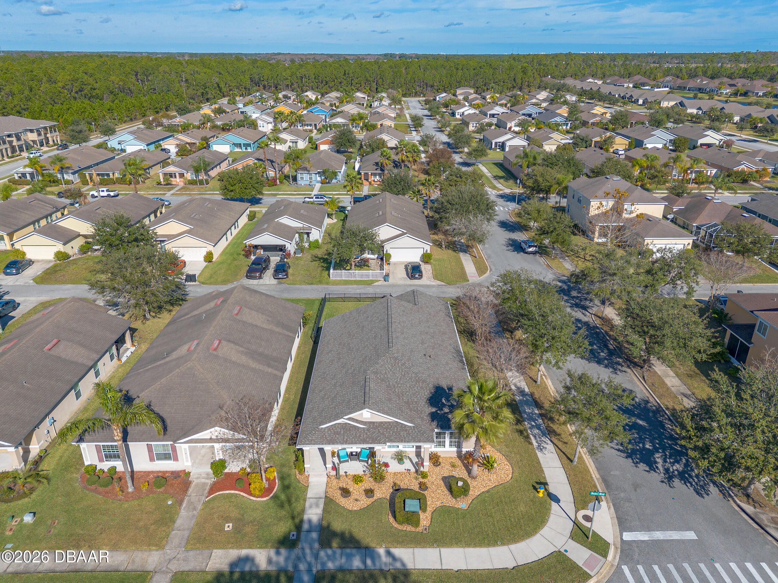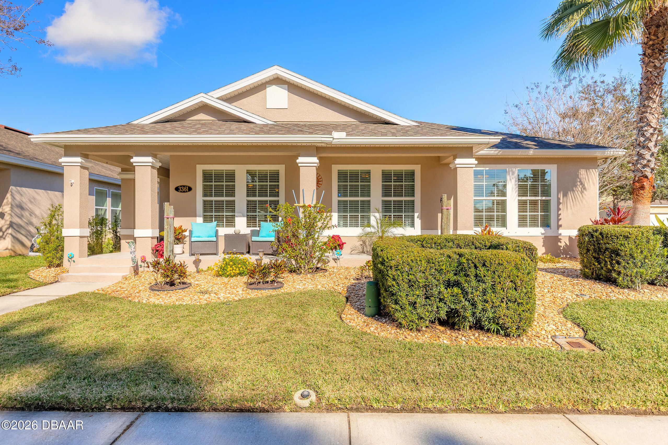 Welcome home to this beautifully maintained three-bedroom, two-bath residence with a two-car rear-entry garage, ideally situated on a premium corner lot overlooking a peaceful preservation area with no homes in front. Enjoy relaxing mornings on the charming front porch, taking in serene natural views. Inside, the home offers a bright, open feel with vaulted ceilings in the living area and carpet only in the closets, creating a clean, modern aesthetic. The primary suite features a tray ceiling, a large walk-in shower, and double vanity sinks, providing both comfort and functionality. Freshly painted inside and out, this move-in-ready home also includes a new roof (Installed March 2025), Maytag water softener system put in 2022, new water heater, and gutters for added peace of mind. Outdoor living is enhanced by a fenced yard and screened-in lanai, perfect for entertaining or relaxing in privacy. This thoughtfully designed home is truly ready for new owners. As part of Venetian Bay, you'll enjoy access to pickleball and tennis courts, a basketball court, miles of scenic trails, and a vibrant town center with a market, restaurant, spa, coffee shop, and fitness center. Golf enthusiasts will appreciate the 18-hole championship golf course and clubhouse. All just minutes from Canal Street Historic District, Flagler Avenue, and the beautiful beaches of New Smyrna Beach. All information is intended to be accurate, however not guaranteed.