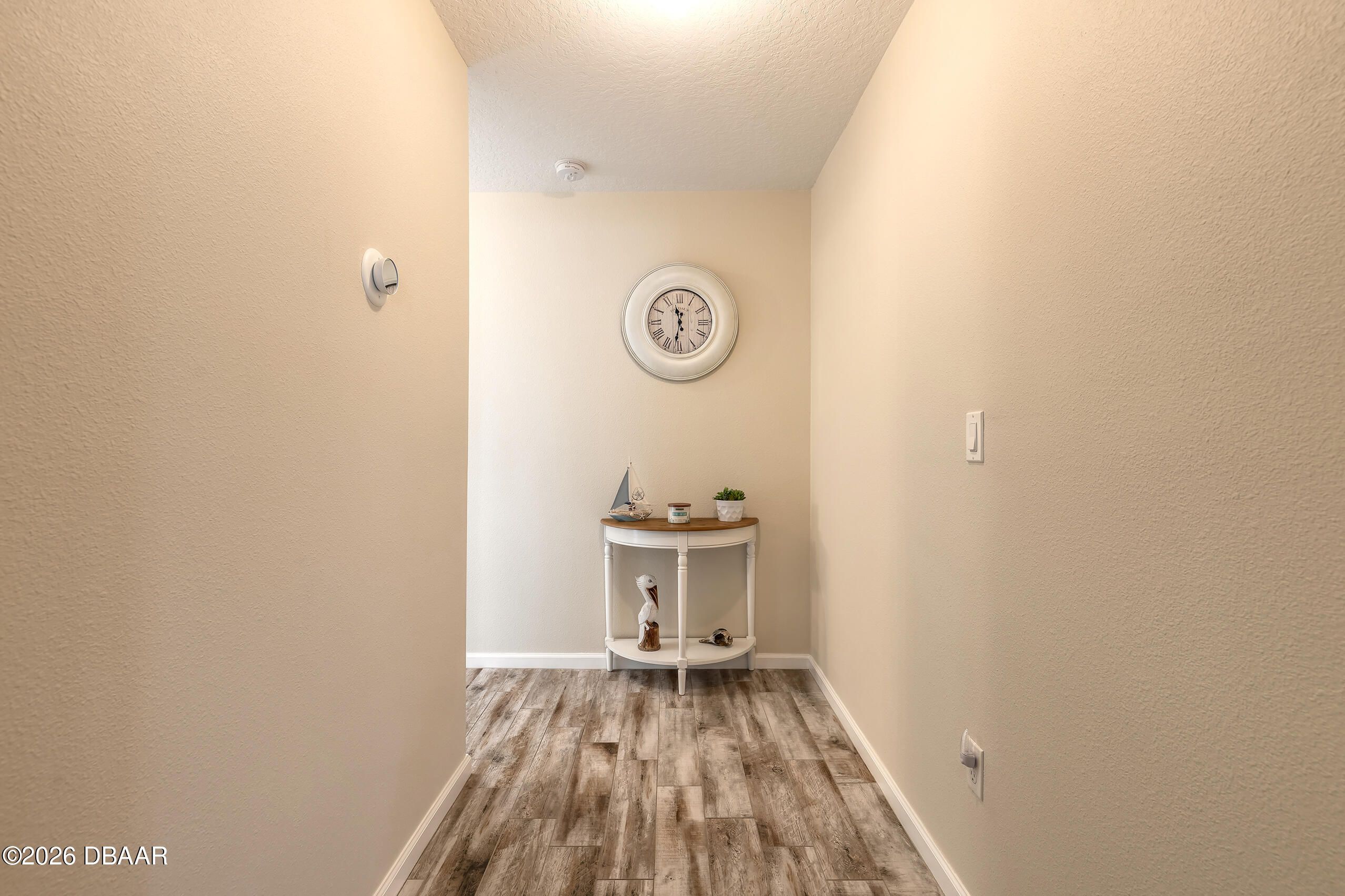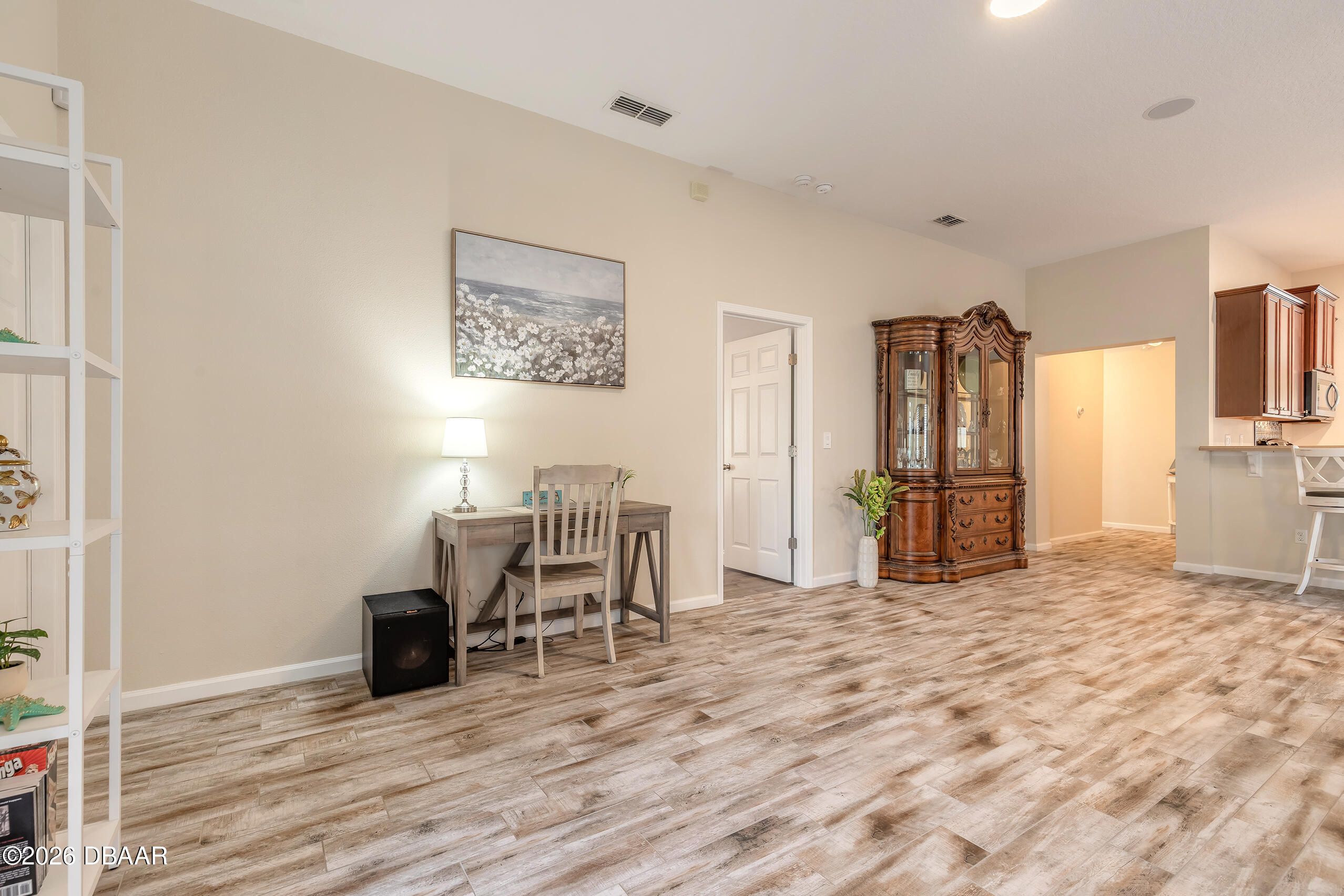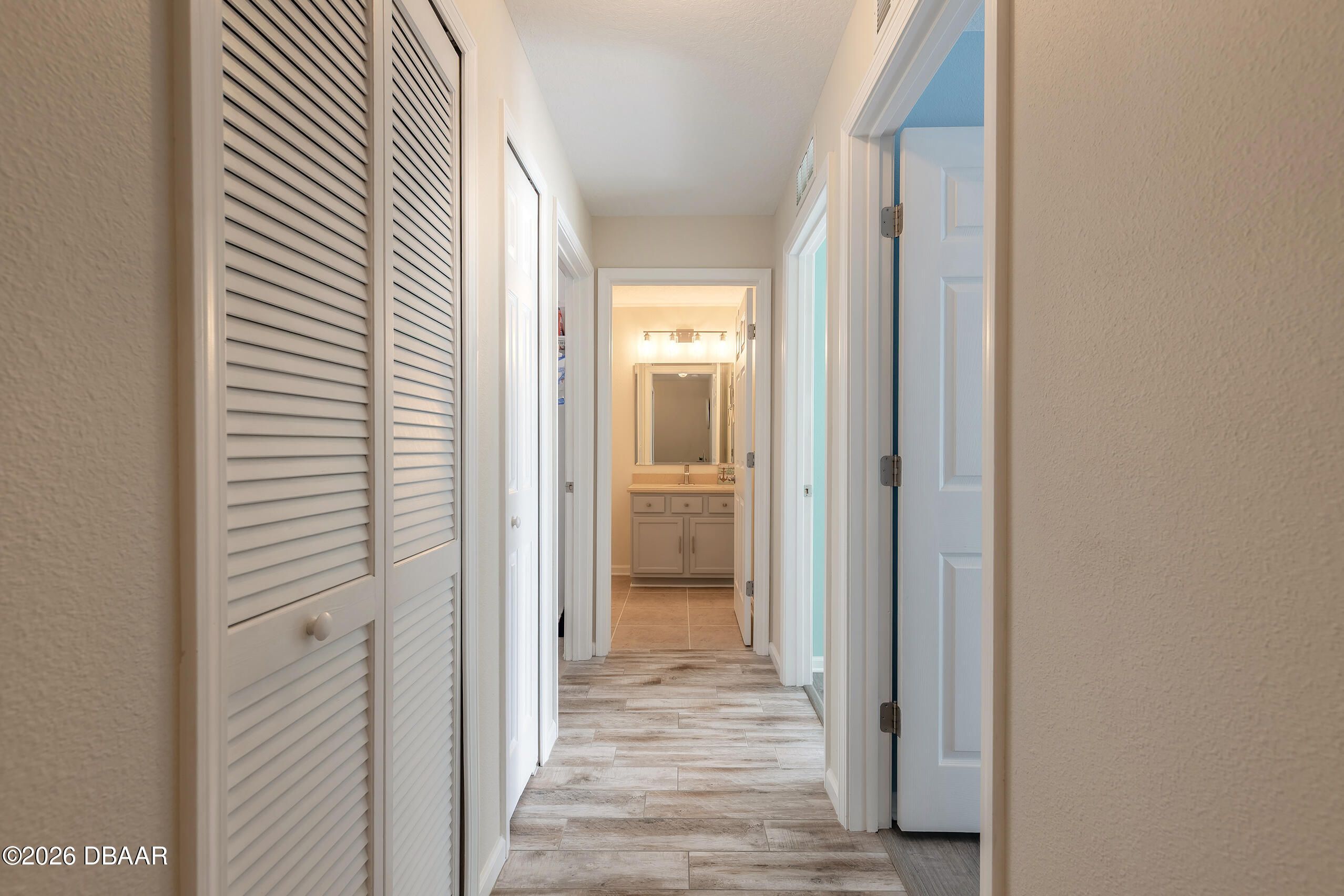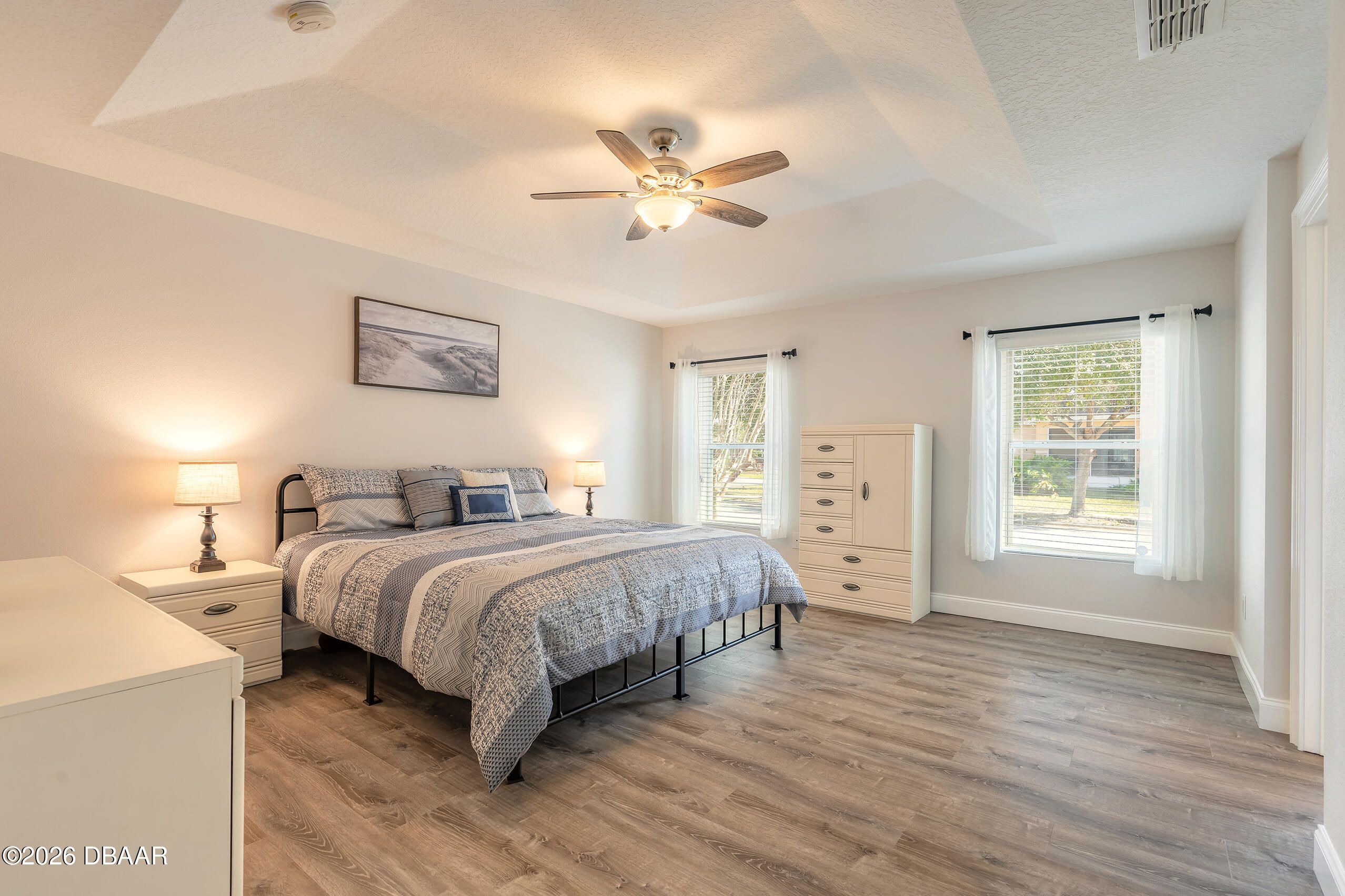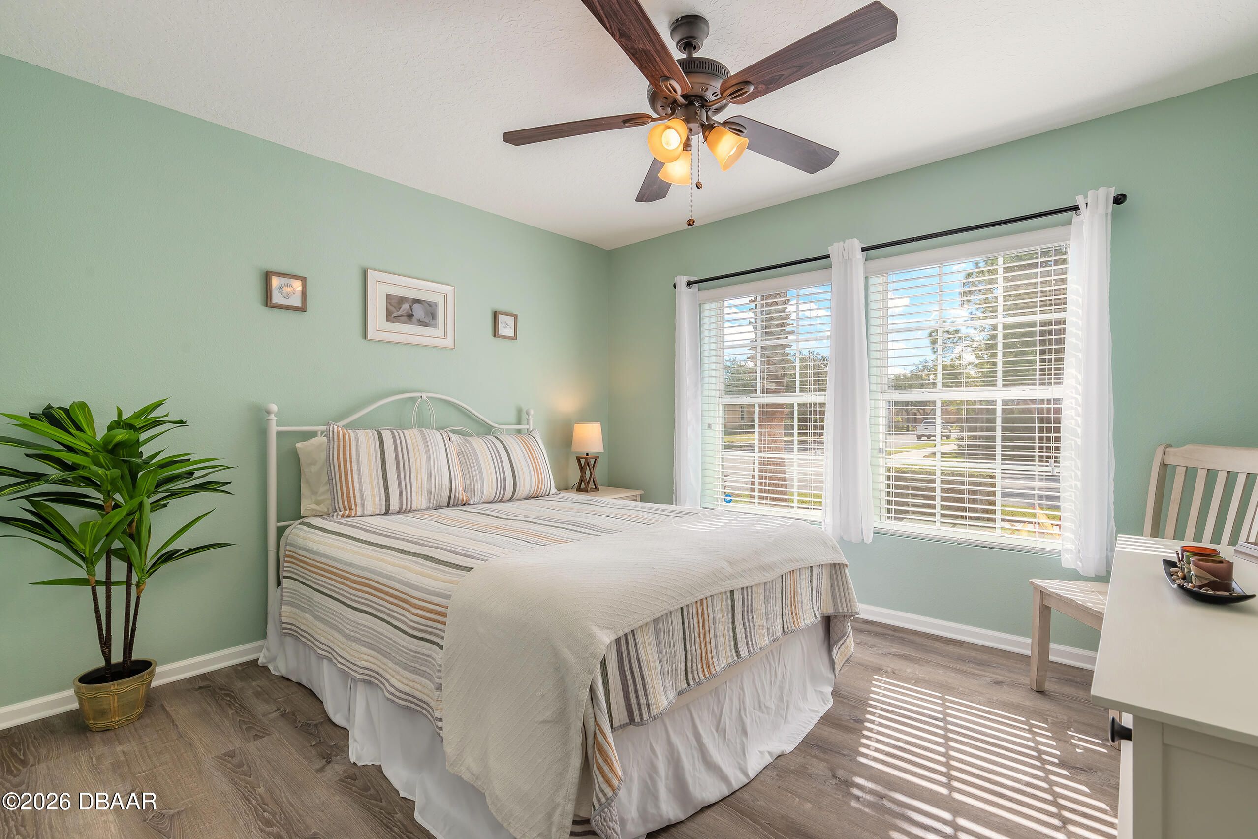 Welcome home to this beautifully maintained three-bedroom, two-bath residence with a two-car rear-entry garage, ideally situated on a premium corner lot overlooking a peaceful preservation area with no homes in front. Enjoy relaxing mornings on the charming front porch, taking in serene natural views. Inside, the home offers a bright, open feel with vaulted ceilings in the living area and carpet only in the closets, creating a clean, modern aesthetic. The primary suite features a tray ceiling, a large walk-in shower, and double vanity sinks, providing both comfort and functionality. Freshly painted inside and out, this move-in-ready home also includes a new roof (Installed March 2025), Maytag water softener system put in 2022, new water heater, and gutters for added peace of mind. Outdoor living is enhanced by a fenced yard and screened-in lanai, perfect for entertaining or relaxing in privacy. This thoughtfully designed home is truly ready for new owners. As part of Venetian Bay, you'll enjoy access to pickleball and tennis courts, a basketball court, miles of scenic trails, and a vibrant town center with a market, restaurant, spa, coffee shop, and fitness center. Golf enthusiasts will appreciate the 18-hole championship golf course and clubhouse. All just minutes from Canal Street Historic District, Flagler Avenue, and the beautiful beaches of New Smyrna Beach. All information is intended to be accurate, however not guaranteed.