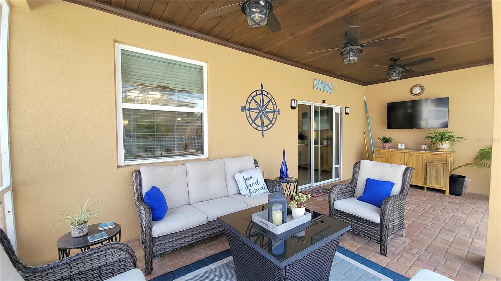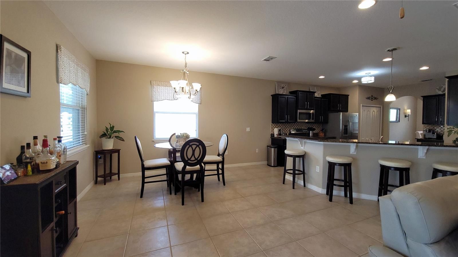 HOME CAN BE SOLD FULLY FURNISHED. TAKE ADVANTAGE OF A VA ASSUMABLE MORTGAGE AT AN UNHEARD RATE OF 2.25%. Welcome to coastal paradise in New Smyrna Beach—a gorgeous, fully upgraded "Beachy" retreat designed for relaxed living and unforgettable entertaining. Just minutes from the sun-soaked shoreline, this stunning home boasts an inviting open floor plan that flows effortlessly into a sprawling screened-in heated pool and spacious deck, creating the perfect backdrop for year-round enjoyment. Step into the gourmet kitchen where espresso-toned real wood 36" cabinets, gleaming granite countertops, and a charming coffee and mixed drink station blend form and function with elegant style. Freshly painted interiors and crisp baseboards set a bright tone throughout, while the rear porch showcases a hand-stained wood ceiling adorned with three remote-controlled fans and lights—pure coastal craftsmanship. The dining room exudes “Coastal Elegance,” anchored by a breathtaking Capiz shell chandelier that sparkles above a table fit for six. Retreat to the serene master suite painted in a tranquil ocean hue, complete with dual closets and windows framing views of the glistening pool. The luxurious master bath features a jetting tub, double vanities, and a spacious walk-in shower designed for indulgence. Tech-savvy touches like Alexa-enabled smart lighting in the living room make daily life both seamless and modern. From the refined details to the resort-style amenities, this home isn’t just a place to live—it’s a lifestyle drenched in comfort, convenience, and coastal charm.