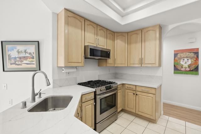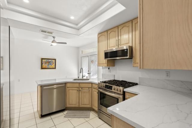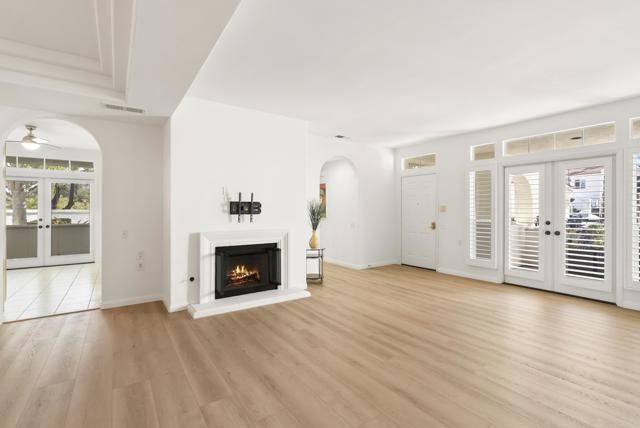 Located in the gated 55+ community of Villa Trieste in Oceanside, this ground-level condo offers easy, single-level living with gorgeous French patio doors in both the kitchen nook and living room, opening to private patios and allowing you to fully enjoy the beautiful San Diego lifestyle. The unit includes one detached garage plus one uncovered parking space. This home is truly move-in ready and thoughtfully updated for comfort, safety, and peace of mind with over 90k in recent updates. The seller focused on major systems first, making this an ideal low-maintenance home for the next owner. Major upgrades include a full plumbing repipe for hot and cold water with transferable warranty, a new premium SEI HVAC system with transferable warranty, a new Rheem water heater, and the HOA roof special assessment paid in full. Inside, the home has been refreshed from top to bottom. The entire interior has been newly painted and updated with new luxury vinyl plank flooring in the living room and hallway, along with baseboards for a clean, modern look. Ceramic tile upgrades were added to the exterior entry, both patios, bathrooms, and laundry room. The primary bathroom has been remodeled with new tile and finishes, while the second bathroom received updated vanity work and re-grouting. Additional improvements include new lighting, new door and cabinet hardware, custom high-end plantation shutters, new window coverings, and a TV mount with electrical connection. The kitchen has been upgraded with new countertops, sink, faucet, disposal, and a remodeled ceiling with recessed lighting. Appliances include a Bosch dishwasher, Frigidaire stove and oven, Whirlpool microwave with built-in exhaust, and a Samsung 36-inch French-door refrigerator with beverage center, many with extended warranties. Practical upgrades continue throughout the home with new gas line connections for the stove and dryer, a quick-disconnect exterior BBQ gas line, new washer and dryer, new patio hose bibs, an invisible screen front door, and living room window repairs. Villa Trieste is a well-maintained, gated 55+ community known for its great amenities, friendly neighborhood feel, and convenient Oceanside location close to shopping, dining, and coastal access. This is a great opportunity to own a ground-level condo where the major upgrades have already been completed and outdoor living can be enjoyed year-round.