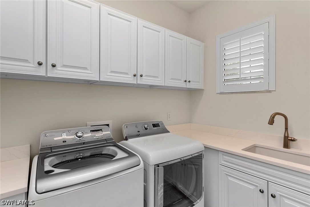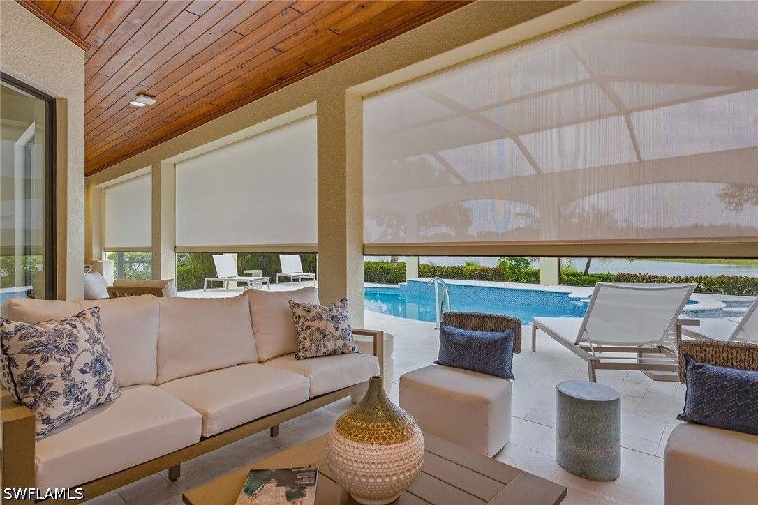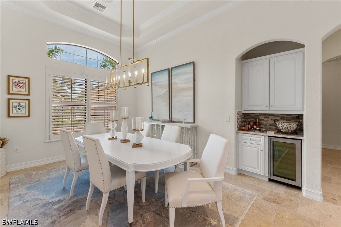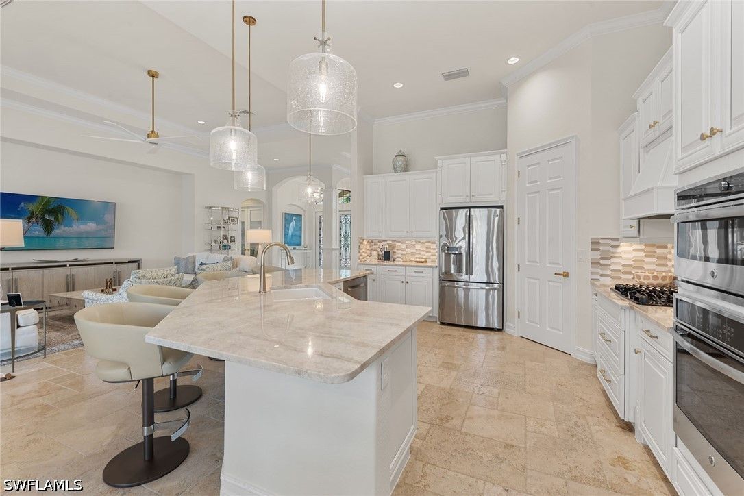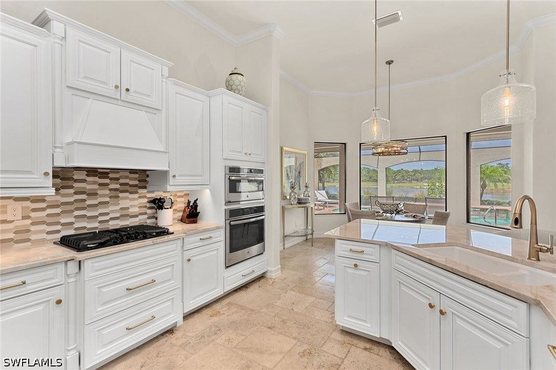 Beautiful renovations! Enjoy sweeping golf course and water views of the spectacular Creek Course from this exquisitely updated residence in the desired Runaway Bay village of Fiddler’s Creek, where a picturesque winding street, long private driveways, and homes gracefully set back from the road create an immediate sense of refined elegance. Showcasing the popular Bougainvillea open floor plan, this beautifully reimagined home offers three bedrooms plus a den, or four bedrooms, three full baths, a three-car garage and an exceptional blend of modern sophistication and effortless comfort. Highlights include extensive recent renovations throughout including new lighting, new fixtures, featuring a stunning kitchen with new Taj Mahal quartzite countertops, stainless appliances, natural gas cooking, a wall oven, pantry and an expansive island, along with impact-resistant glass, plantation shutters, electric storm screens on the lanai, a 32-kilowatt whole-house generator, and two new air-conditioning systems installed in 2023 for optimal comfort and peace of mind. From moment you enter, the home reveals a light-filled, airy ambiance, enhanced by expansive windows and glass doors that frame serene golf and lake views and invite abundant natural light throughout. The open-concept great room flows seamlessly into the kitchen, dining area and lanai, creating an ideal setting for everyday living and elegant entertaining. The thoughtfully modernized interior is defined by refined architectural elements, including crown molding, tray and coffered ceilings, recessed lighting and designer fixtures, all contributing to an elevated aesthetic. The private primary suite serves as a serene retreat with picturesque views, custom walk-in closets, and an en-suite bath featuring dual vanities, a soaking tub and a walk-in shower. Two guest suites are thoughtfully positioned for privacy, each with its en-suite bath, while the versatile den offers flexibility as a home office or additional guest space. Outdoor living is a highlight, featuring an expansive screened lanai with wood ceiling, multiple covered and uncovered seating areas, a gas-heated pool and spa with a new tile and a waterfall feature, a new beautifully refurbished pool deck finished in elegant Diana Royale leathered marble, and a fully equipped outdoor kitchen with a stone accent wall, refrigerator and sink for effortless alfresco dining. Ideally near the front gate, the home also enjoys convenient access to the club and spa and amenities. Your lifestyle is further elevated with miles of scenic, tree-lined sidewalks ideal for recreation, running and cycling, with exceptional amenities including a resort-style pool, the updated Gator Grille for casual dining, Caxambas for fine dining, active tennis and pickleball, fitness with trainers, spa services and a vibrant social calendar, with optional memberships available for the championship golf course, new golf clubhouse, marina and private beach club.