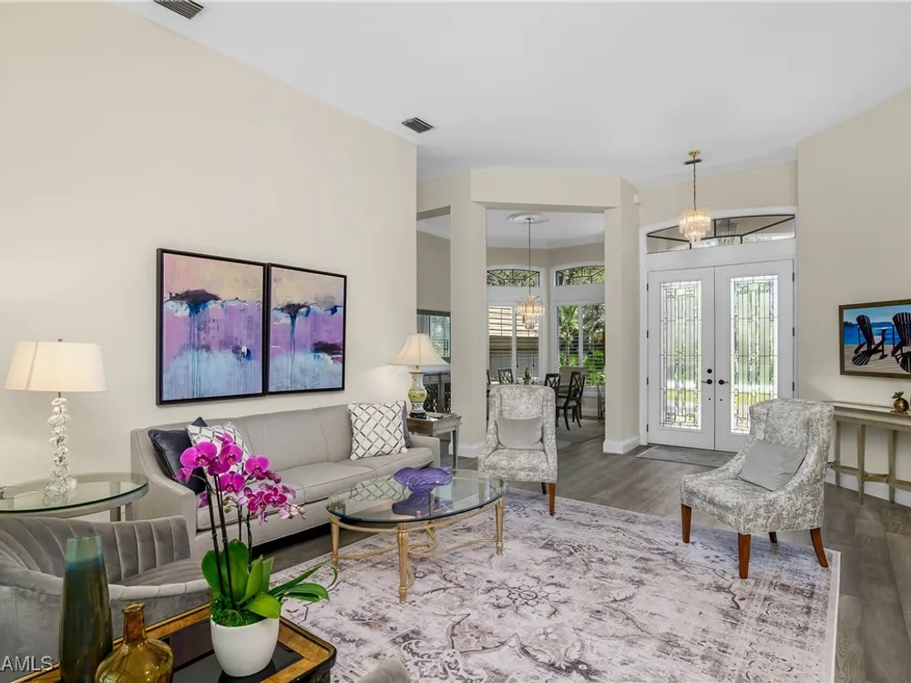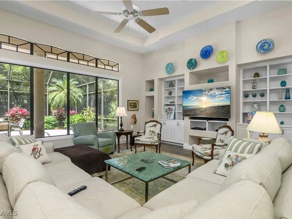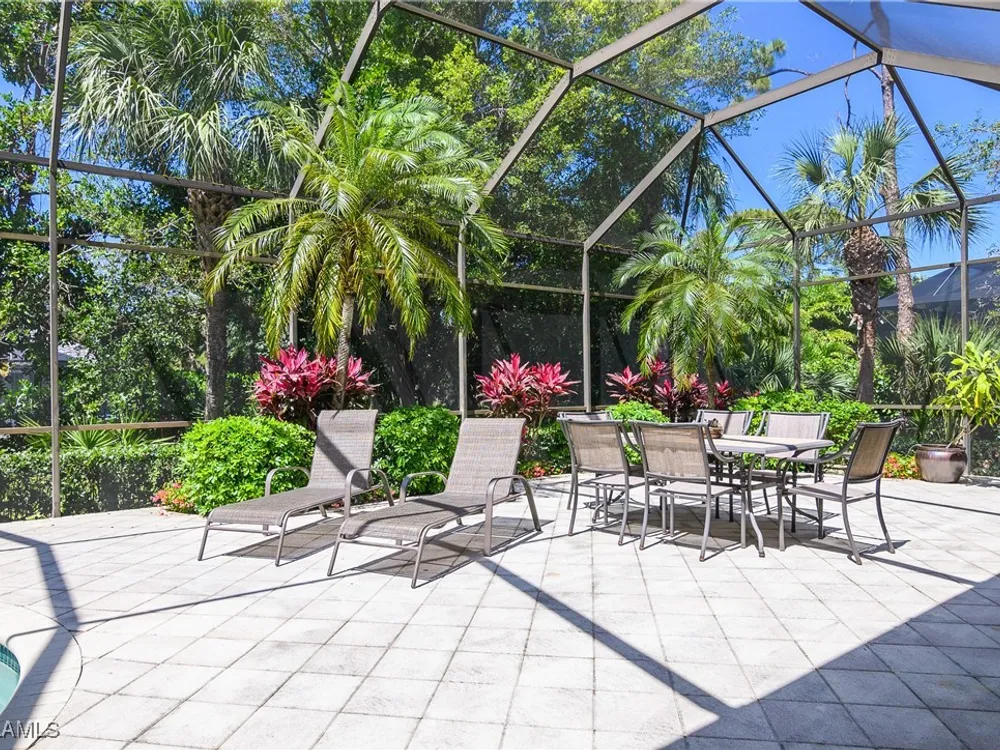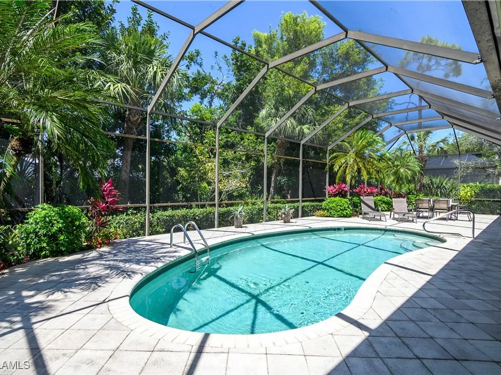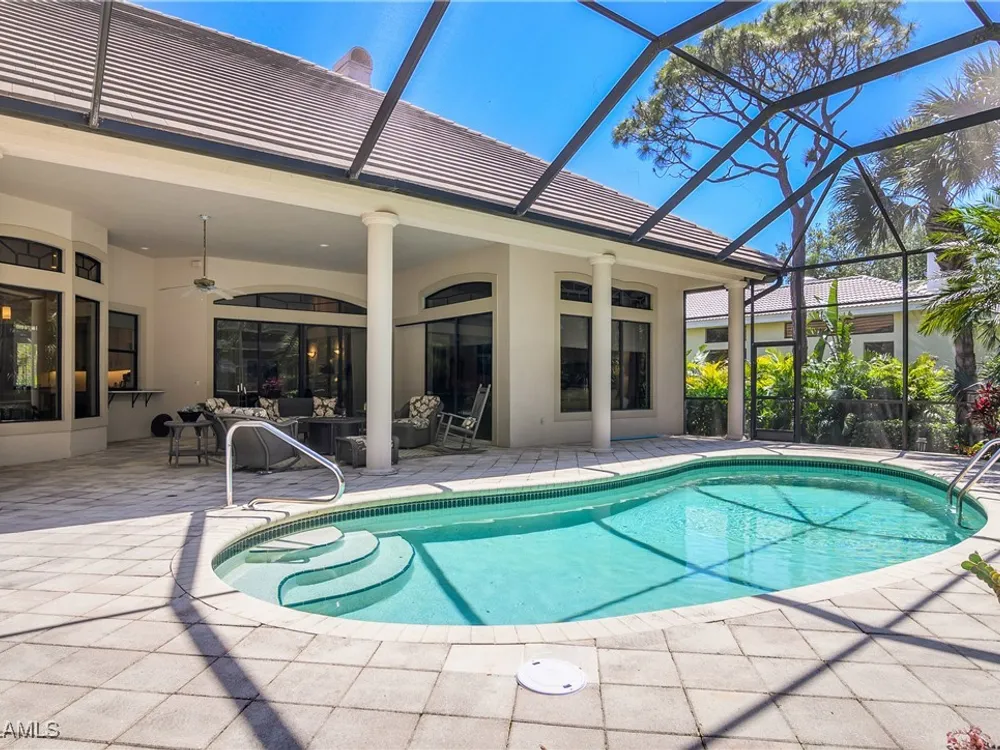Updated single family home on a very generously sized landscaped homesite in Riverwalk offered furnished. Light and bright and very well maintained. Newer wood flooring throughout all the main living areas. Renovated kitchen in 2024 with white cabinetry and quartz counters. New microwave, dishwasher and cooktop in 2023. All bathrooms have been updated from top to bottom. New roof in 2018. Hot Water Tank replaced in 2023. Main HVAC unit replaced in 2023. 2nd HVAC unit condenser replaced in 2024. Heat pump for pool replaced in 2024. A/C storage in the garage. His and Hers Master Bathrooms. Plantation Shutters. Residents of Bonita Bay have access to the private beach park currently going through a total renovation, Backwater Jack's Restaurant and marina along with 3 parks. Popular Riverwalk Park offers kayak/canoe/boat launch & community pickleball/tennis courts. Bonita Bay Residents can also enjoy 12+miles of biking and walking trails throughout the community. Residents have options to join the Country Club with 5 world class golf courses, sports/racquet center, resort-style pool, state-of-the-art fitness facility, luxury spa & salon.
