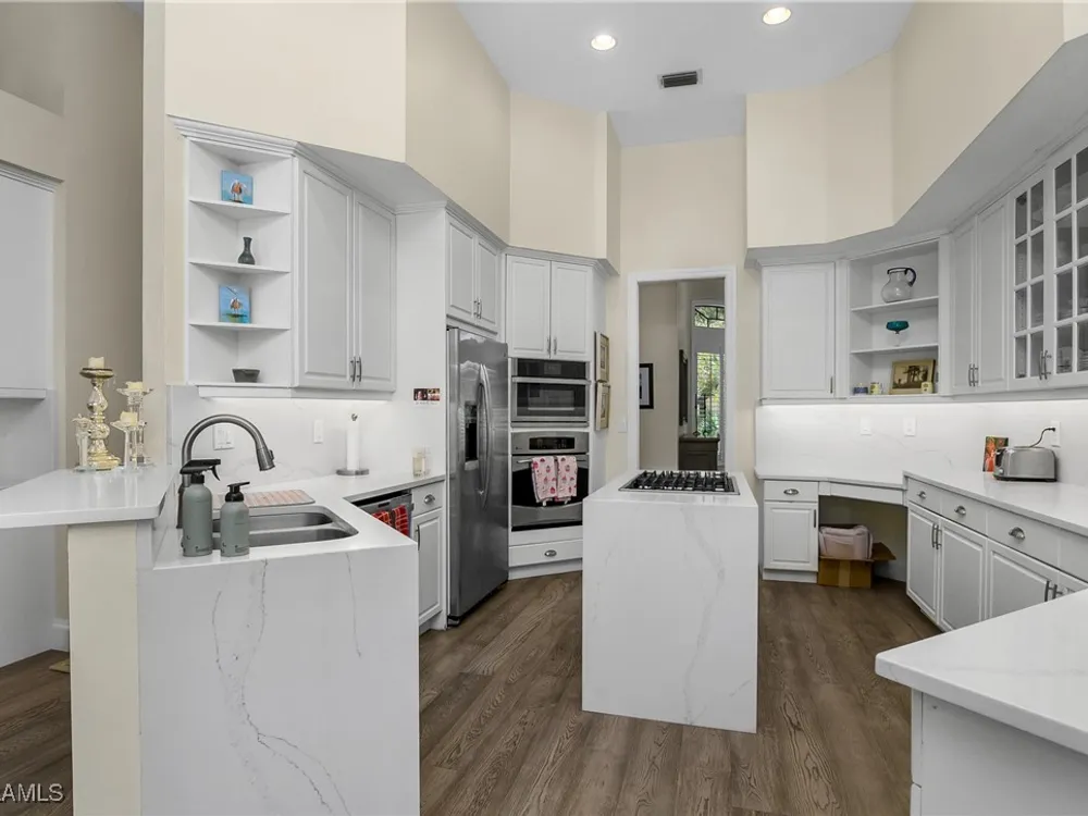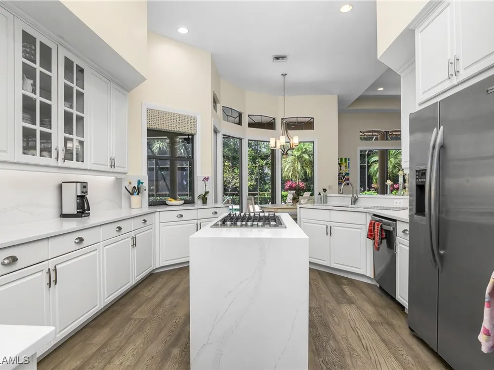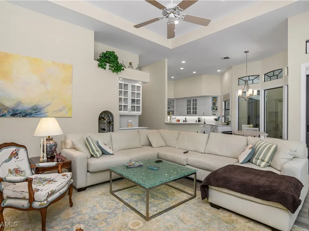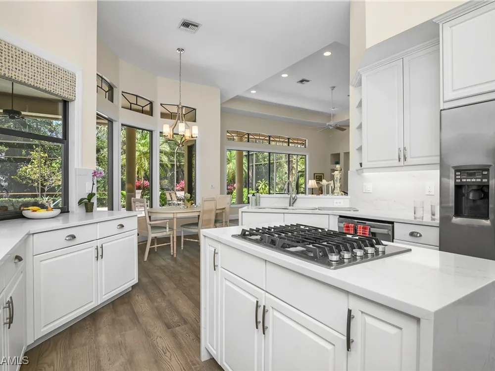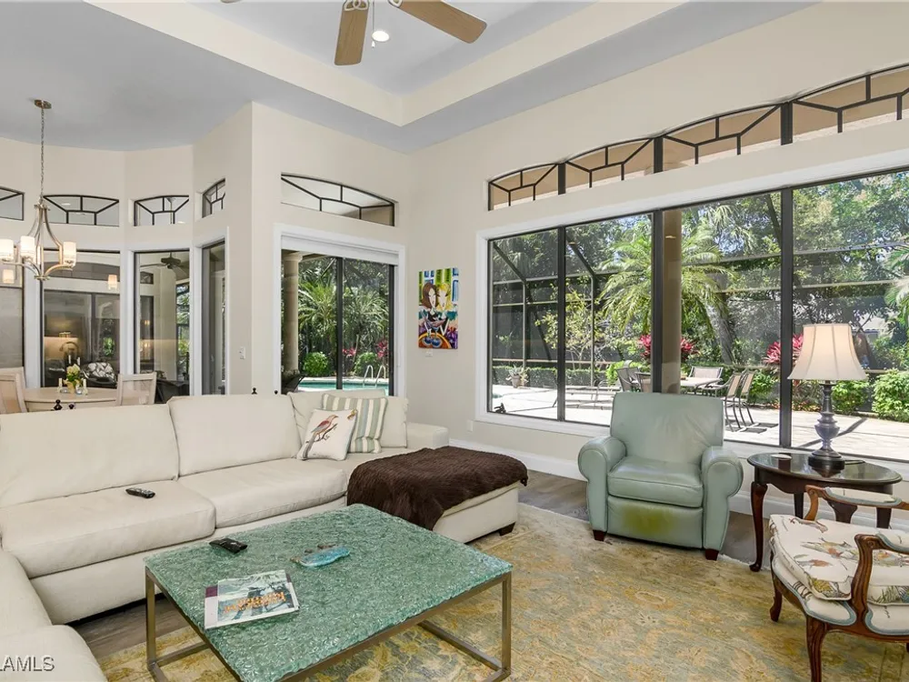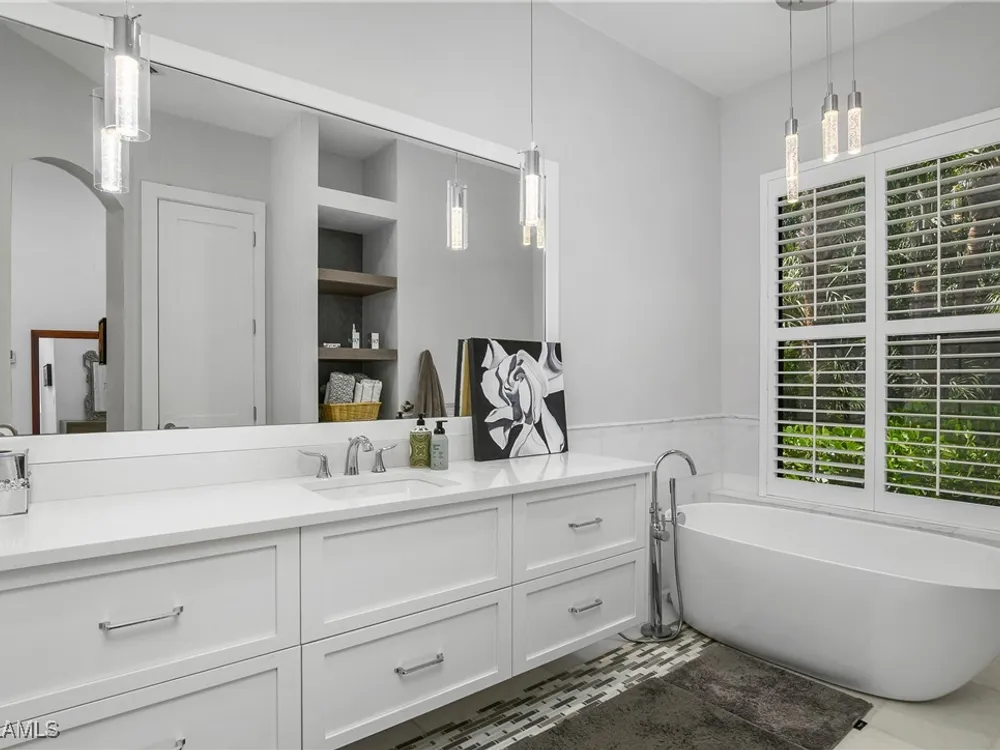 Updated single family home on a very generously sized landscaped homesite in Riverwalk offered furnished. Light and bright and very well maintained. Newer wood flooring throughout all the main living areas. Renovated kitchen in 2024 with white cabinetry and quartz counters. New microwave, dishwasher and cooktop in 2023. All bathrooms have been updated from top to bottom. New roof in 2018. Hot Water Tank replaced in 2023. Main HVAC unit replaced in 2023. 2nd HVAC unit condenser replaced in 2024. Heat pump for pool replaced in 2024. A/C storage in the garage. His and Hers Master Bathrooms. Plantation Shutters. Residents of Bonita Bay have access to the private beach park currently going through a total renovation, Backwater Jack's Restaurant and marina along with 3 parks. Popular Riverwalk Park offers kayak/canoe/boat launch & community pickleball/tennis courts. Bonita Bay Residents can also enjoy 12+miles of biking and walking trails throughout the community. Residents have options to join the Country Club with 5 world class golf courses, sports/racquet center, resort-style pool, state-of-the-art fitness facility, luxury spa & salon.