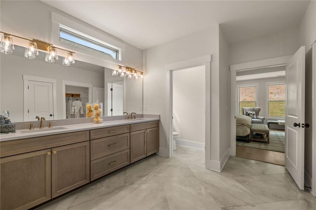 Welcome to Soleil Summit Chase-Snellville's newest premier 55 & Better luxury resort-style community by award-winning Patrick Malloy Communities. Where upscale living meets an active vibrant lifestyle, this gated community offers an impressive collection of amenities designed for comfort, connection, and carefree living. Soleil Summit Chase features a stunning clubhouse equipped with a spacious great room and bar, a catering kitchen for community events planned by the Resort Director. Two card and game rooms, flex room, and a fully appointed fitness center with an outdoor yoga patio. Resort-style outdoor amenities include a grilling and fire-pit area, event lawn, community garden, dog park, Bocce ball and pickleball courts. Our dedicated Resort Lifestyle Director helps plan events, organize clubs, and coordinate tournaments-ensuring there's always something exciting to enjoy. The Wesley D Plan is a highly sought-after floorplan offers exceptional spaces for everyday living and entertaining. The elegant foyer with a detailed tray ceiling is open to Formal Dining Room. At the heart of the home, soaring 11' ceilings set the tone for the open concept living area, featuring a spacious family room and a chef's kitchen outfitted with premium appliances, designer tile, and a large island with seating. A bright, welcoming open concept enhances the living space and provides the perfect place to unwind. Step outside through the wall of glass doors to generous covered rear patio-ideal for relaxing or hosting guests year-round, rain or shine. Owner's Suite & Additional Living Space is a serene retreat complete with a cozy bay sitting area, tray ceiling, spa-inspired bath with double vanity, walk-in shower, and an oversized walk-in closet. A Study is on the primary wing of home. Two additional bedrooms, and full bath-perfect for guests on main, and a powder bath for guests. Additional Features include Convenient laundry room with sink, Two and a Half car garage! HOA-included lawn care, internet, and home security monitoring-giving you more time to enjoy the lifestyle you deserve. Photos are stock photos of a Wesley plan.