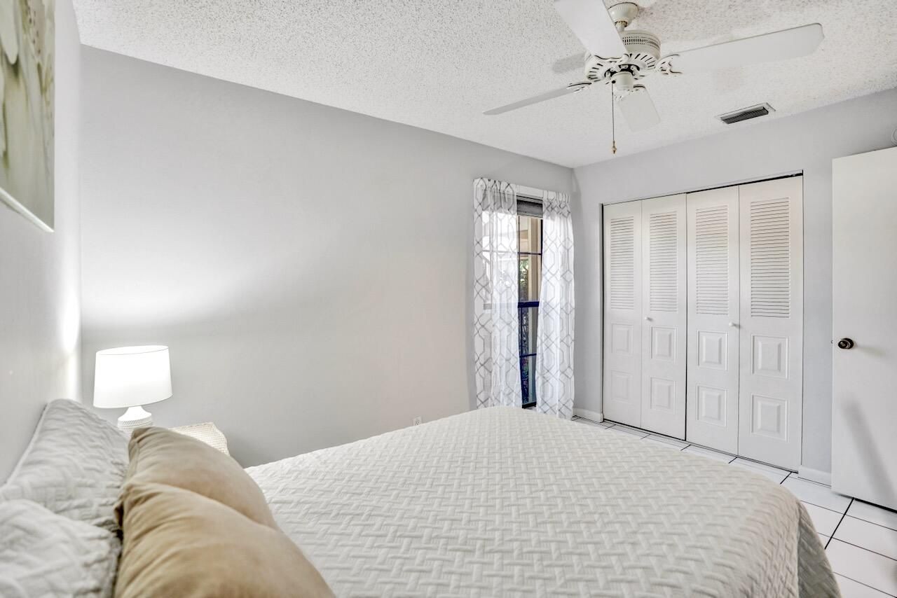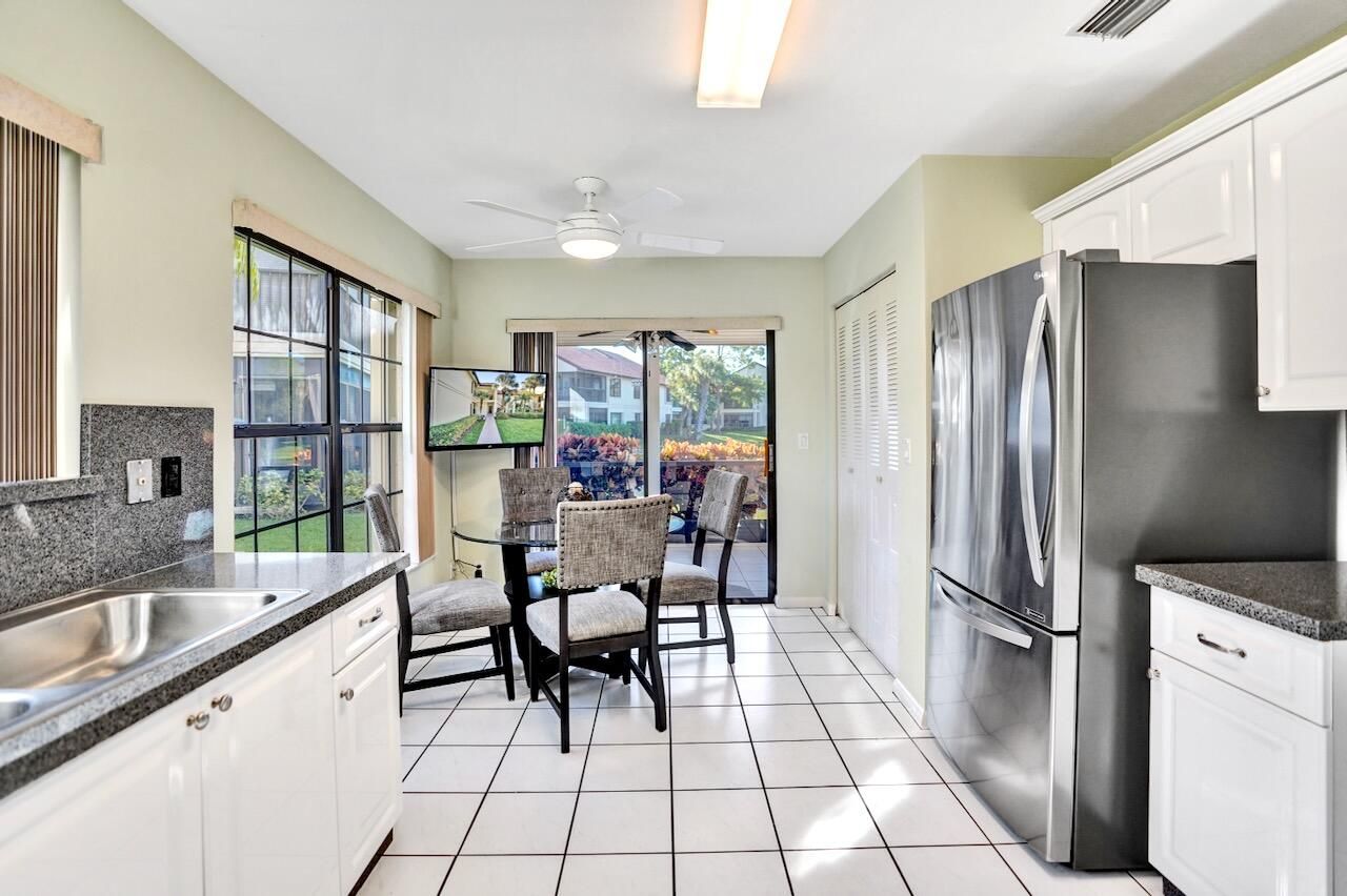 This listing contains virtually staged photos. Welcome Home to Park Pointe! This charming 3-bedroom, 2-bathroom first-floor condo in the desirable 55+ community of Park Pointe in Greenacres is completely move-in ready! As a corner unit with nearly 1,400 sq. ft., this home is filled with natural light and offers a wide lake and fountain view that can be enjoyed from your spacious, screened-in patio. The kitchen features an eat-in area, updated cabinets, and mostly stainless steel appliances. Inside, the home has been meticulously maintained and offers a bright, open feel throughout. Additional features include a 2021 A/C unit, Square D electrical panel, and in-unit washer/dryer hookups conveniently located in a hall closet. Parking is easy with one assigned spot right in front of the building, two vehicles are permitted per unit. A new roof (2022) provides added peace of mind. Monthly dues include basic Comcast cable and internet, water, trash, roof maintenance and exterior building insuranceeverything you need for low-maintenance living. One pet under 25 lbs is welcome, and there is no rental moratoriumrentals are permitted once per year with a 3-month minimum. At least one occupant must be 55 or older. Community amenities are exceptional! Residents enjoy a resort-style pool, fitness center, tennis and pickleball courts, clubhouse, billiards, ping pong, shuffleboard, bocce ball, grilling area, car wash, on-site management, and an active social calendar offering numerous events and activities year-round. Conveniently located near shopping, dining, and entertainment, Park Pointe offers the perfect blend of comfort, community, and convenience. Schedule your showing today and make this beautiful condo your new home! INFORMATION HEREIN NOT GUARANTEED AND SUBJECT TO ERRORS & OMISSIONS. ALL MEASUREMENTS APPROXIMATE.