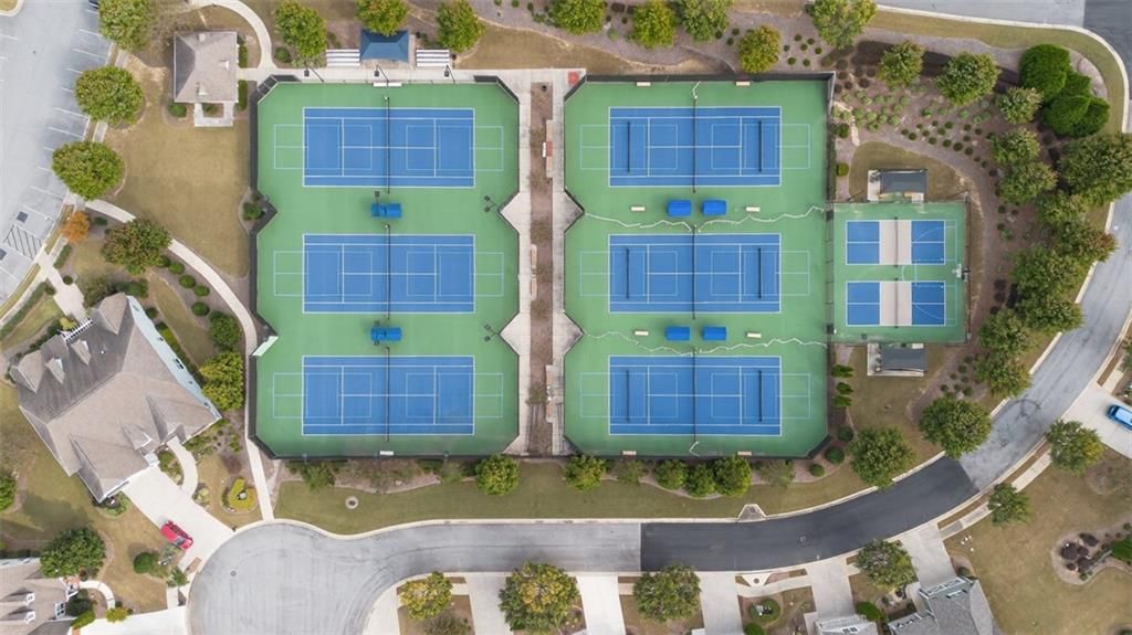 - Clubhouse, Dog Park, Fitness Center, Gated, Home Owners Association, Lake, Shopping, Trails/Paths, Pickleball, Playground, Pool, Tennis Court(s)
