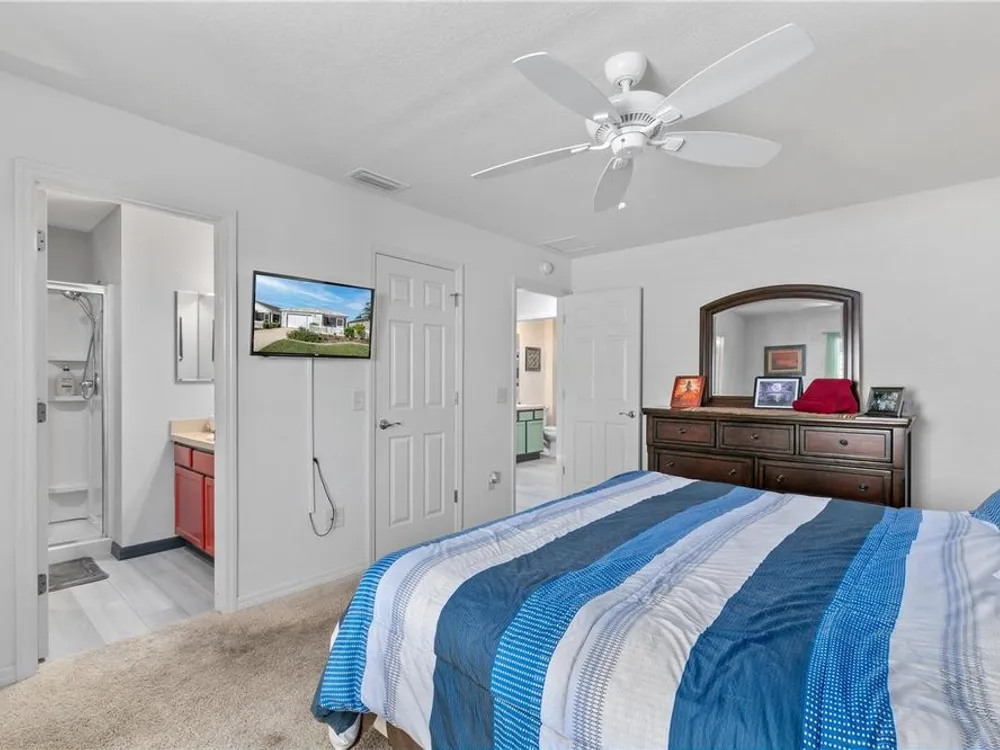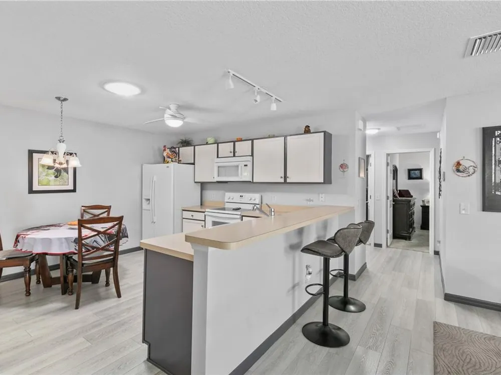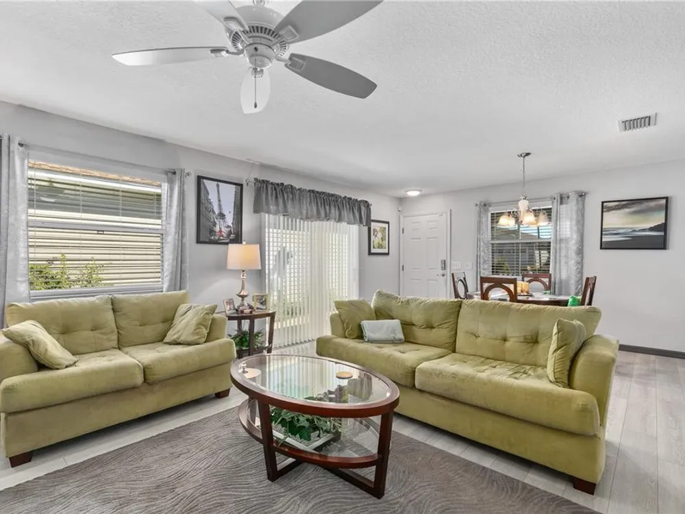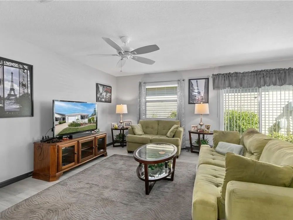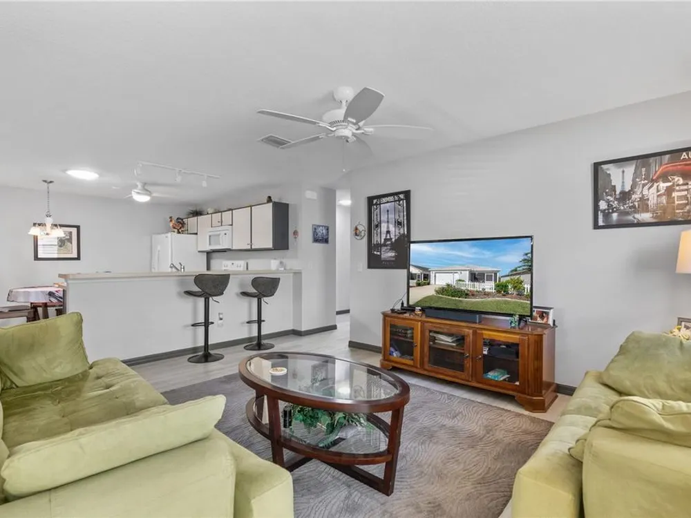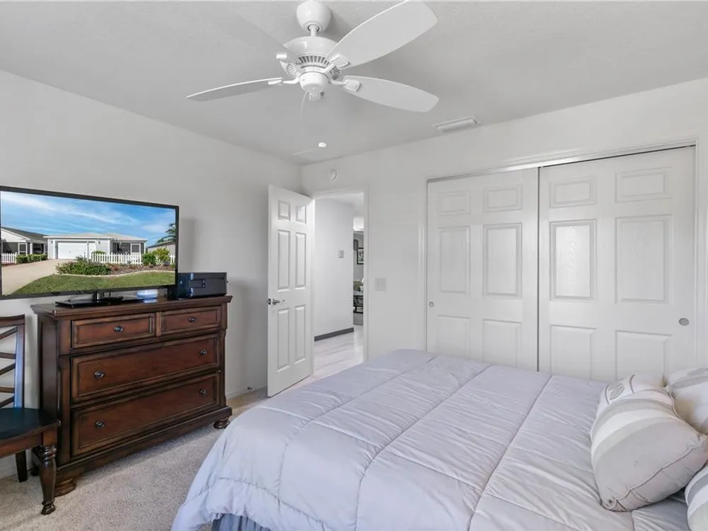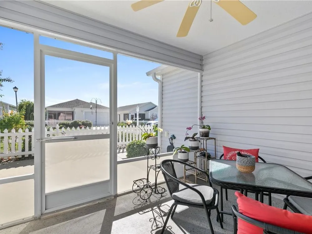 TURN KEY BOKEELIA VILLA IN THE VILLAGE of FERNANDINA - GOLF CART INCLUDED ! Move right in and start living The Villages lifestyle in this beautifully furnished Colony model Patio Villa located in the sought-after Village of Fernandina. This 2-bedroom, 2-bath home is completely turnkey — everything you need is provided, including your very own golf cart! Complete set up for Short Term Rental or easy move in. Step inside to a bright open floor plan where the Kitchen overlooks the Dining and Living areas — perfect for entertaining or relaxing with family and friends. The Kitchen features Wood Cabinetry, spacious Countertops, a large Pantry Closet, Breakfast Bar, and a convenient interior Laundry Room with Washer & Dryer. From the Living Room, Sliding Glass Doors open to a private Side Patio, ideal for outdoor dining or evening gatherings. Enjoy your morning coffee in the screened-in Lanai, taking in the Sunrise and peaceful Florida Breezes. The Primary Suite offers a King-size Bed, large Walk-in Closet, and En Suite Bath with a step-in Shower. The Guest Bedroom is equally inviting, featuring a Queen-size Bed and easy access to the Second Full Bath. Perfectly located between Brownwood Paddock Square and Lake Sumter Landing, you’ll have easy access to shopping, dining, and nightly live entertainment. Nearby Bradenton Recreation Center offers swimming, pickleball, tennis, billiards, and more. You’re also surrounded by Evans Prairie and Bonifay Country Clubs, all just a short golf cart ride away. The Village of Fernandina isn’t just a place to live — it’s a lifestyle of fun, community, and endless recreation!