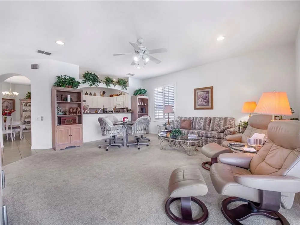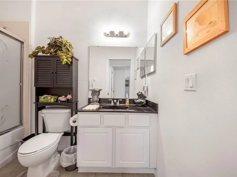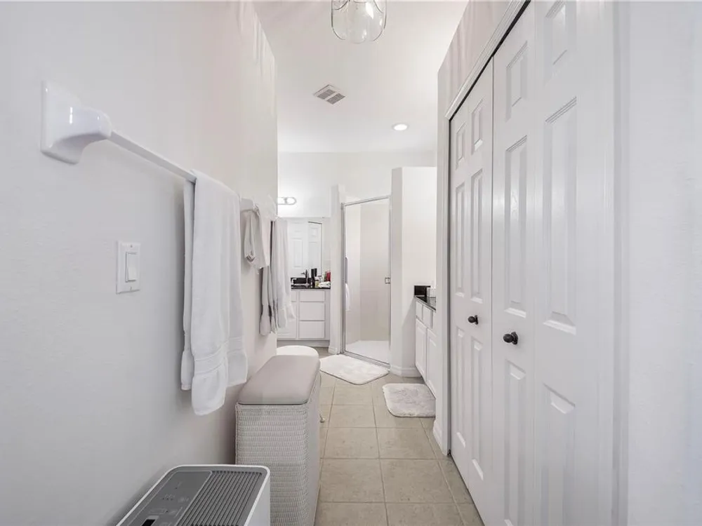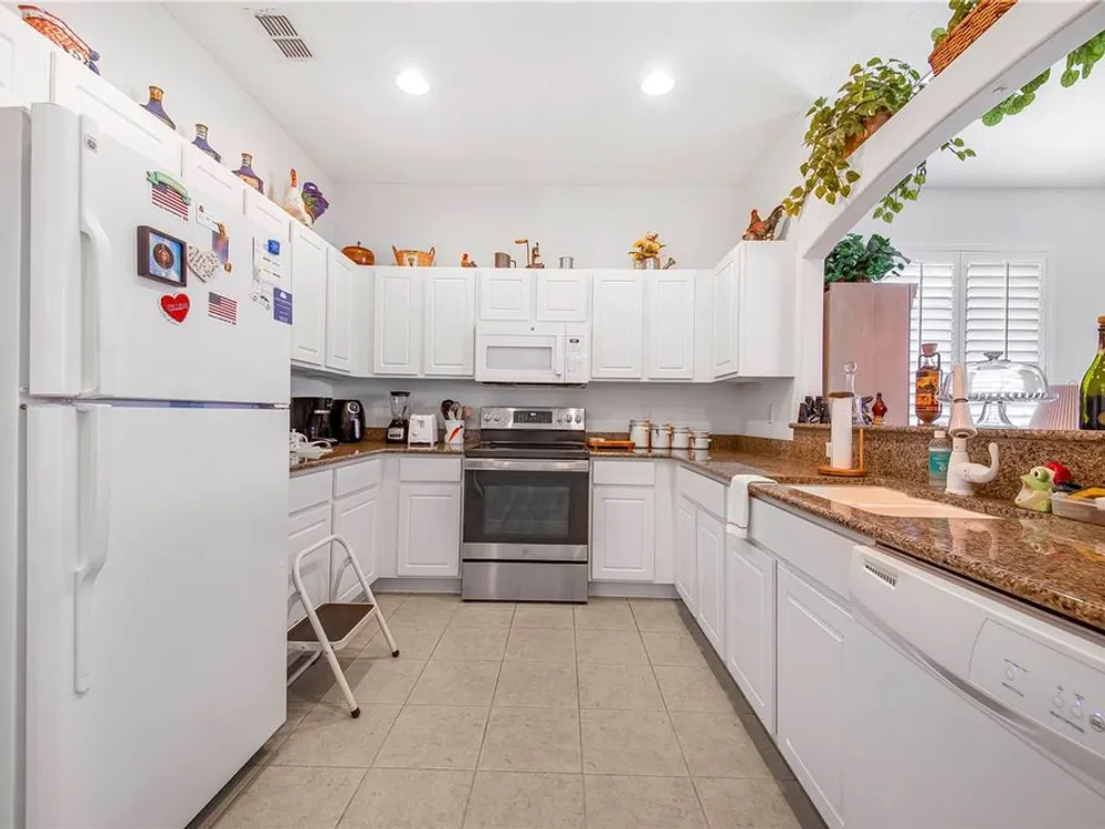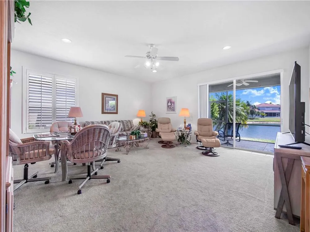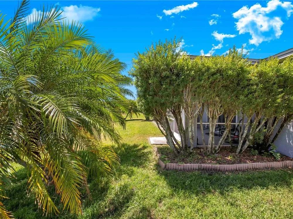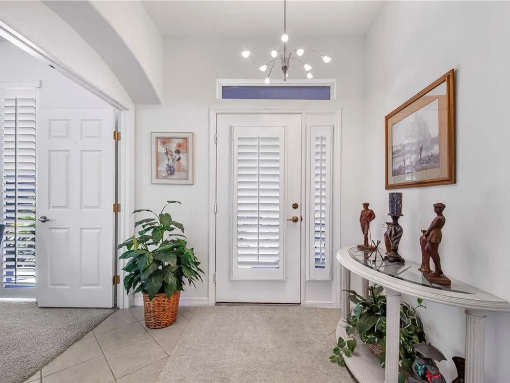 Welcome to this beautifully designed 3-bedroom 3 bath, nestled in the vibrant lakefront community of Carillon Lakes on the shores of Lake Sonata. Thoughtfully laid out for comfort and privacy, this home features a unique atrium that separates the guest or in-law suite from the main living area-perfect for extended family or visitors. The guest suite includes its own private entrance, a kitchenette with a refrigerator and microwave, and a convenient storage closet. Inside, you'll find light neutral walls that enhance the home's airy and inviting feel and elegant plantation shutters throughout. The owner's suite is a true retreat with its own sitting area, a spacious walk-in closet, and a large bathroom designed for relaxation. The home also boasts a newly painted exterior and a roof installed in 2018, offering peace of mind for years to come. Enjoy everyday convenience with a dedicated laundry room and a beautiful entryway that welcomes you with charm. Step out back to a screened-in room that offers tranquil views of Lake Sonata, ideal for morning coffee or evening sunsets. Enjoy access to wonderful community amenities including a clubhouse, tennis and basketball courts, and a dedicated cornhole area- ideal for fun and connection with neighbors. Furnishings can be purchased in a separately. This is a rare opportunity to own a private, spacious, and beautifully maintained home in a highly desirable location.