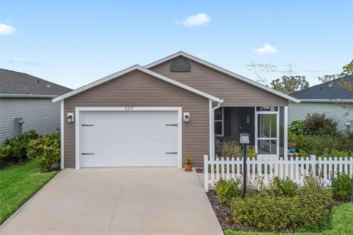 A "must-see", furnished Patio Villa Opal Model located in the Village of DeLuna – Clara Villas! Step into easy living with this bright, beautifully furnished, move-in-ready home with 2 Bedrooms and 2 Bathrooms, featuring a cheerful Florida vibe. You’ll love the seamless, waterproof, wide-plank flooring, stainless steel appliances, natural gas cooking, and whole-house Nova water filtration system. The primary suite features a glass-enclosed shower and an oversized walk-in closet, while the guest room doubles as a perfect home office or craft space, complete with a custom desk with adjustable shelving. Enjoy the convenience of low-maintenance living — even the EGO battery-powered mower is included! There's a beautiful "walking path" located a few blocks away to get your daily steps in, and dogs are welcome! Whether you’re looking for a full-time home or a seasonal getaway, this villa is ready for you to start "Living the Dream in The Villages!" Make your appointment today!