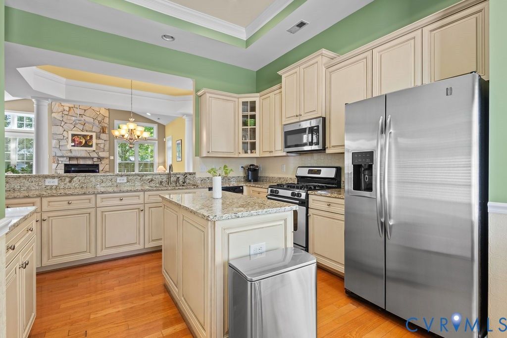 - Breakfast Area, Tray Ceiling(s), Ceiling Fan(s), Cathedral Ceiling(s), Dining Area, Kitchen Island, Main Level Primary, Recessed Lighting, Walk-In Closet(s)
