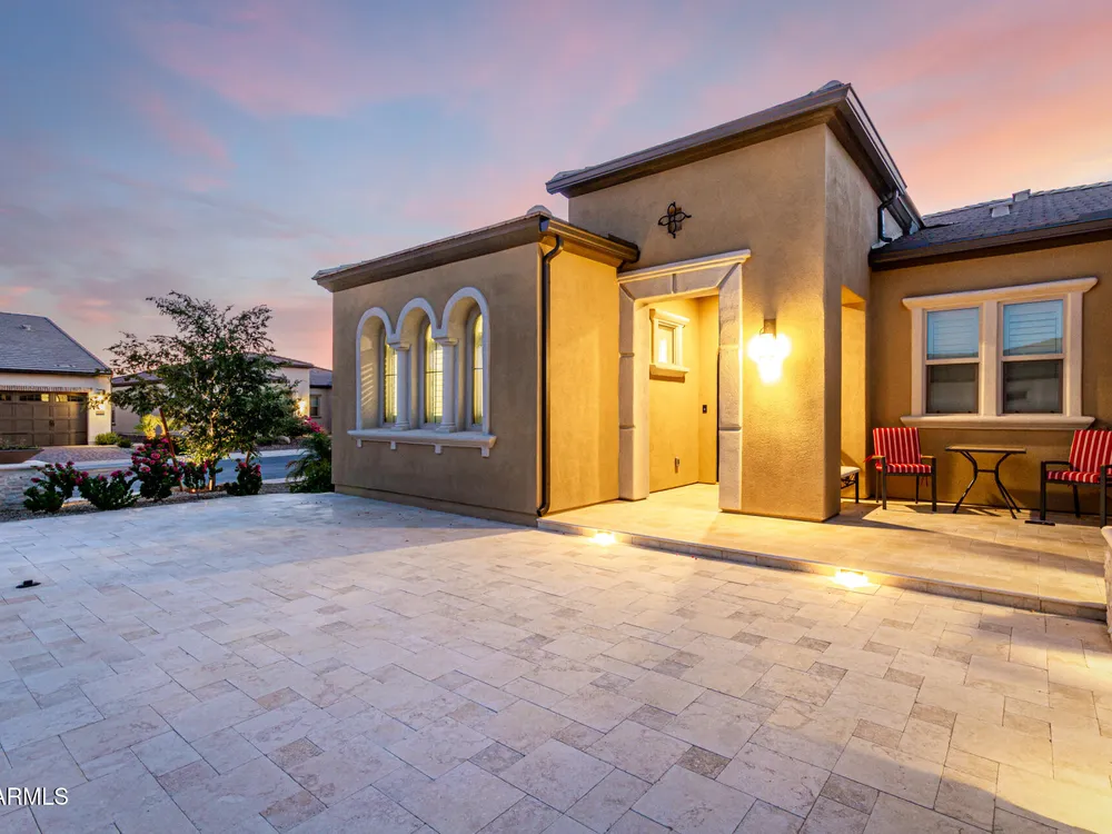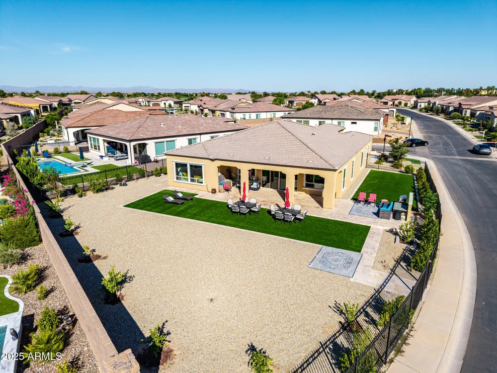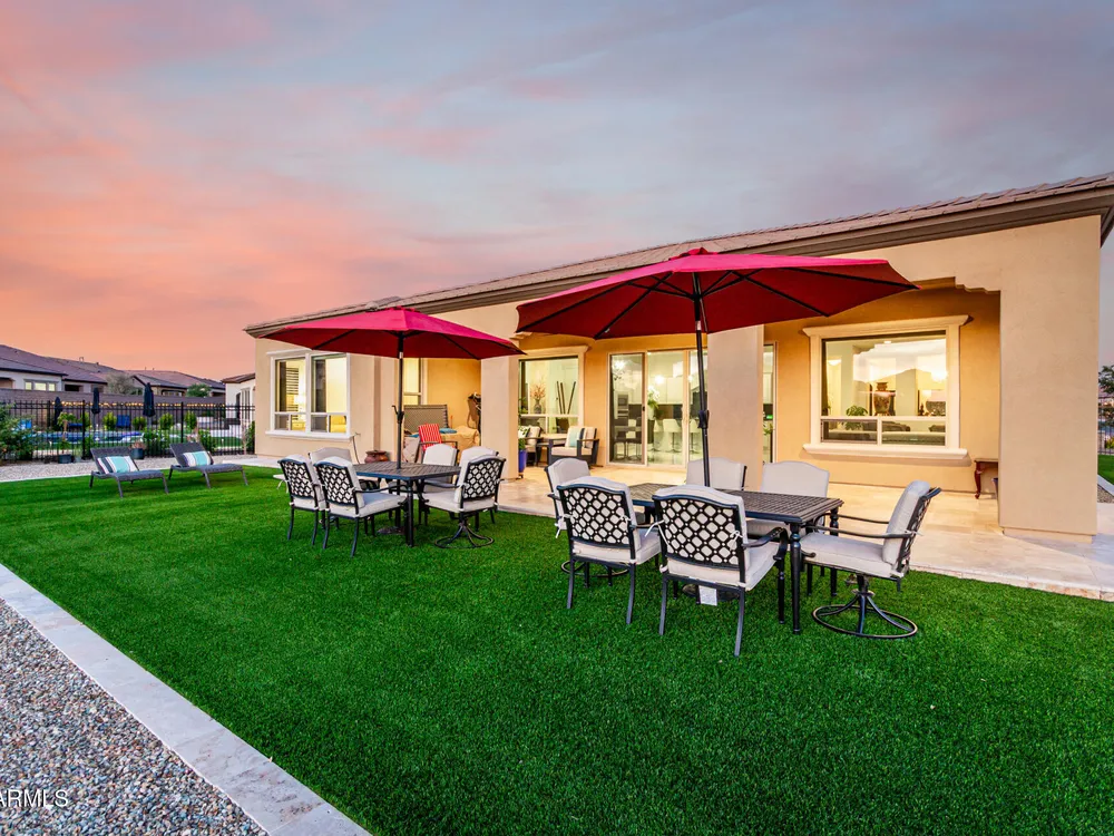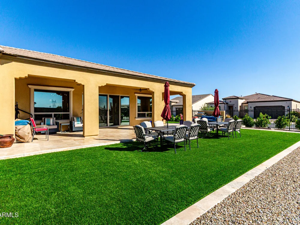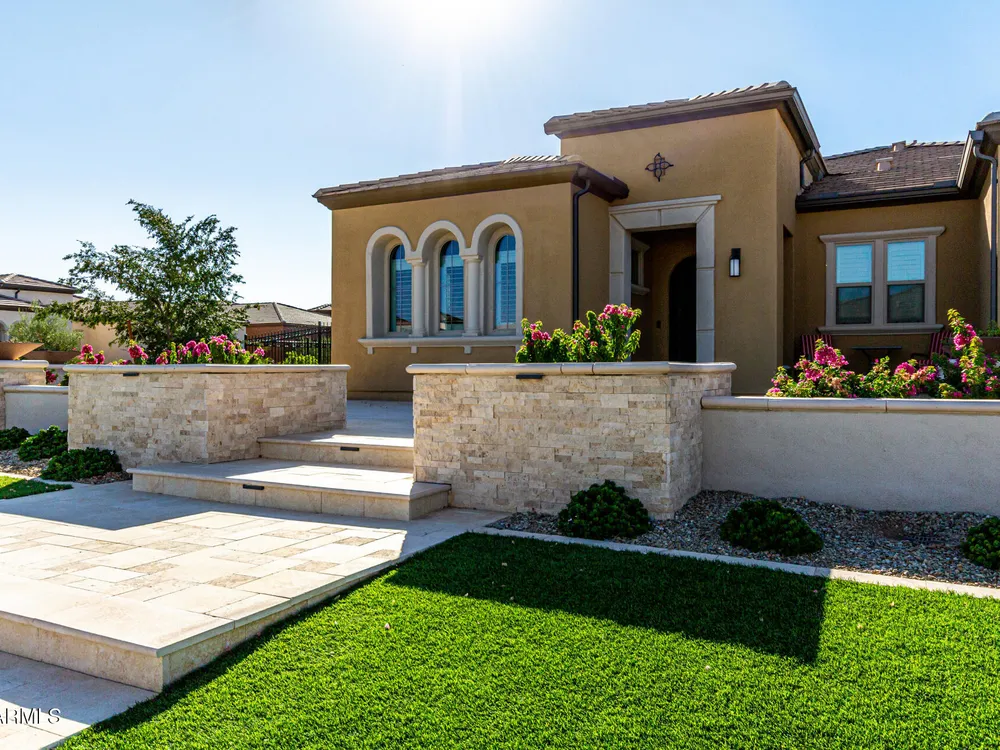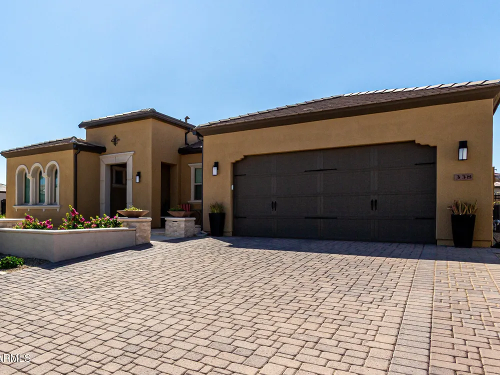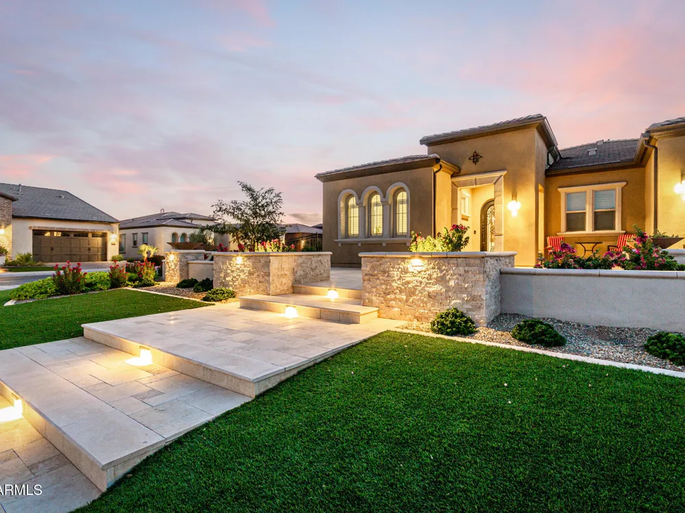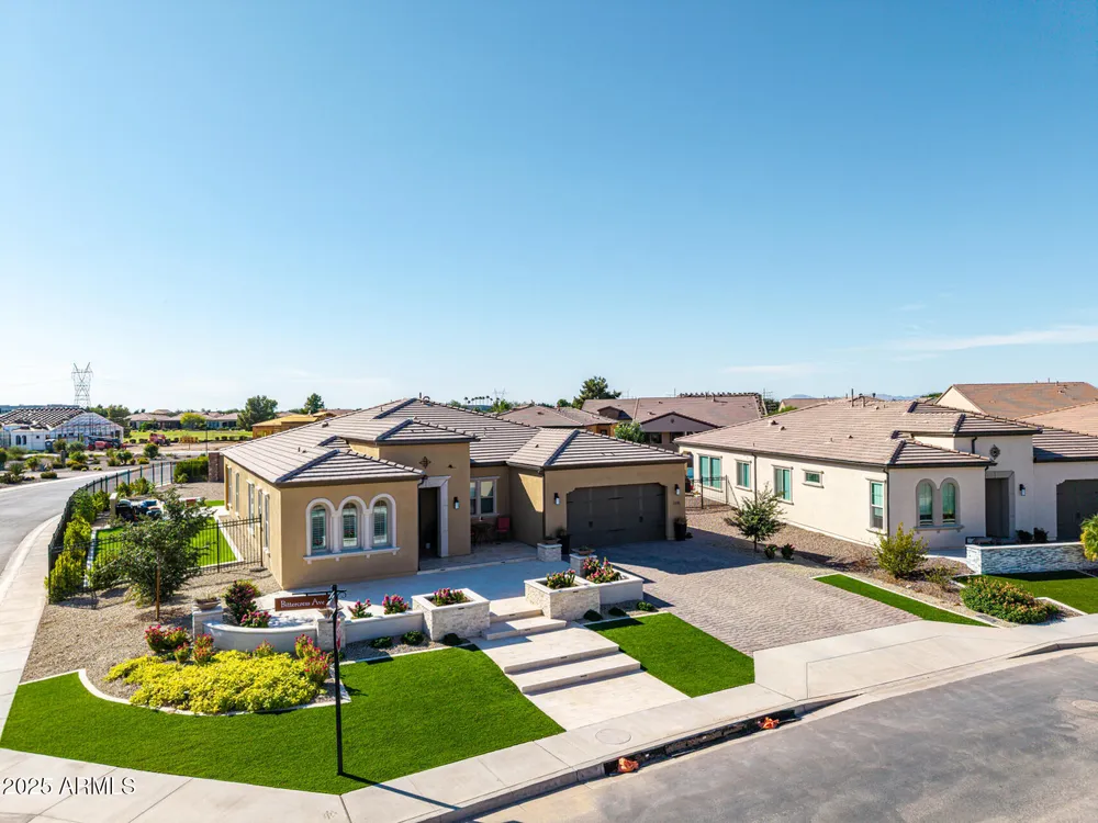 Luxury Living in the Heart of Encanterra Country Club! Experience the luxury lifestyle of Encanterra Country Club in this newer single-level home, nestled on 14,327sf premium corner lot, located in the sought-after enclave within the prestigious, gated Encanterra Country Club in Queen Creek, AZ. From the moment you step through the lush, professionally landscaped courtyard and custom wrought-iron front door, you'll be welcomed into a home where luxury, design, and comfort are in perfect harmony. This exquisite home features 3 spacious bedrooms, each located in its own private wing and complete with an en-suite bath — offering ultimate privacy and tranquility for both residents and guests. Inside, soaring ceilings, elegant marble-style flooring, sparkling crystal chandeliers, and a soft.. white palette enhance the open, sunlit layout. The split-floor plan ensures serene separation, with the primary suite serving as a peaceful retreat. It boasts a spa-inspired bath with dual vanities, a luxurious walk-in shower, and an oversized walk-in closet. The heart of the home is the chef's kitchen, an entertainer's dream, appointed with gleaming granite countertops, white cabinetry with crown moulding, a generous walk-in pantry, gas cooktop, apron-front farmhouse sink, and stainless-steel appliances. The kitchen flows seamlessly into the expansive great room, creating an ideal space for gatherings both large and intimate. Enjoy seamless indoor-outdoor living with expansive views of the outside of the beautifully designed backyard features multiple seating areas, a large, covered travertine-tiled patio, and ample room for entertaining under the stars. Living in Encanterra offers more than just a home-it's a lifestyle. Enjoy access to world-class amenities including a championship golf course, four resort-style pools, full-service spa, state-of-the-art fitness center, tennis and pickleball courts, fine and casual dining, live entertainment, social clubs, and curated community events, all within a vibrant and secure gated setting. This is a rare opportunity to own a truly one of a kind luxury home that brings together the modern design and resort lifestyle community you've been searching for.
