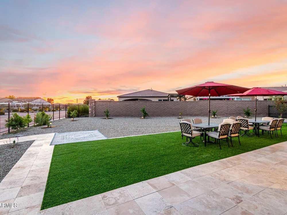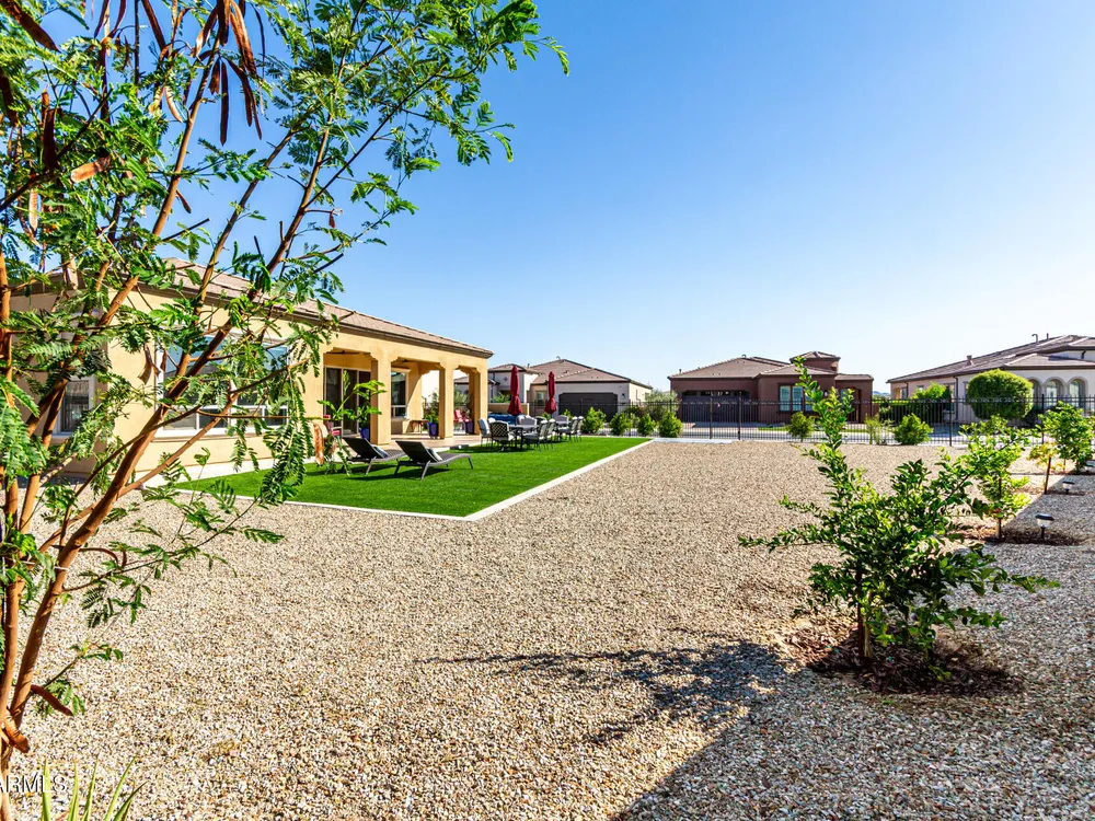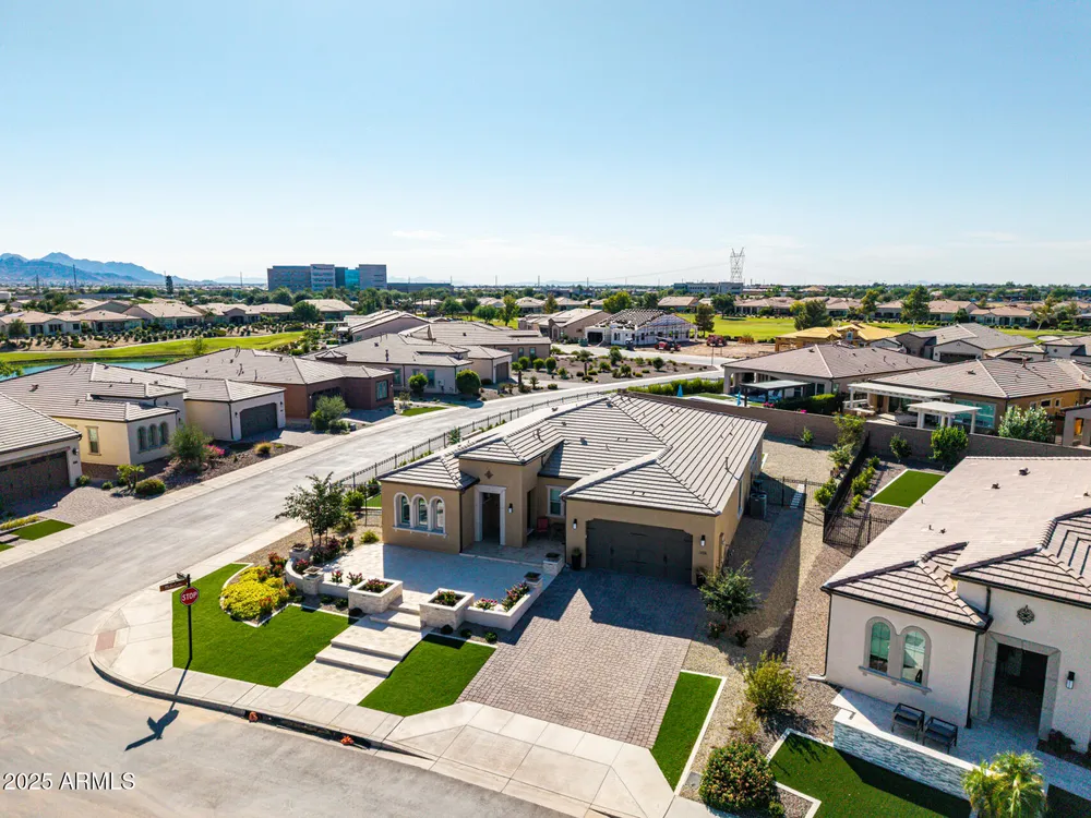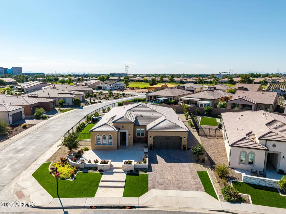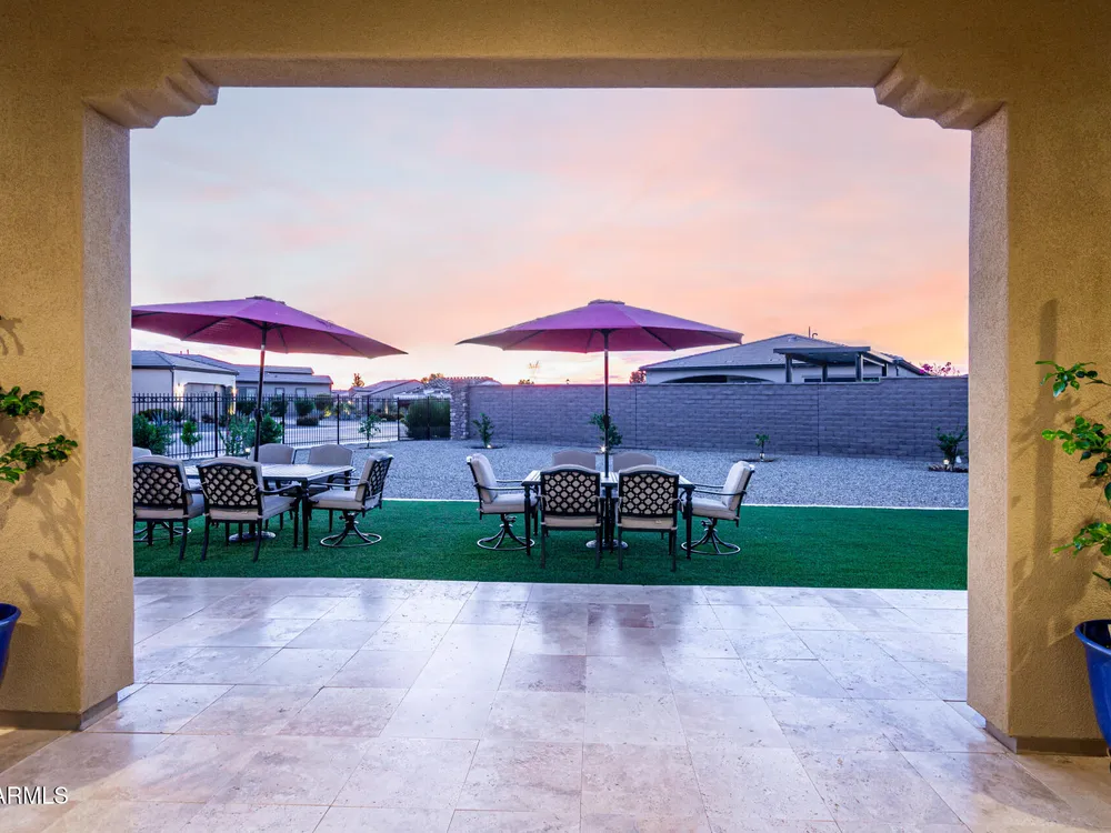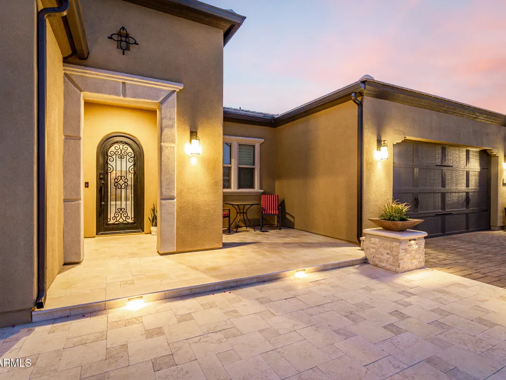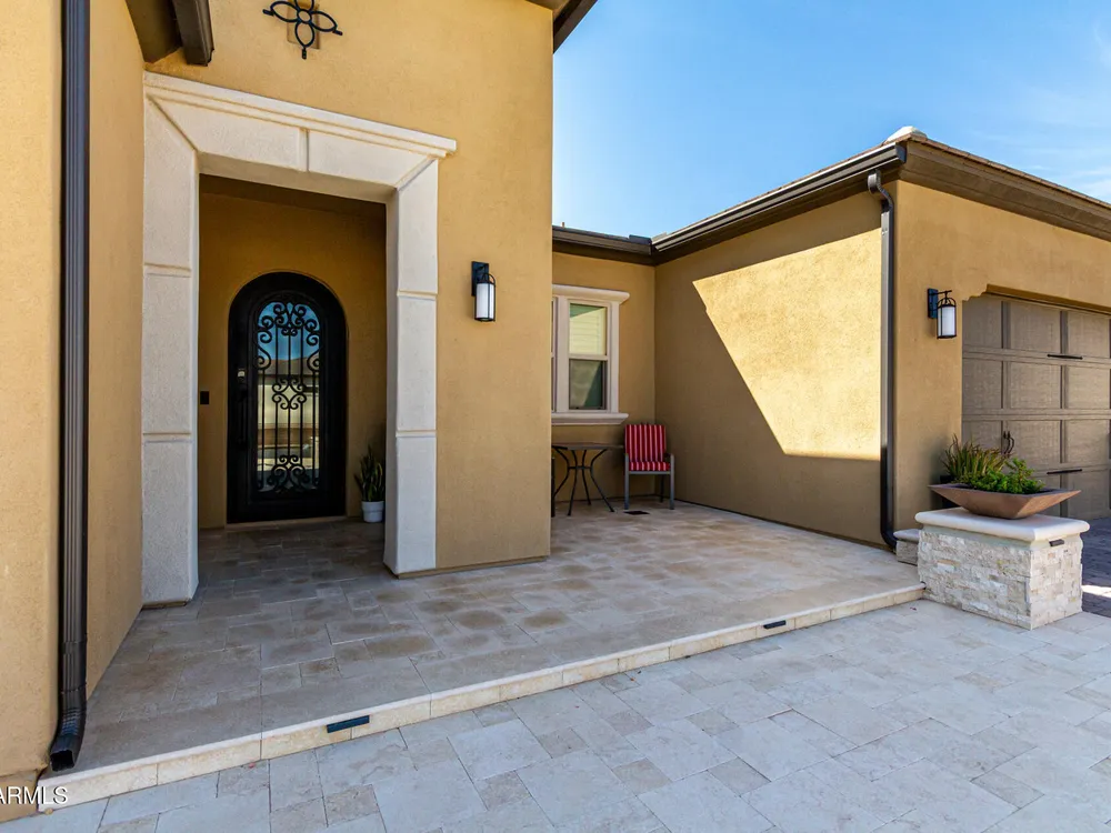 Luxury Living in the Heart of Encanterra Country Club! Experience the luxury lifestyle of Encanterra Country Club in this newer single-level home, nestled on 14,327sf premium corner lot, located in the sought-after enclave within the prestigious, gated Encanterra Country Club in Queen Creek, AZ. From the moment you step through the lush, professionally landscaped courtyard and custom wrought-iron front door, you'll be welcomed into a home where luxury, design, and comfort are in perfect harmony. This exquisite home features 3 spacious bedrooms, each located in its own private wing and complete with an en-suite bath — offering ultimate privacy and tranquility for both residents and guests. Inside, soaring ceilings, elegant marble-style flooring, sparkling crystal chandeliers, and a soft.. white palette enhance the open, sunlit layout. The split-floor plan ensures serene separation, with the primary suite serving as a peaceful retreat. It boasts a spa-inspired bath with dual vanities, a luxurious walk-in shower, and an oversized walk-in closet. The heart of the home is the chef's kitchen, an entertainer's dream, appointed with gleaming granite countertops, white cabinetry with crown moulding, a generous walk-in pantry, gas cooktop, apron-front farmhouse sink, and stainless-steel appliances. The kitchen flows seamlessly into the expansive great room, creating an ideal space for gatherings both large and intimate. Enjoy seamless indoor-outdoor living with expansive views of the outside of the beautifully designed backyard features multiple seating areas, a large, covered travertine-tiled patio, and ample room for entertaining under the stars. Living in Encanterra offers more than just a home-it's a lifestyle. Enjoy access to world-class amenities including a championship golf course, four resort-style pools, full-service spa, state-of-the-art fitness center, tennis and pickleball courts, fine and casual dining, live entertainment, social clubs, and curated community events, all within a vibrant and secure gated setting. This is a rare opportunity to own a truly one of a kind luxury home that brings together the modern design and resort lifestyle community you've been searching for.
