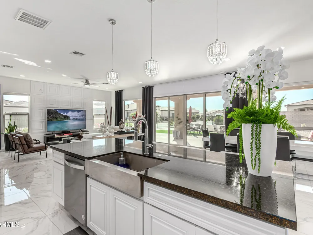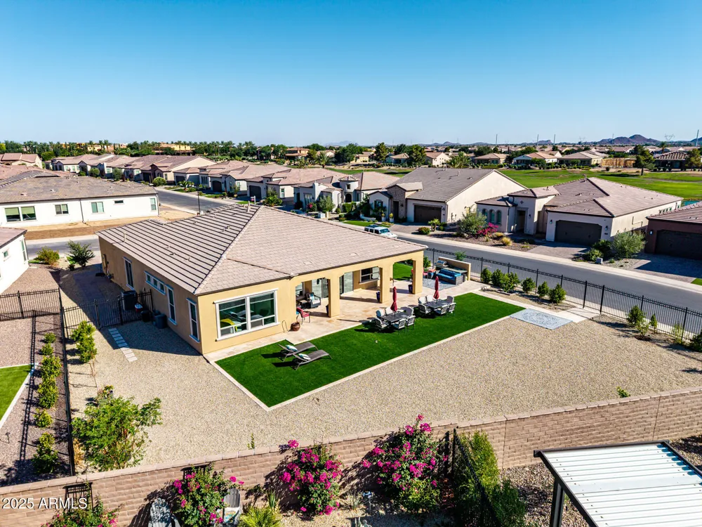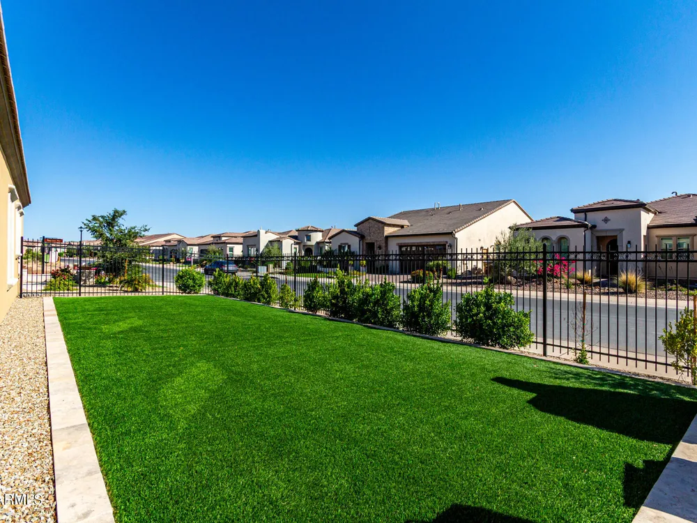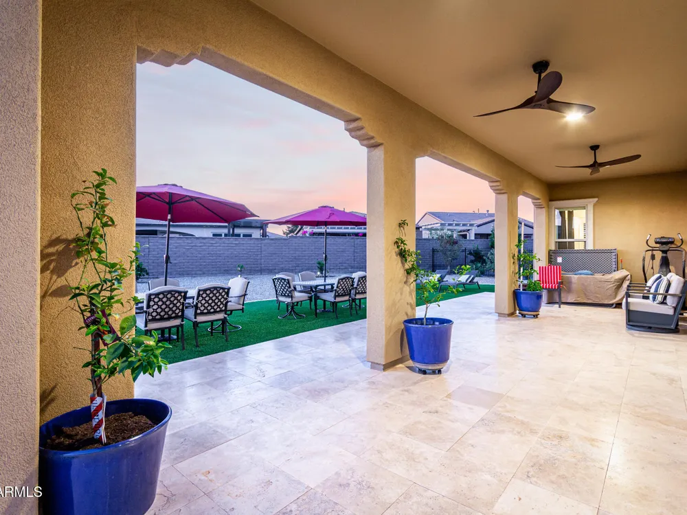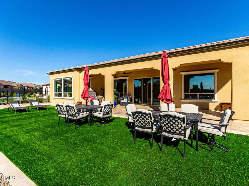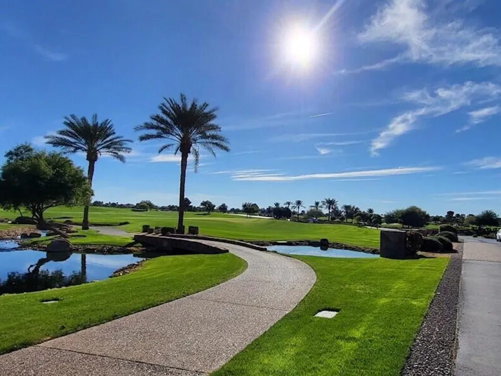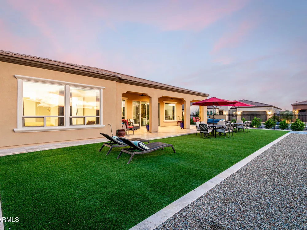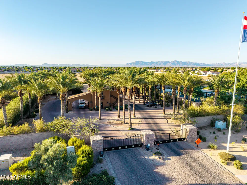 Luxury Living in the Heart of Encanterra Country Club! Experience the luxury lifestyle of Encanterra Country Club in this newer single-level home, nestled on 14,327sf premium corner lot, located in the sought-after enclave within the prestigious, gated Encanterra Country Club in Queen Creek, AZ. From the moment you step through the lush, professionally landscaped courtyard and custom wrought-iron front door, you'll be welcomed into a home where luxury, design, and comfort are in perfect harmony. This exquisite home features 3 spacious bedrooms, each located in its own private wing and complete with an en-suite bath — offering ultimate privacy and tranquility for both residents and guests. Inside, soaring ceilings, elegant marble-style flooring, sparkling crystal chandeliers, and a soft.. white palette enhance the open, sunlit layout. The split-floor plan ensures serene separation, with the primary suite serving as a peaceful retreat. It boasts a spa-inspired bath with dual vanities, a luxurious walk-in shower, and an oversized walk-in closet. The heart of the home is the chef's kitchen, an entertainer's dream, appointed with gleaming granite countertops, white cabinetry with crown moulding, a generous walk-in pantry, gas cooktop, apron-front farmhouse sink, and stainless-steel appliances. The kitchen flows seamlessly into the expansive great room, creating an ideal space for gatherings both large and intimate. Enjoy seamless indoor-outdoor living with expansive views of the outside of the beautifully designed backyard features multiple seating areas, a large, covered travertine-tiled patio, and ample room for entertaining under the stars. Living in Encanterra offers more than just a home-it's a lifestyle. Enjoy access to world-class amenities including a championship golf course, four resort-style pools, full-service spa, state-of-the-art fitness center, tennis and pickleball courts, fine and casual dining, live entertainment, social clubs, and curated community events, all within a vibrant and secure gated setting. This is a rare opportunity to own a truly one of a kind luxury home that brings together the modern design and resort lifestyle community you've been searching for.