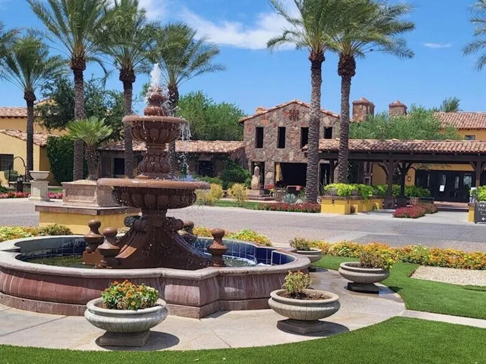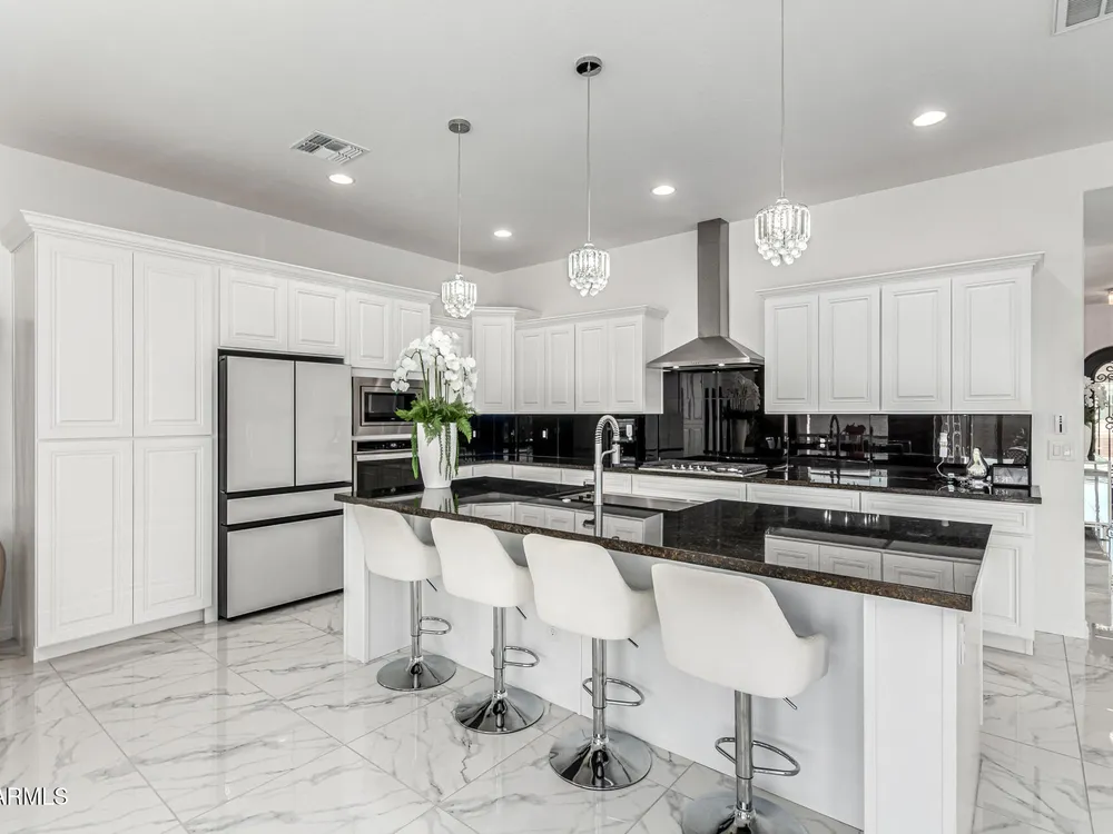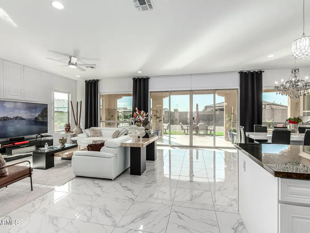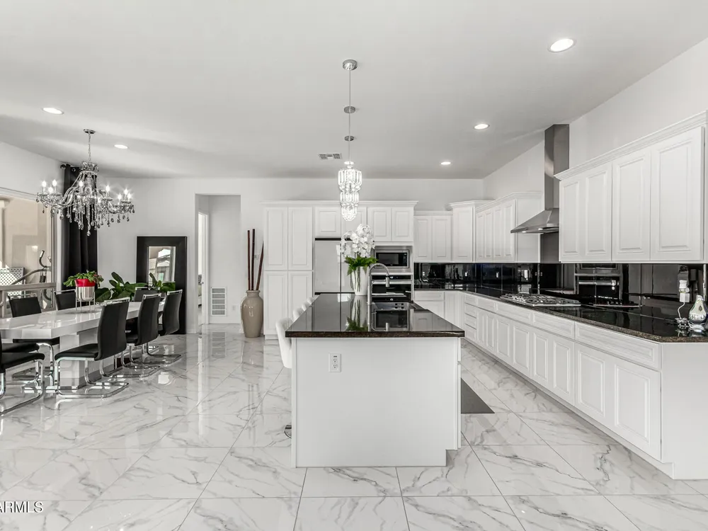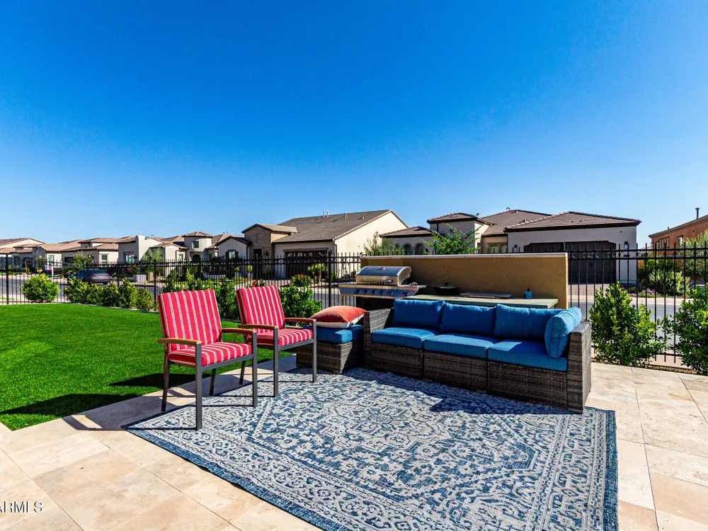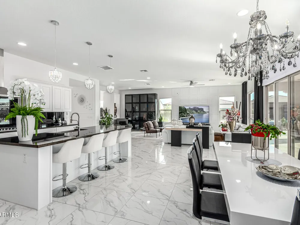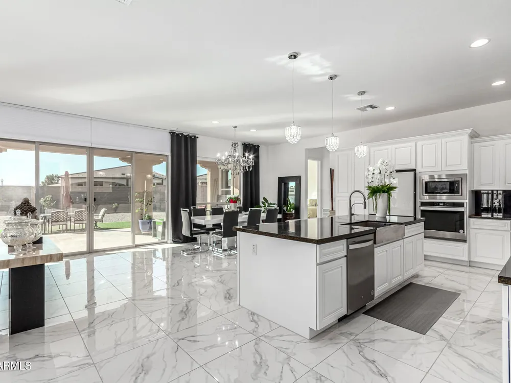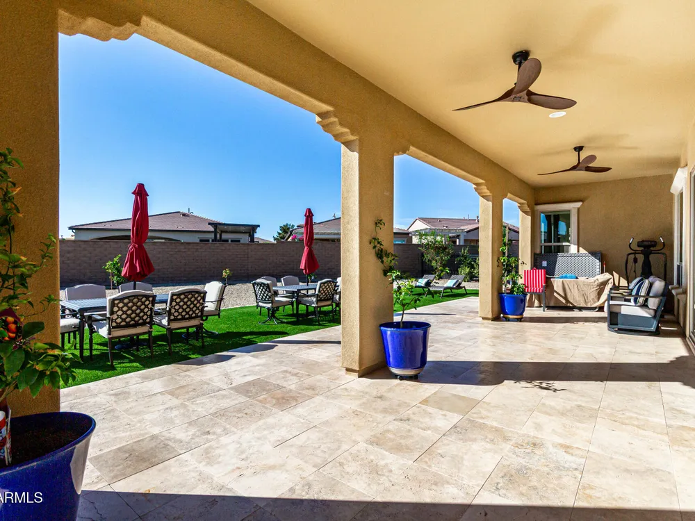 Luxury Living in the Heart of Encanterra Country Club! Experience the luxury lifestyle of Encanterra Country Club in this newer single-level home, nestled on 14,327sf premium corner lot, located in the sought-after enclave within the prestigious, gated Encanterra Country Club in Queen Creek, AZ. From the moment you step through the lush, professionally landscaped courtyard and custom wrought-iron front door, you'll be welcomed into a home where luxury, design, and comfort are in perfect harmony. This exquisite home features 3 spacious bedrooms, each located in its own private wing and complete with an en-suite bath — offering ultimate privacy and tranquility for both residents and guests. Inside, soaring ceilings, elegant marble-style flooring, sparkling crystal chandeliers, and a soft.. white palette enhance the open, sunlit layout. The split-floor plan ensures serene separation, with the primary suite serving as a peaceful retreat. It boasts a spa-inspired bath with dual vanities, a luxurious walk-in shower, and an oversized walk-in closet. The heart of the home is the chef's kitchen, an entertainer's dream, appointed with gleaming granite countertops, white cabinetry with crown moulding, a generous walk-in pantry, gas cooktop, apron-front farmhouse sink, and stainless-steel appliances. The kitchen flows seamlessly into the expansive great room, creating an ideal space for gatherings both large and intimate. Enjoy seamless indoor-outdoor living with expansive views of the outside of the beautifully designed backyard features multiple seating areas, a large, covered travertine-tiled patio, and ample room for entertaining under the stars. Living in Encanterra offers more than just a home-it's a lifestyle. Enjoy access to world-class amenities including a championship golf course, four resort-style pools, full-service spa, state-of-the-art fitness center, tennis and pickleball courts, fine and casual dining, live entertainment, social clubs, and curated community events, all within a vibrant and secure gated setting. This is a rare opportunity to own a truly one of a kind luxury home that brings together the modern design and resort lifestyle community you've been searching for.
