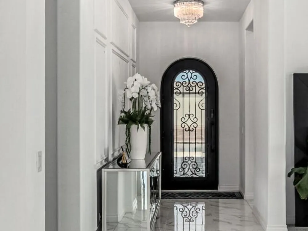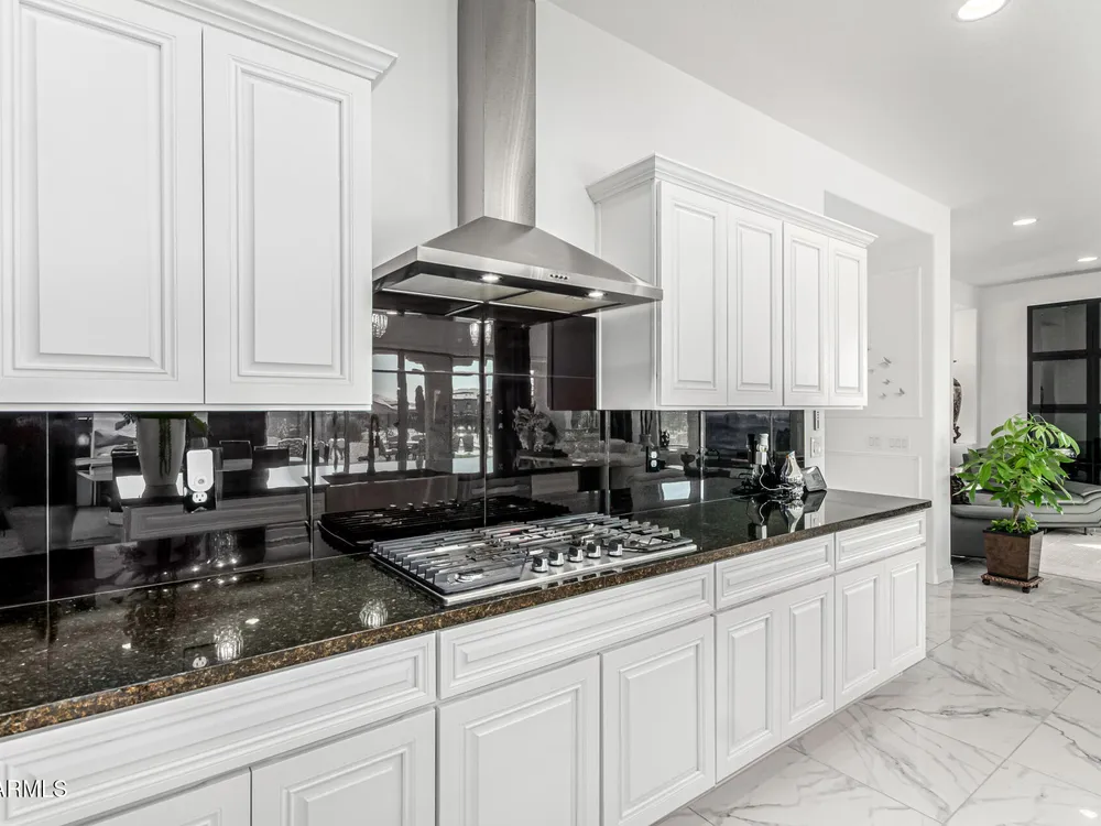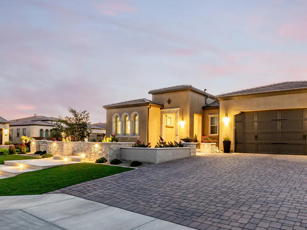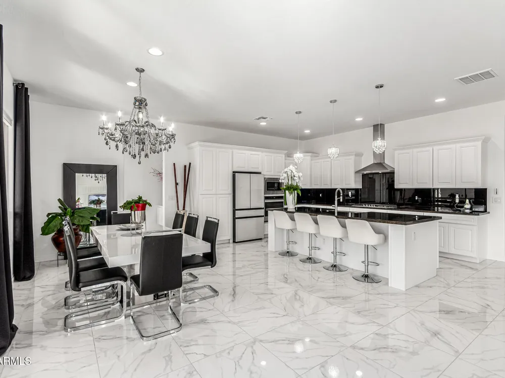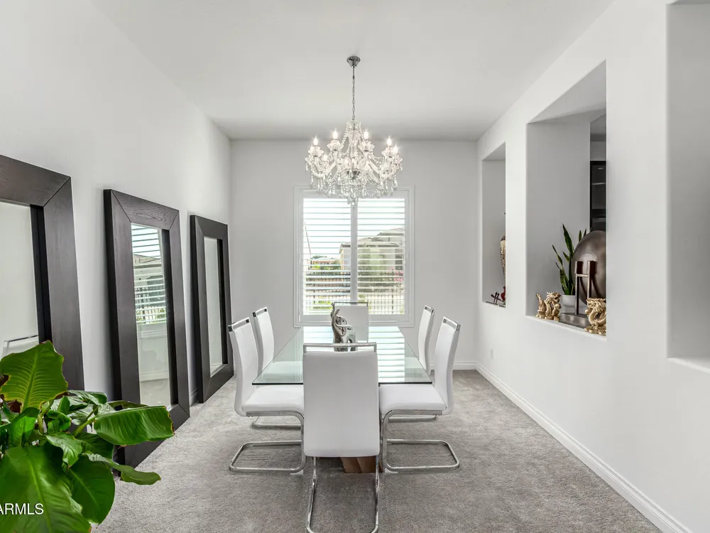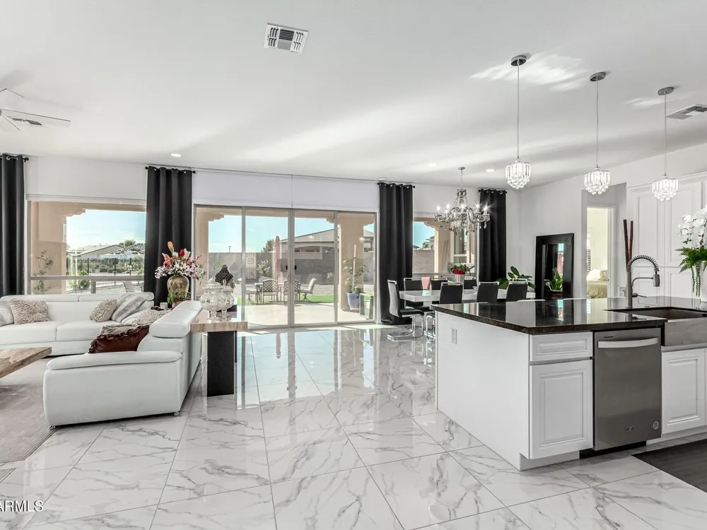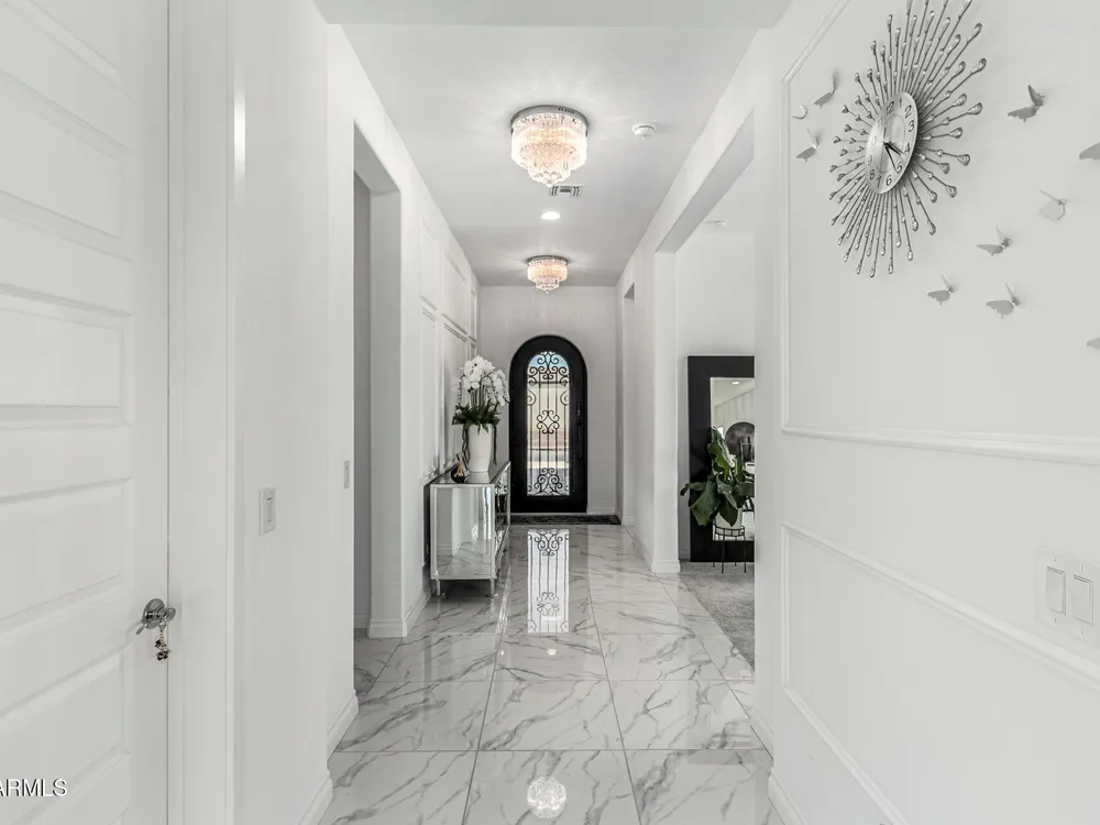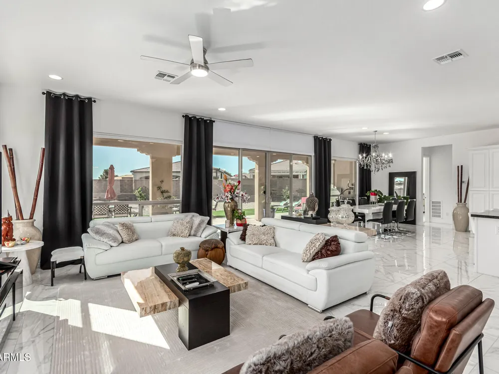 Luxury Living in the Heart of Encanterra Country Club! Experience the luxury lifestyle of Encanterra Country Club in this newer single-level home, nestled on 14,327sf premium corner lot, located in the sought-after enclave within the prestigious, gated Encanterra Country Club in Queen Creek, AZ. From the moment you step through the lush, professionally landscaped courtyard and custom wrought-iron front door, you'll be welcomed into a home where luxury, design, and comfort are in perfect harmony. This exquisite home features 3 spacious bedrooms, each located in its own private wing and complete with an en-suite bath — offering ultimate privacy and tranquility for both residents and guests. Inside, soaring ceilings, elegant marble-style flooring, sparkling crystal chandeliers, and a soft.. white palette enhance the open, sunlit layout. The split-floor plan ensures serene separation, with the primary suite serving as a peaceful retreat. It boasts a spa-inspired bath with dual vanities, a luxurious walk-in shower, and an oversized walk-in closet. The heart of the home is the chef's kitchen, an entertainer's dream, appointed with gleaming granite countertops, white cabinetry with crown moulding, a generous walk-in pantry, gas cooktop, apron-front farmhouse sink, and stainless-steel appliances. The kitchen flows seamlessly into the expansive great room, creating an ideal space for gatherings both large and intimate. Enjoy seamless indoor-outdoor living with expansive views of the outside of the beautifully designed backyard features multiple seating areas, a large, covered travertine-tiled patio, and ample room for entertaining under the stars. Living in Encanterra offers more than just a home-it's a lifestyle. Enjoy access to world-class amenities including a championship golf course, four resort-style pools, full-service spa, state-of-the-art fitness center, tennis and pickleball courts, fine and casual dining, live entertainment, social clubs, and curated community events, all within a vibrant and secure gated setting. This is a rare opportunity to own a truly one of a kind luxury home that brings together the modern design and resort lifestyle community you've been searching for.